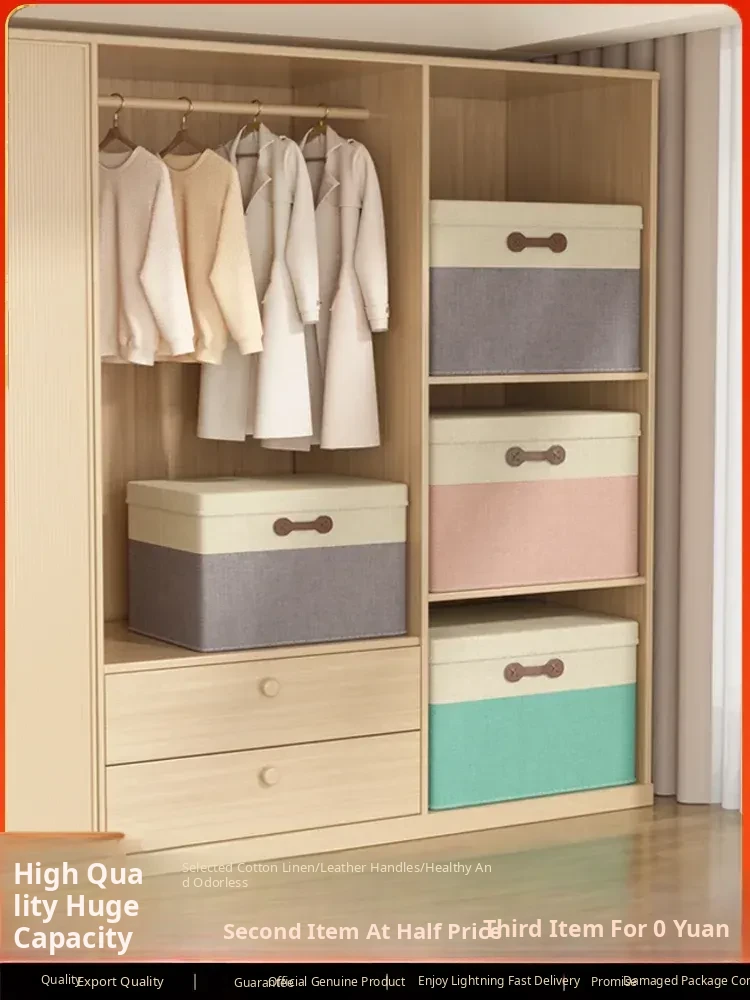 Foldable Fabric Storage Box for Clothes - Stylish Home Organizer, Layered Design for Wardrobe, Perfect Cotton Linen Basket for Efficient Clothing Storage, Your Ultimate Organizing Solution!