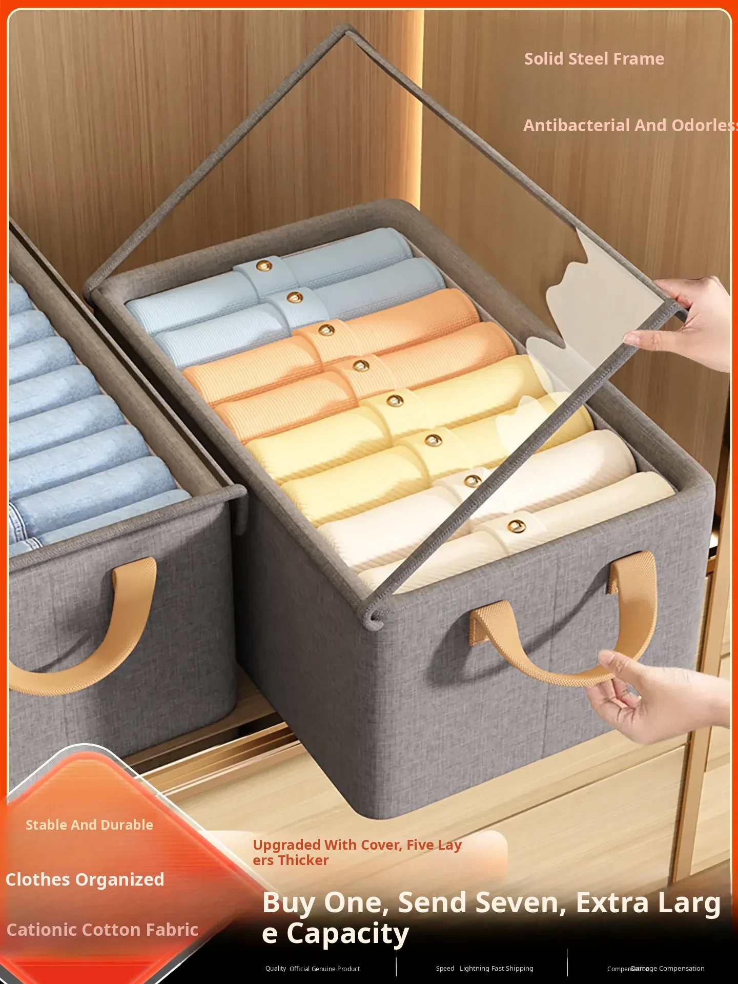Large Capacity Clothing Storage Box - Foldable Fabric Organizer for Home, Ideal for Organizing Clothes and Pants, a Must-Have Layered Solution for Your Wardrobe!