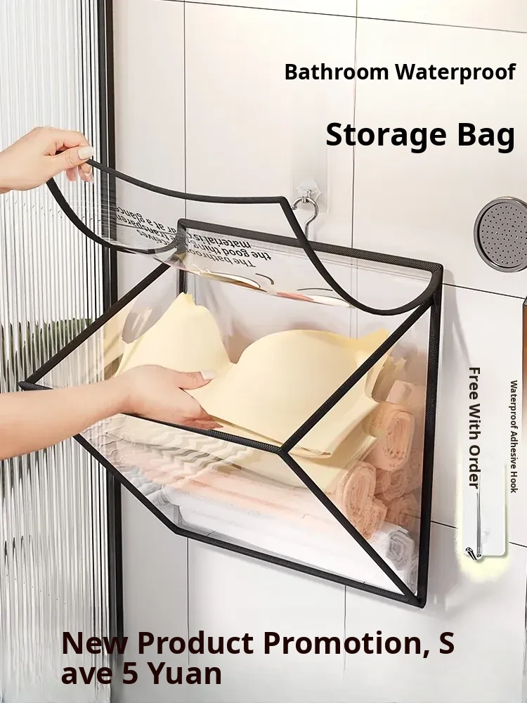 Transparent Waterproof Bathroom Hanging Bag - Wall-Mounted Storage Basket for Dirty Laundry and Clean Clothes Organization, Perfect for Home Use