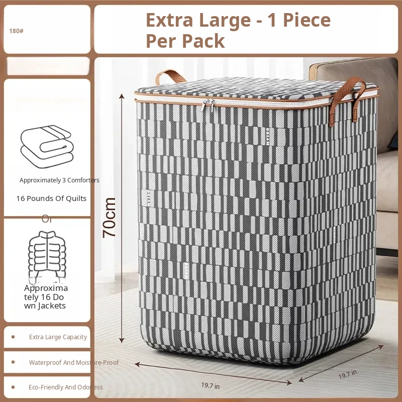 Gray Striped Grid⭐Encrypted and Thickened⭐Extra Large⭐180 Liters [22.5kg Quilt (Vacuum Quilt)/Clothing]