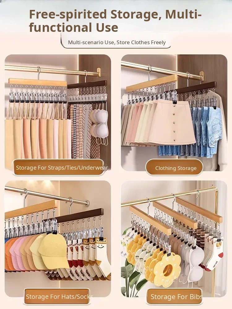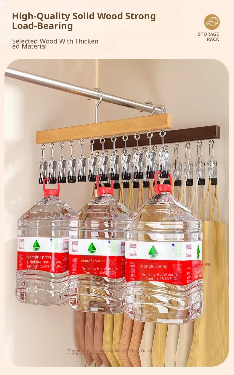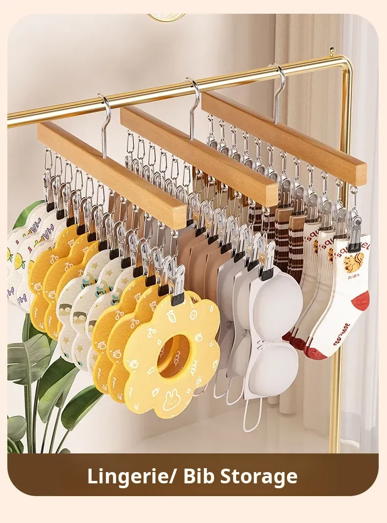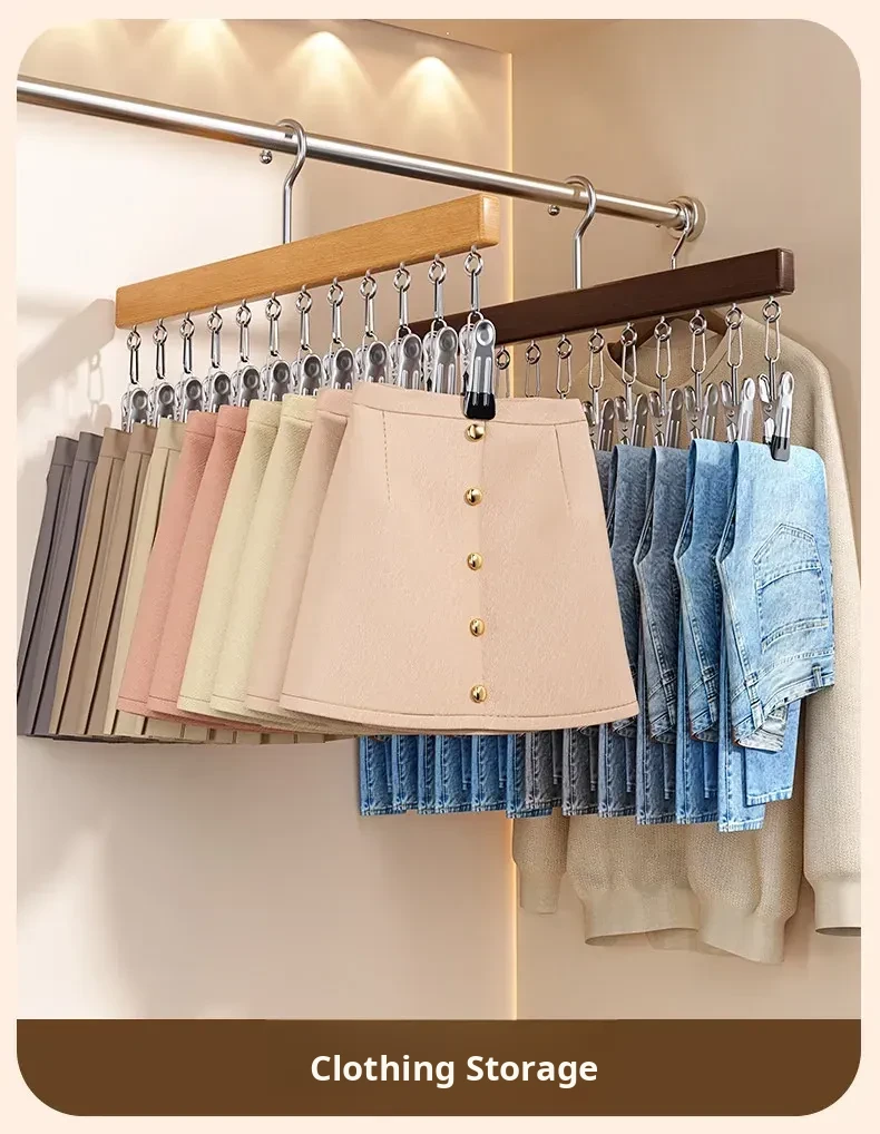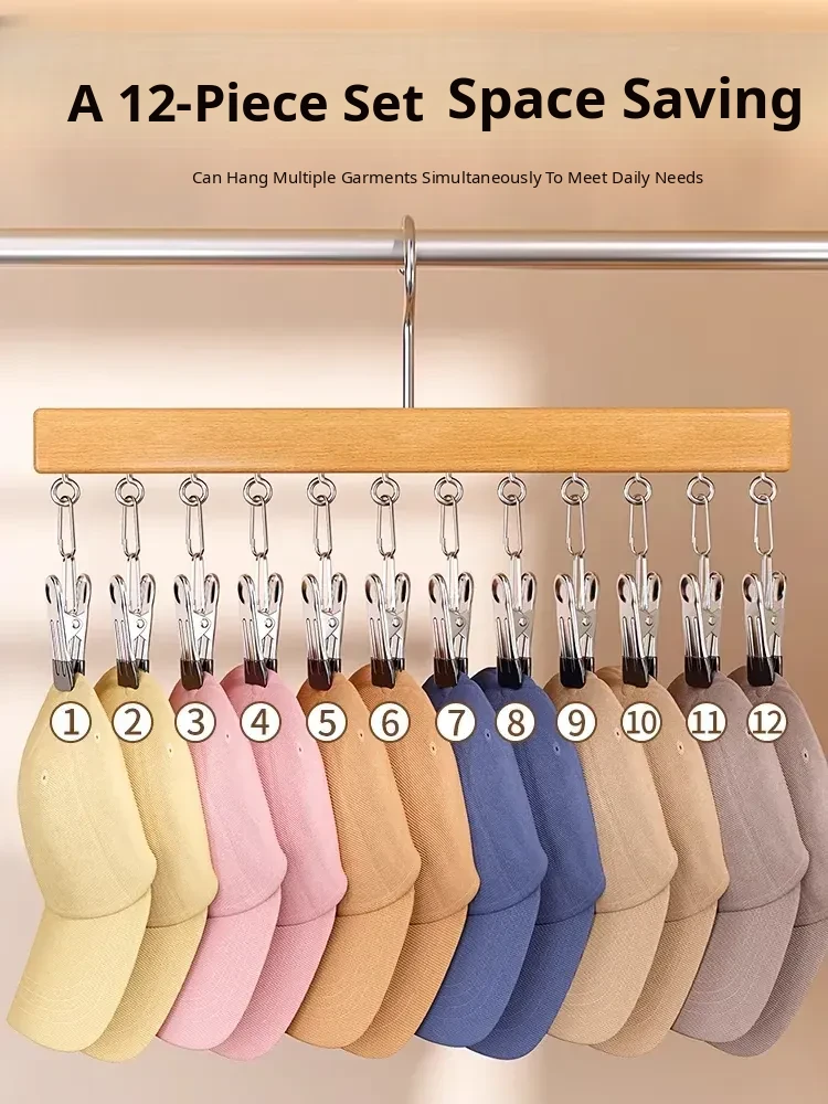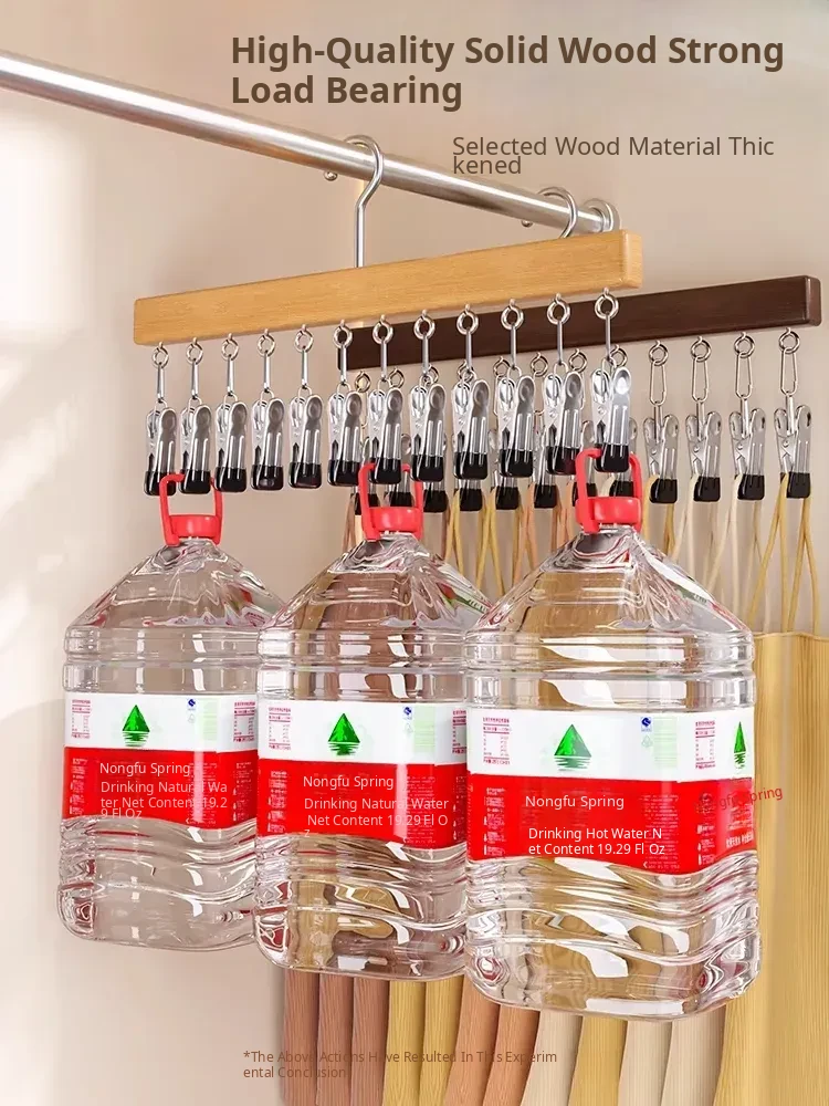 Wood Color❤️Solid Wood 12-Clip Clothes Hanger [Non-Marking Pant Hanger/Strong Clamping Force/Stainless Steel Model] 1 Pack