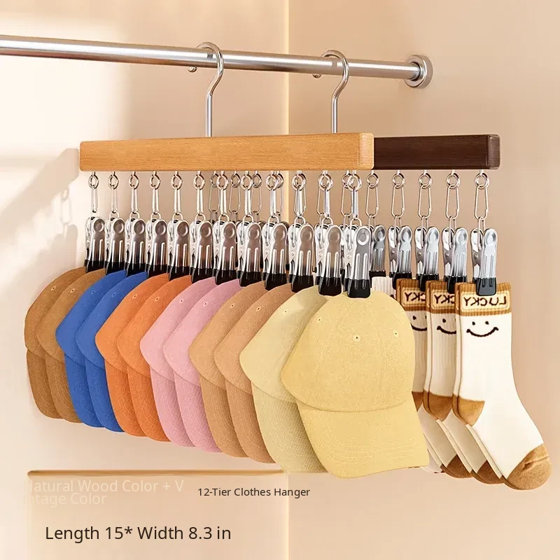 Combination Pack✅Solid Wood 12-Clip Clothes Hanger [Raw Wood Color + Retro Color]⭐Five-Star Recoinendation