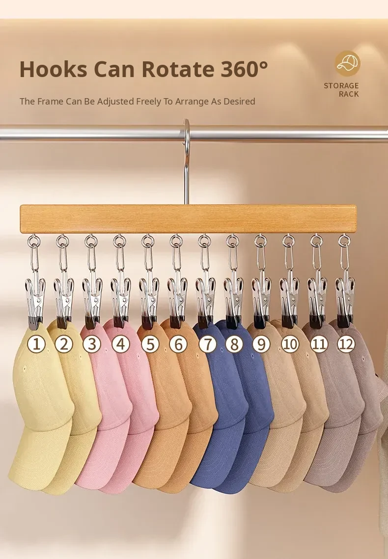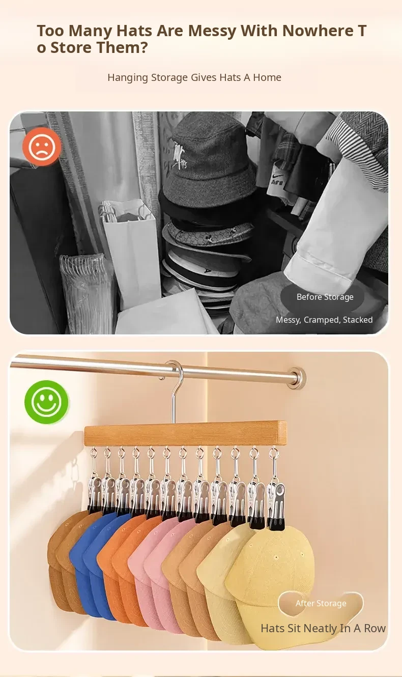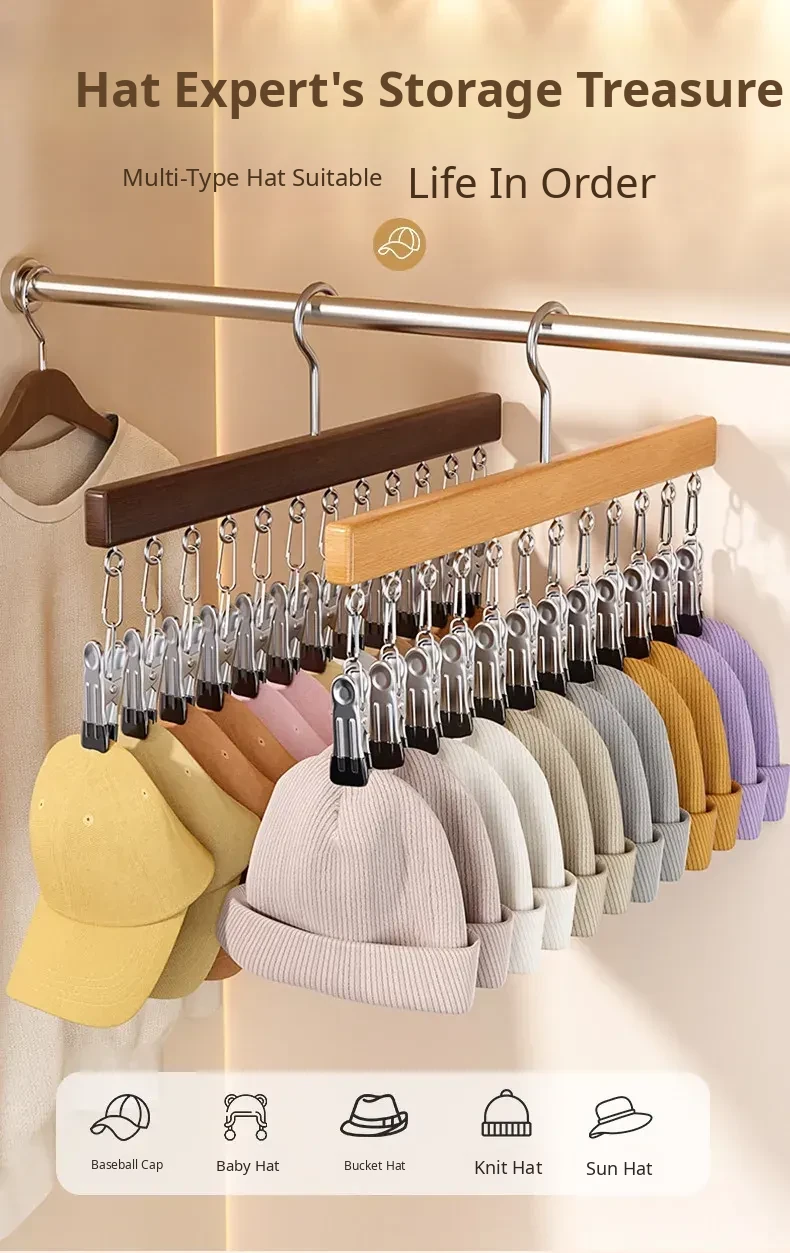 Hat Organizer with Multi-Clips - Versatile Storage Rack for Home, Perfect for Hanging Baseball Caps and Snapbacks in Your Closet, Keep Your Space Tidy and Stylish!