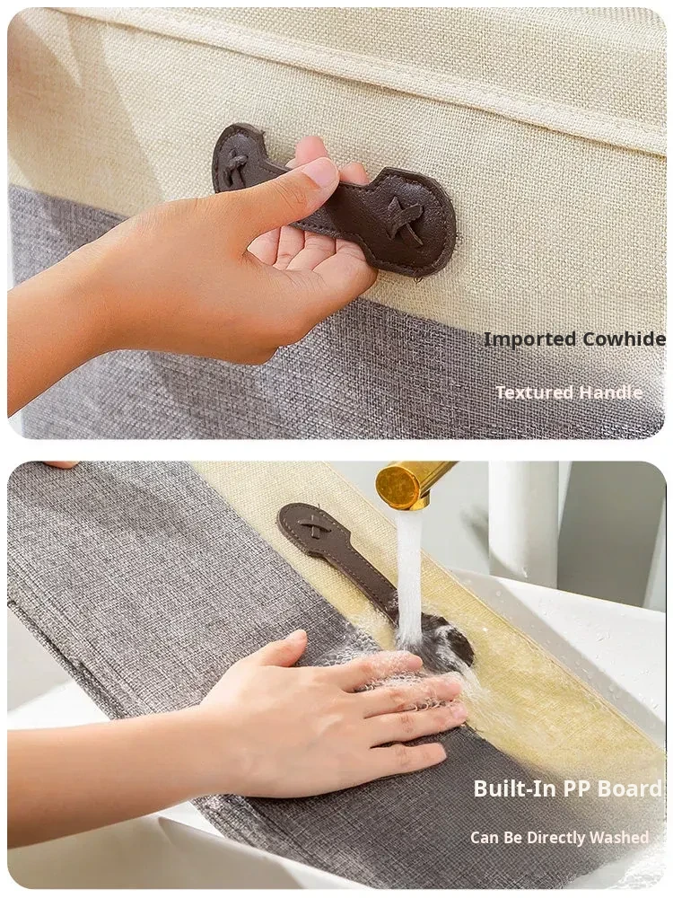 Beige [Washed Cotton and Linen/Washable ⭐ Leather Handle/Skin-Friendly and Odorless]