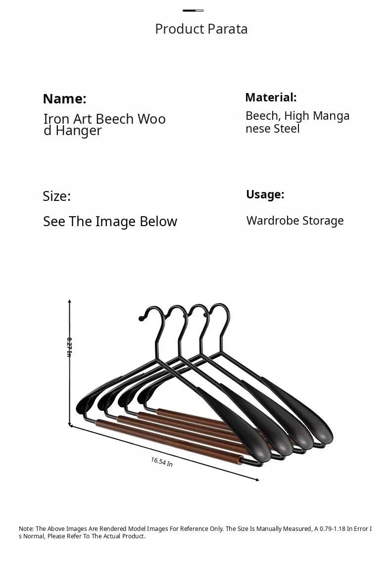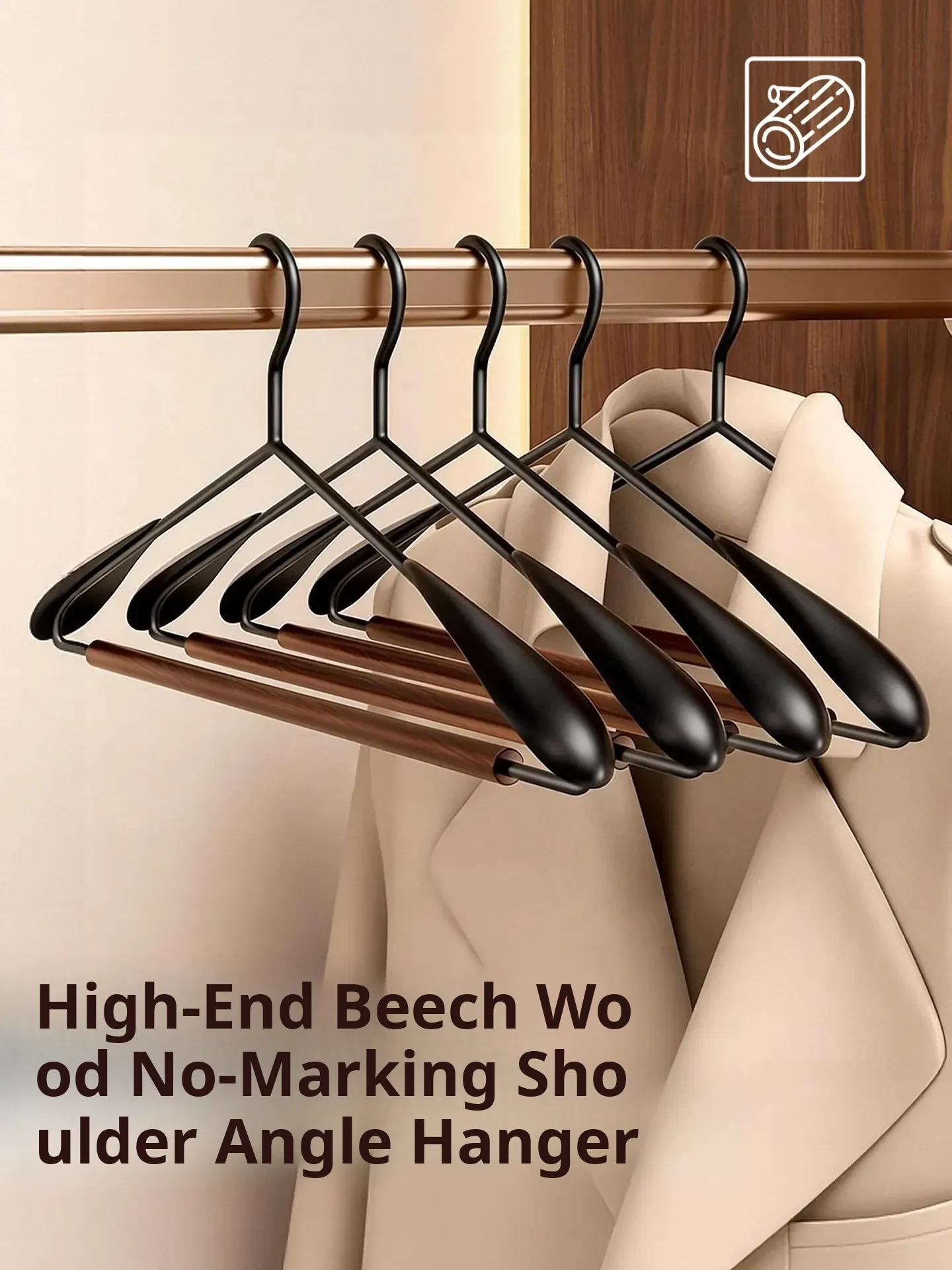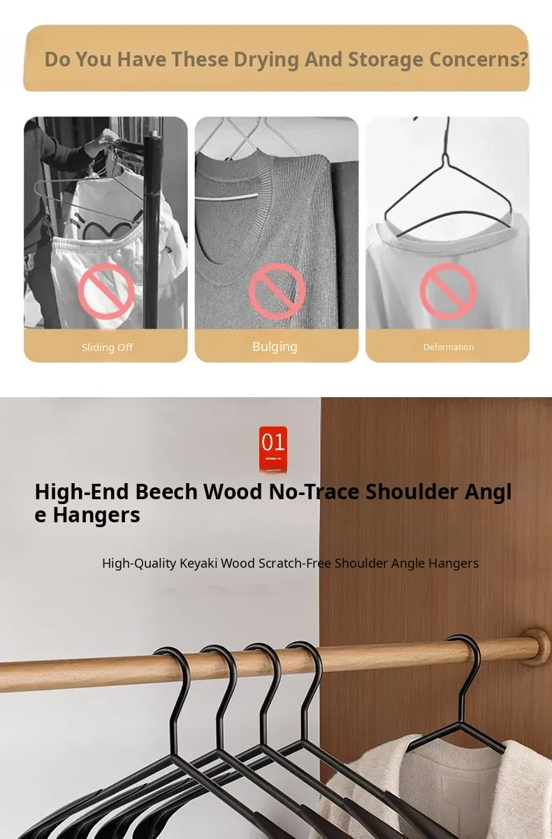 Wide Shoulder Model [Pack of 5] Light Luxury Beech Wood - No Deformation after Use