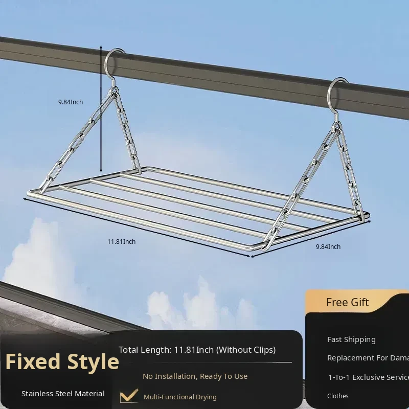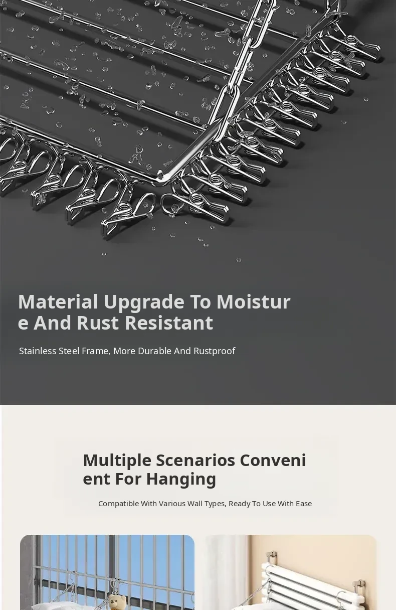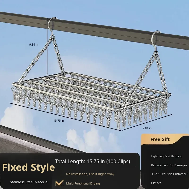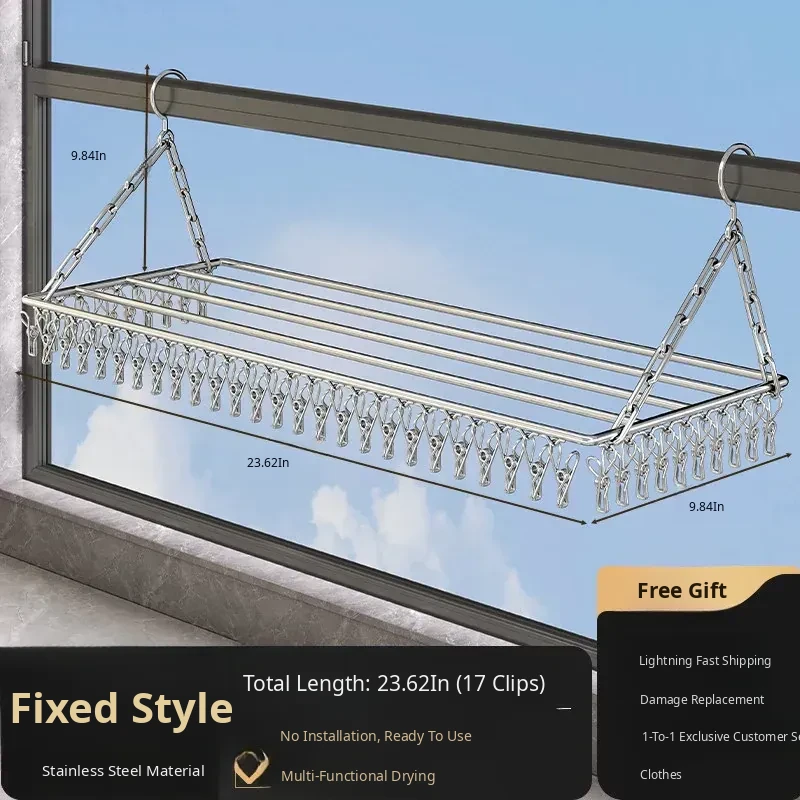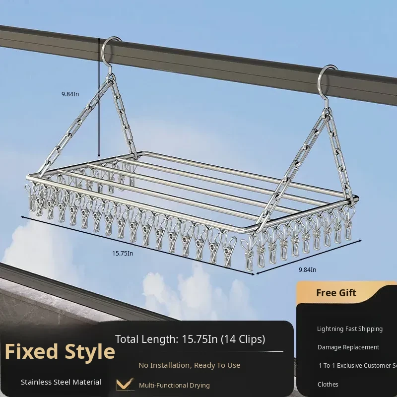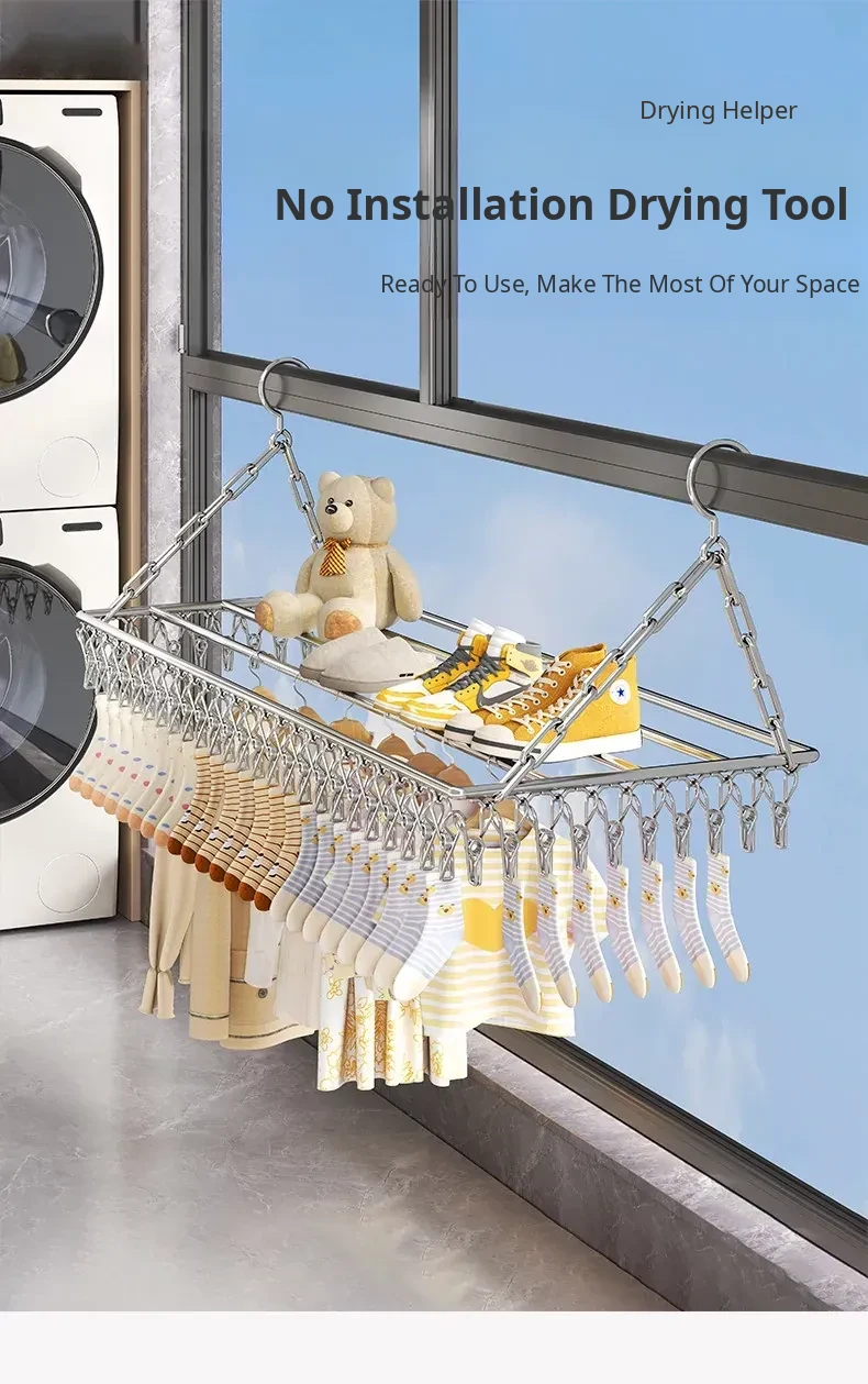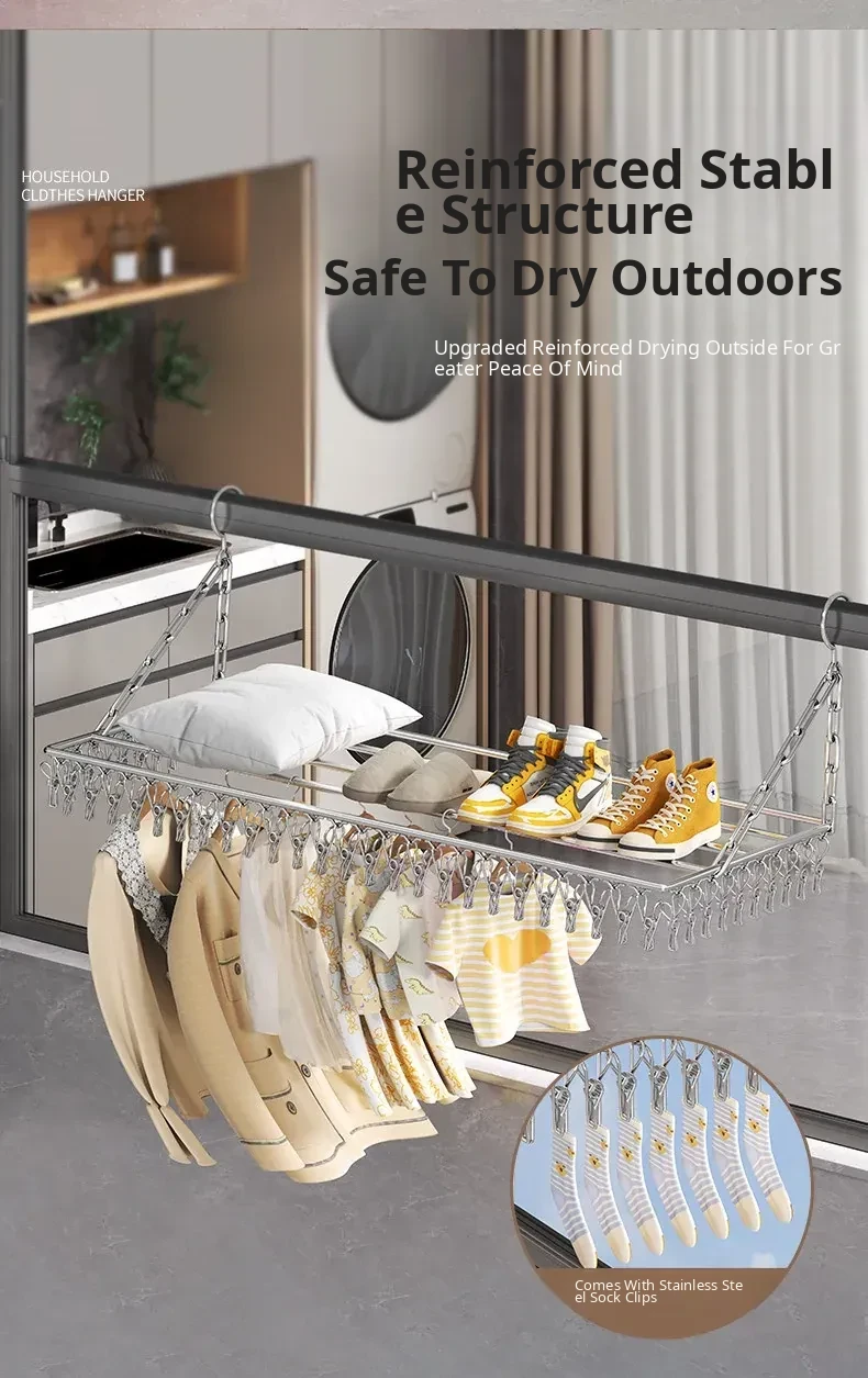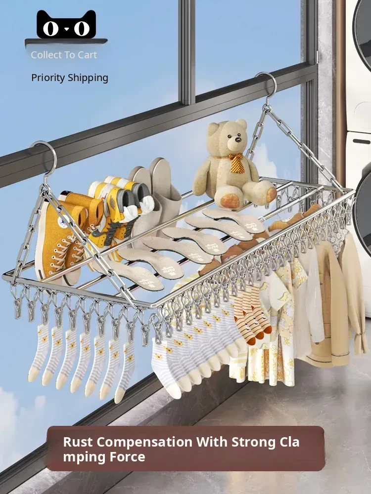 Stainless Steel Square Sock Drying Rack - Versatile Home Balcony Clothesline with Multiple Clips for Baby Socks, Windproof Underwear and Panties - Your Ultimate Laundry Solution!