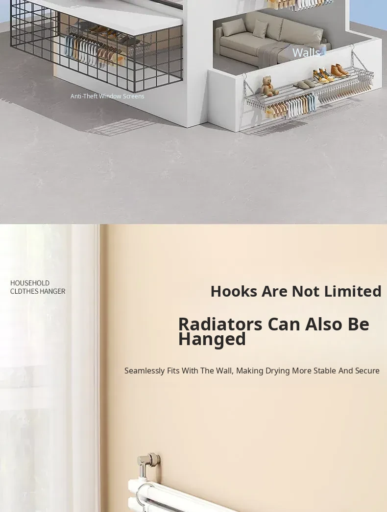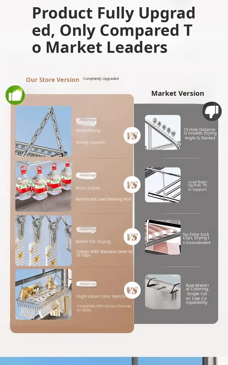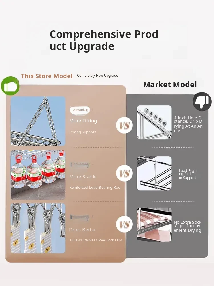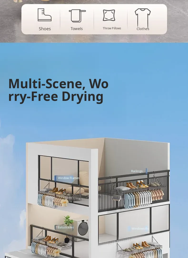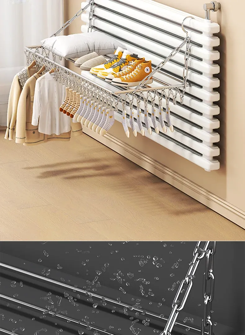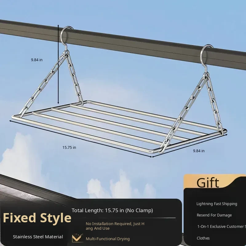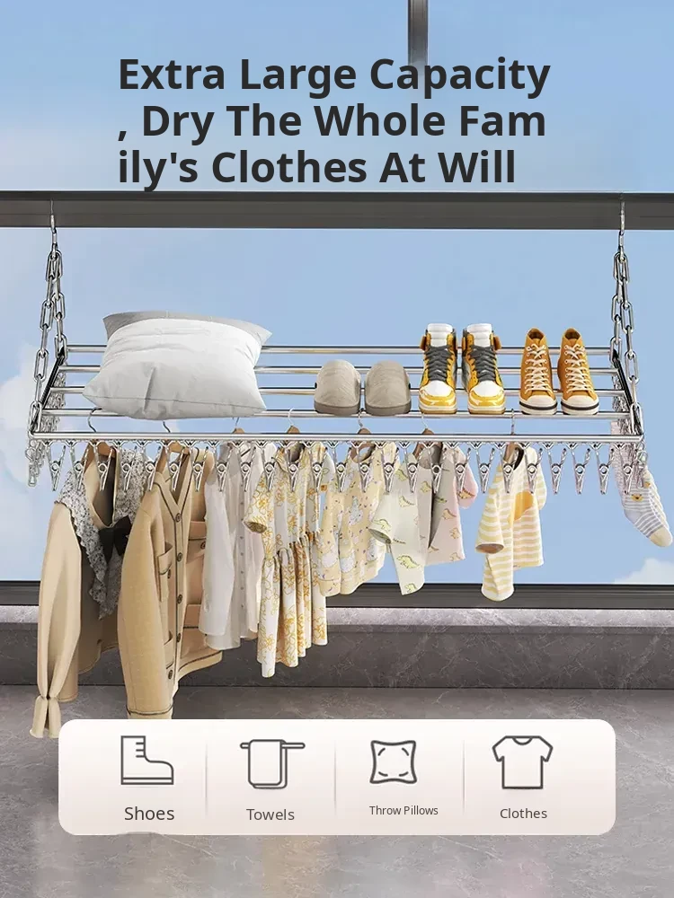 Stainless Steel Square Sock Drying Rack - Versatile Home Balcony Clothesline with Multiple Clips for Baby Socks, Windproof Underwear and Panties - Your Ultimate Laundry Solution!
