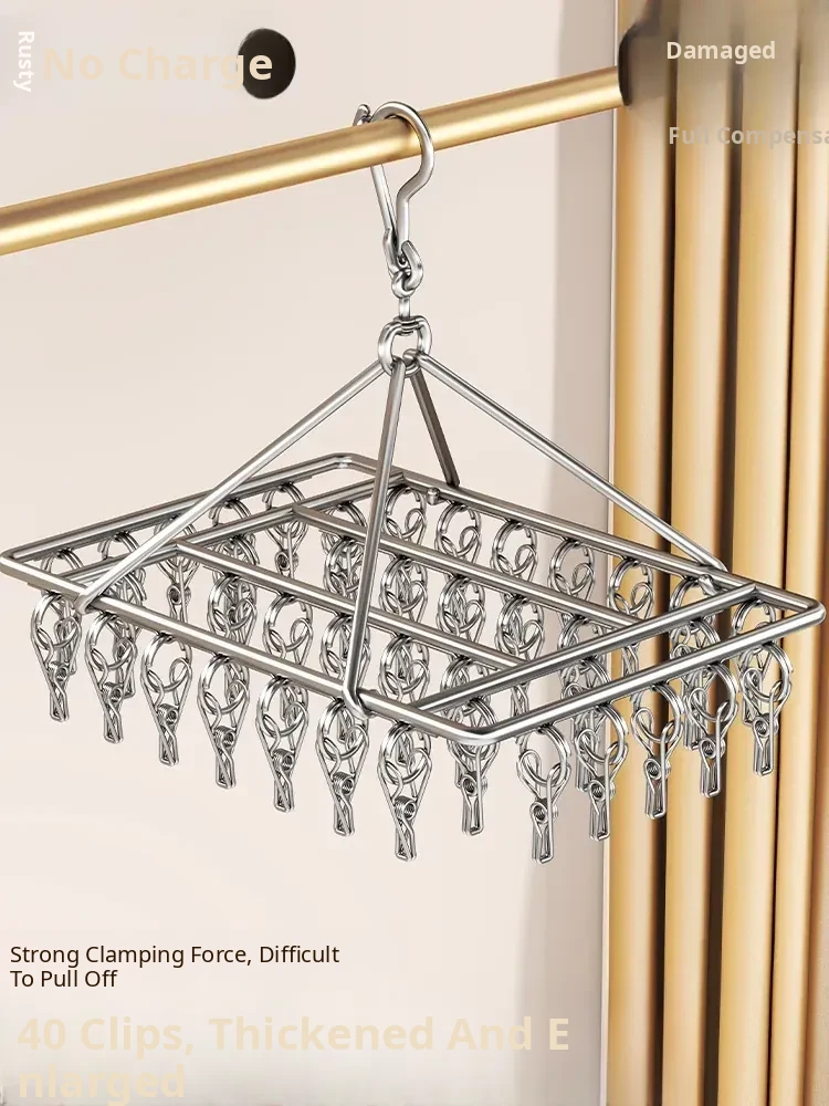Stainless Steel Sock Drying Rack with Multiple Clips - Home Use, Windproof Clothes Hanger for Balcony, Perfect for Air-Drying Underwear, Panties, and Socks!