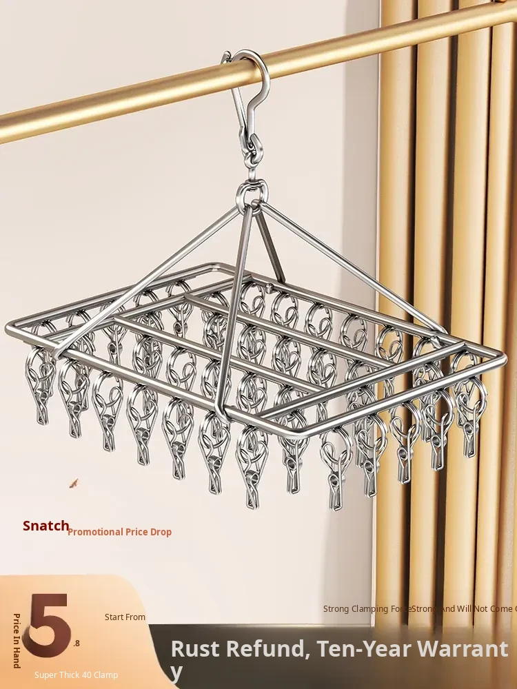 Stainless Steel Sock Drying Rack - Multi-Clip Home Clothes Hanger, Windproof & Versatile Balcony Drying Solution for Efficient Laundry Care