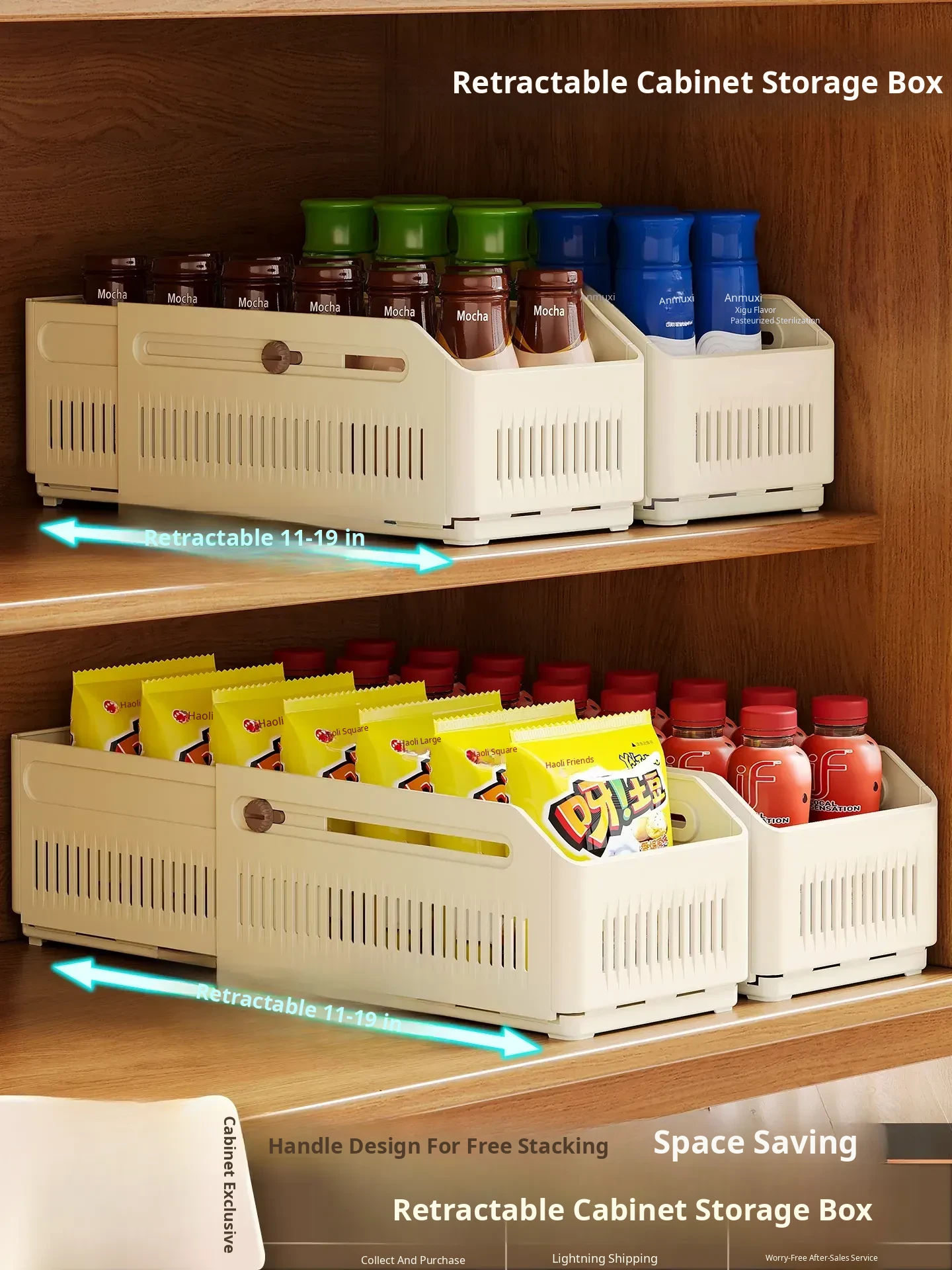 Expandable Drawer Storage Box for Kitchen – Versatile Snack and Miscellaneous Organizer for Cabinets, Perfect for Deep Cabinets and Corner Spaces