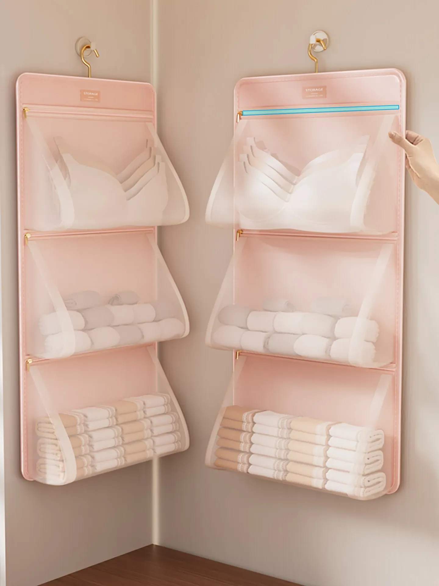 Socks and Underwear Organizer Hanging Bag - Space-Saving Mesh Storage Solution for Dorms and Homes, Perfect for Closet and Behind Door Use!