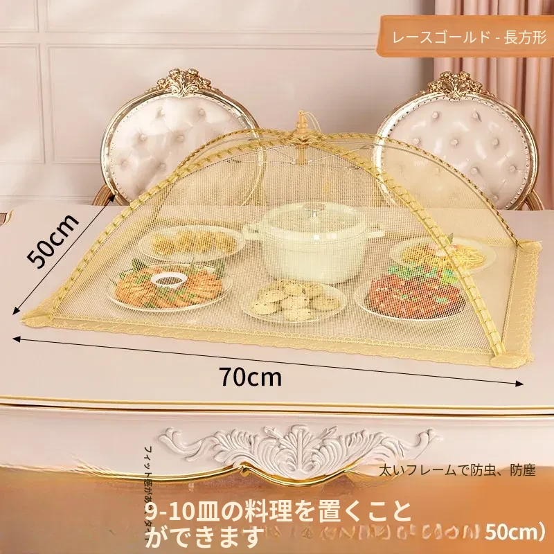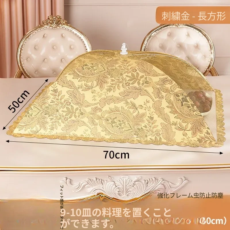 長方形70*50cm-レースゴールド【9-10皿の料理を置けます】