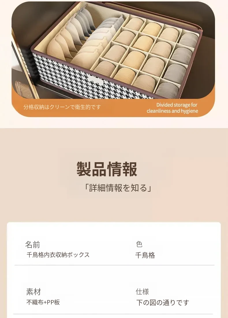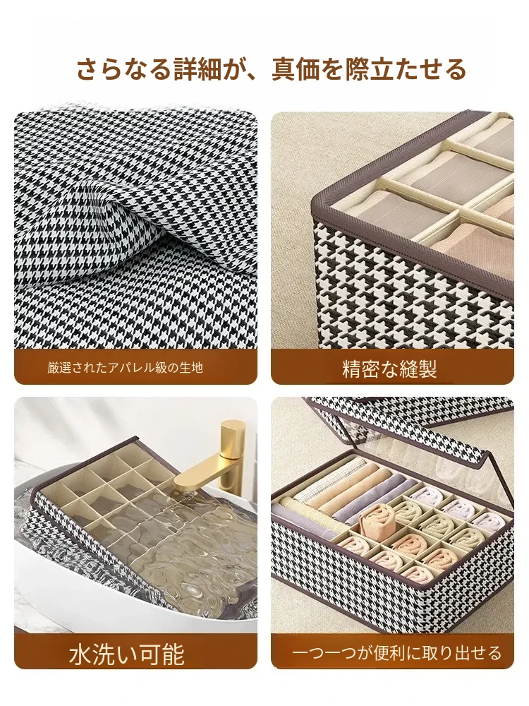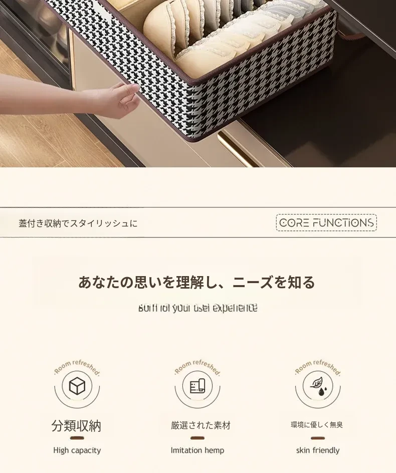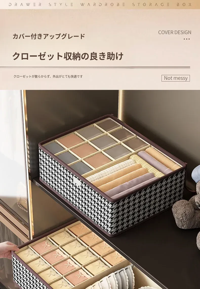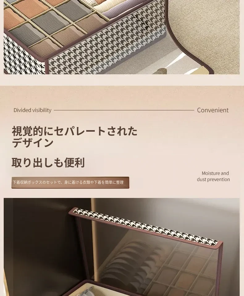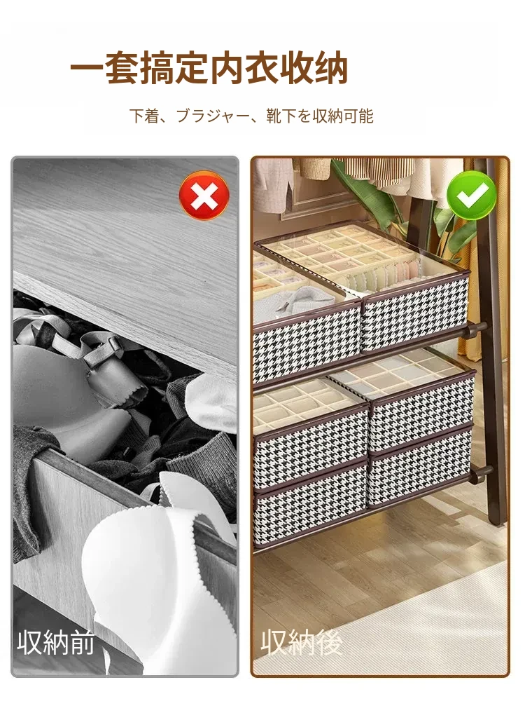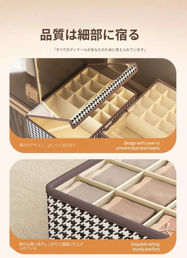 下着収納ボックス - ブラジャーやパンティー、靴下を一括収納!家庭用・クローゼット整理に最適な3in1収納ケースで、スペースを有効活用し、美しく整頓された生活空間を実現!