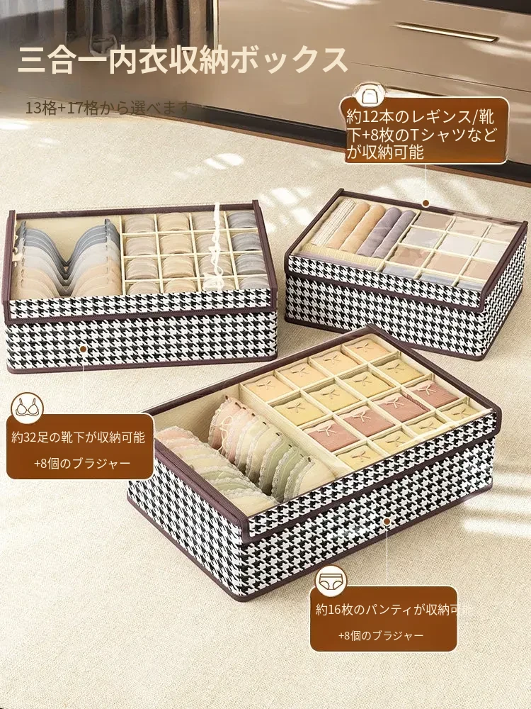 ⭐三合一下着収納ボックス❤13マス【仕切り収納/防風防カビ】