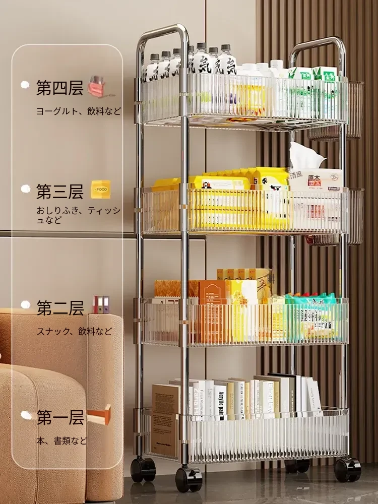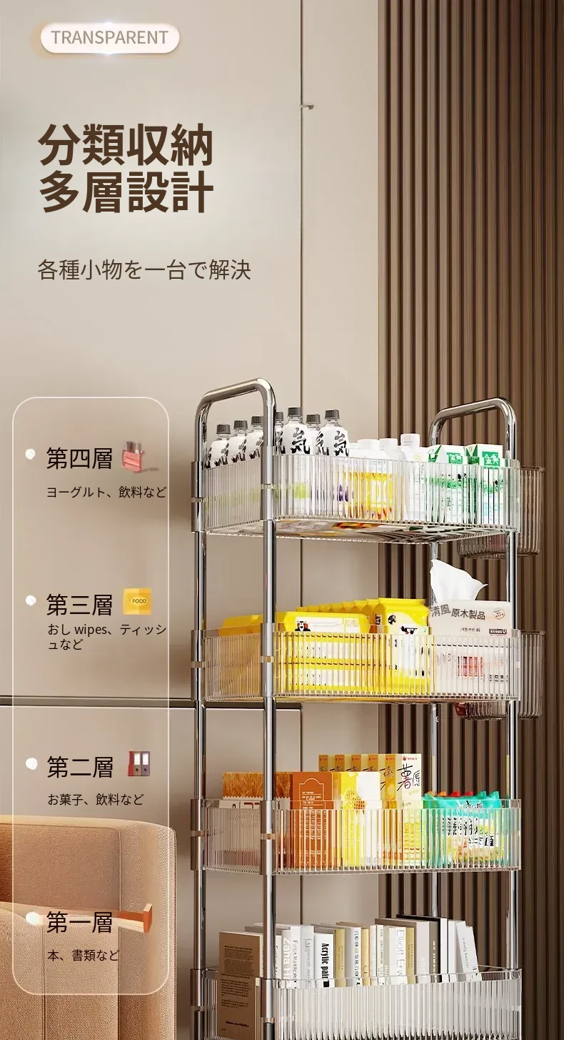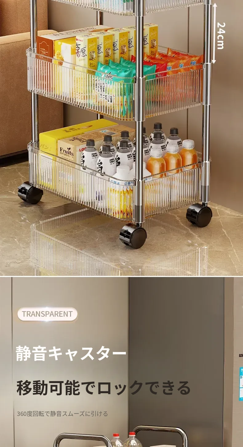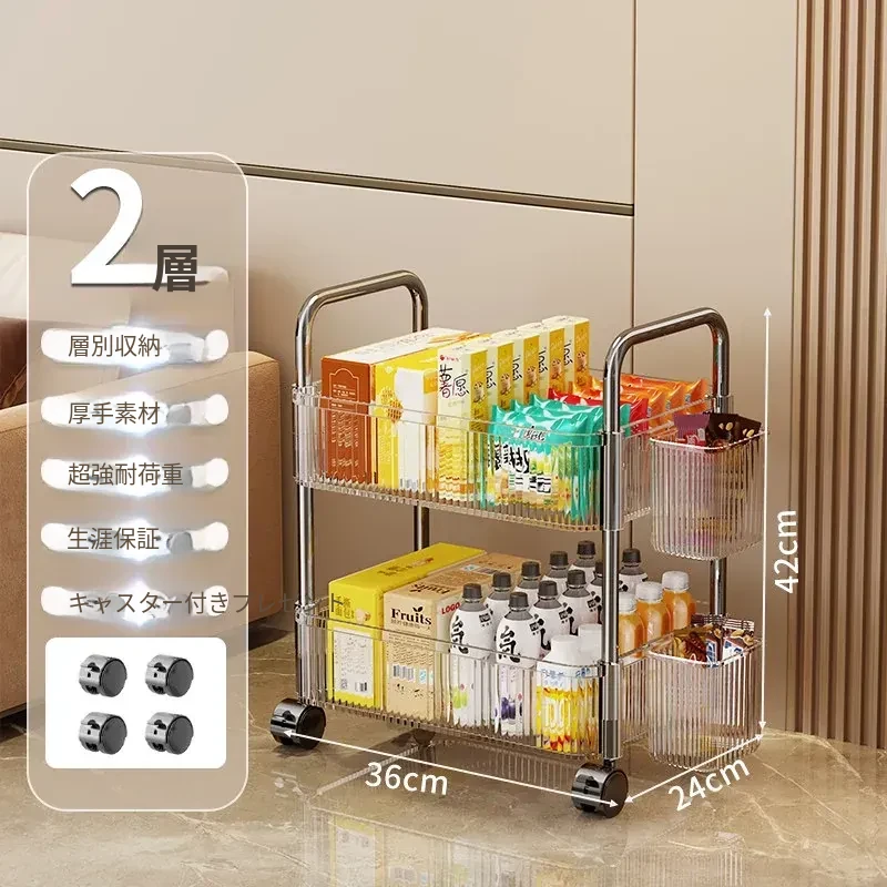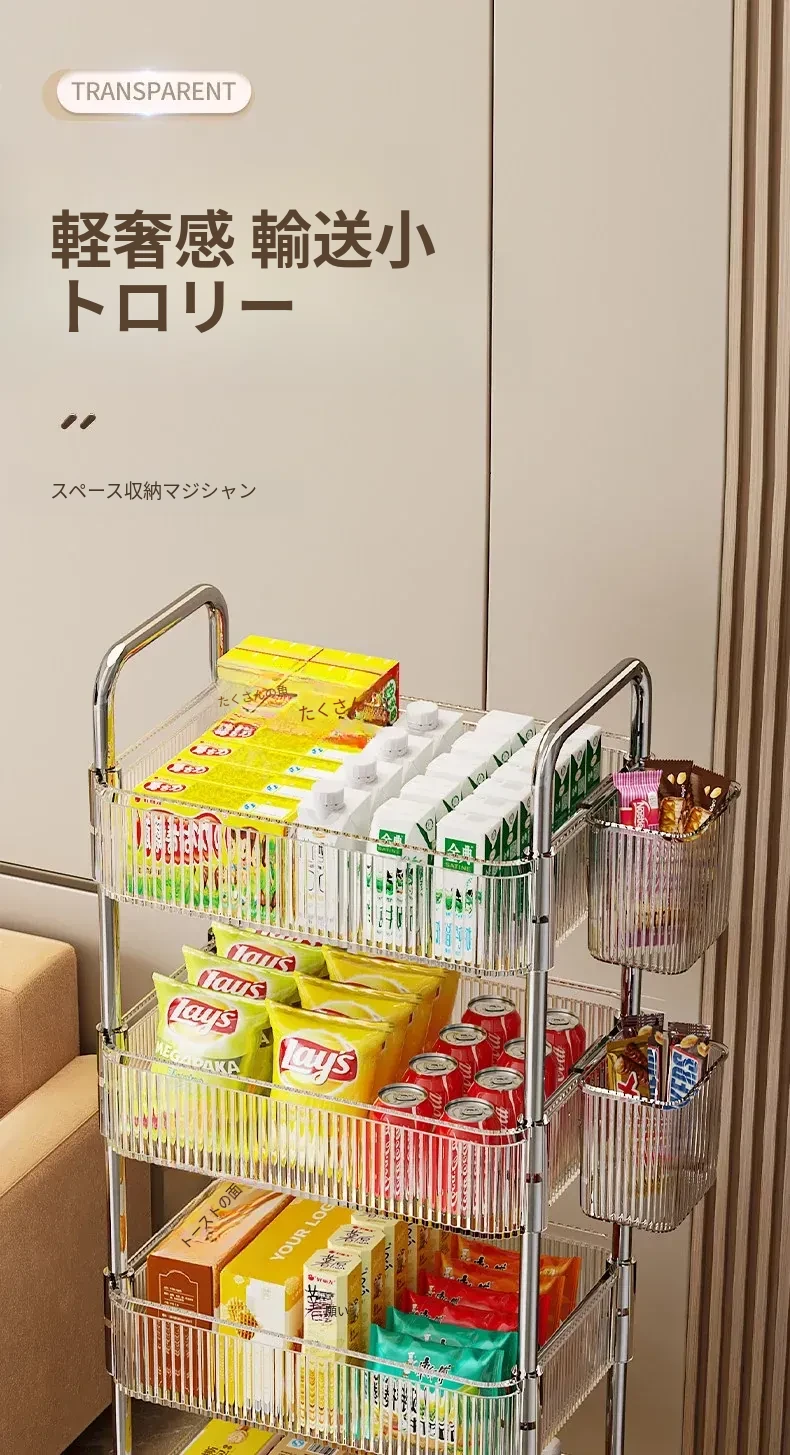 アクリル製スナック収納ラック - 移動可能な多層小型キャリー、化粧品や小物をすっきり収納!リビングや寝室にぴったりの収納棚。