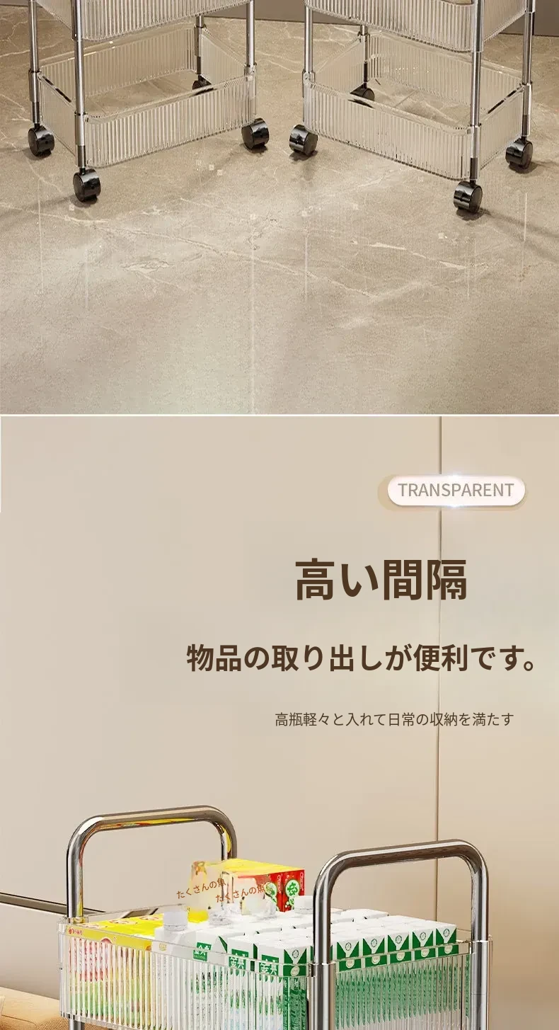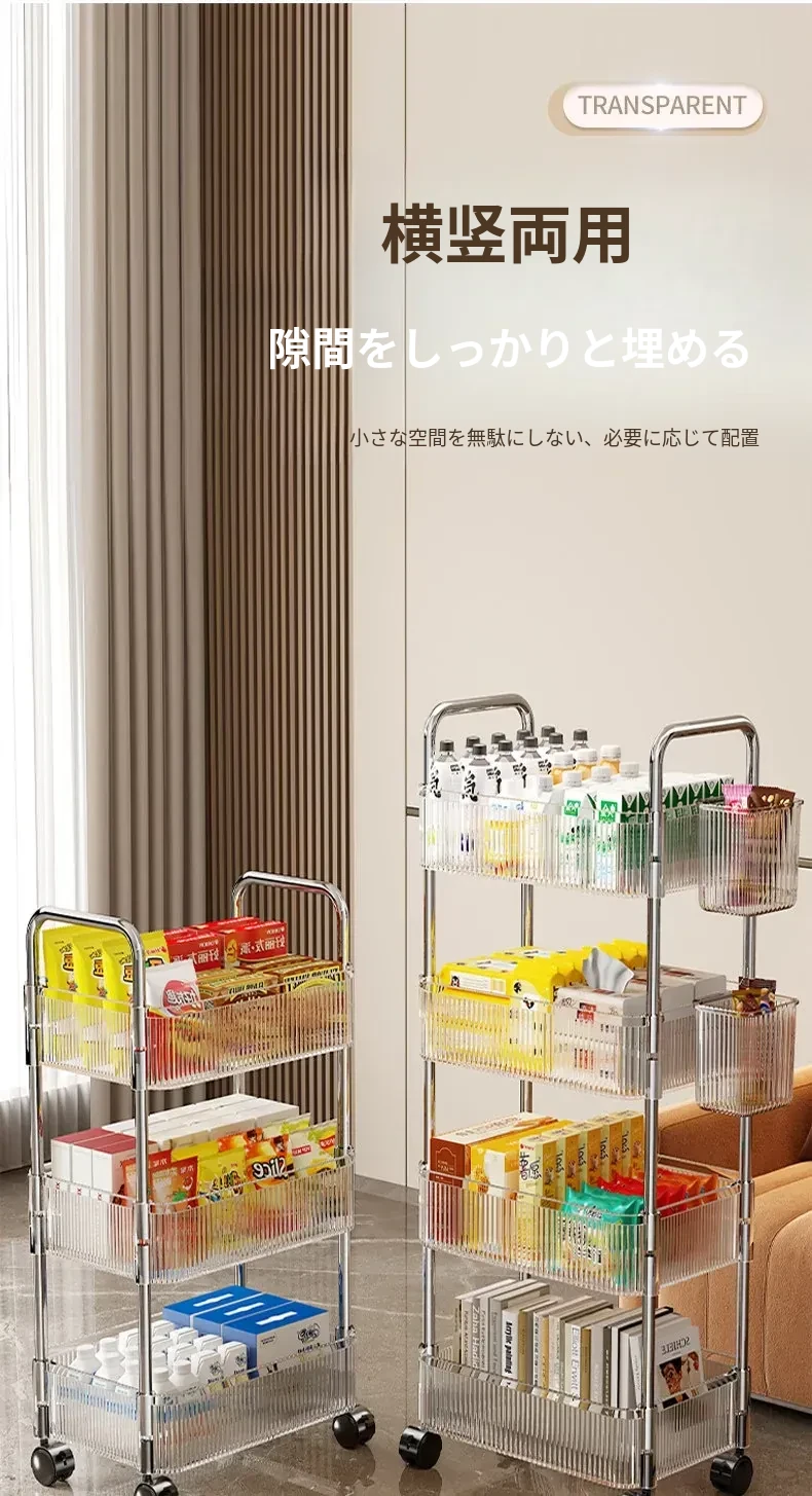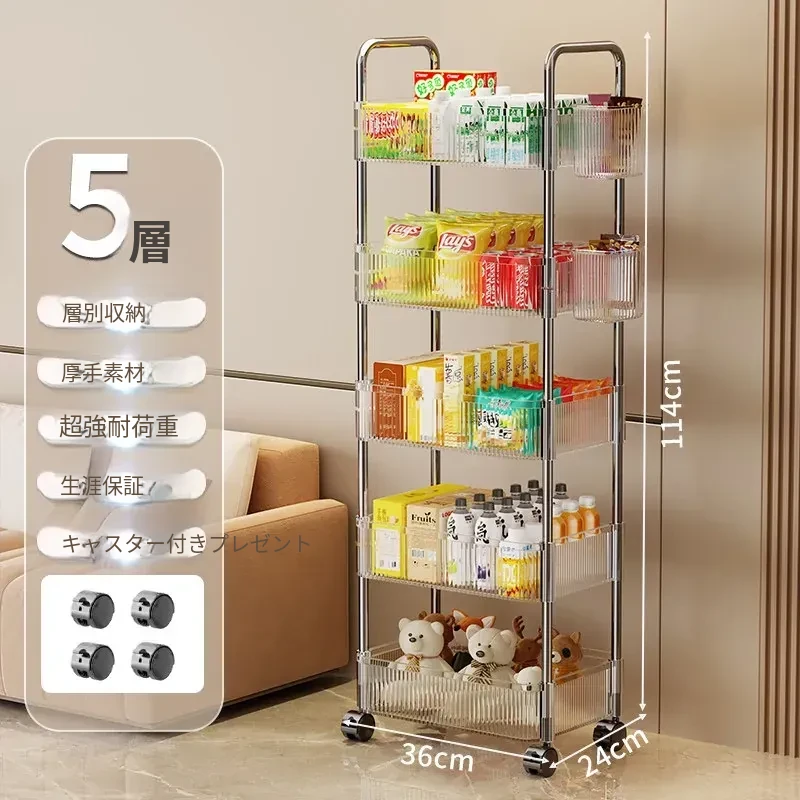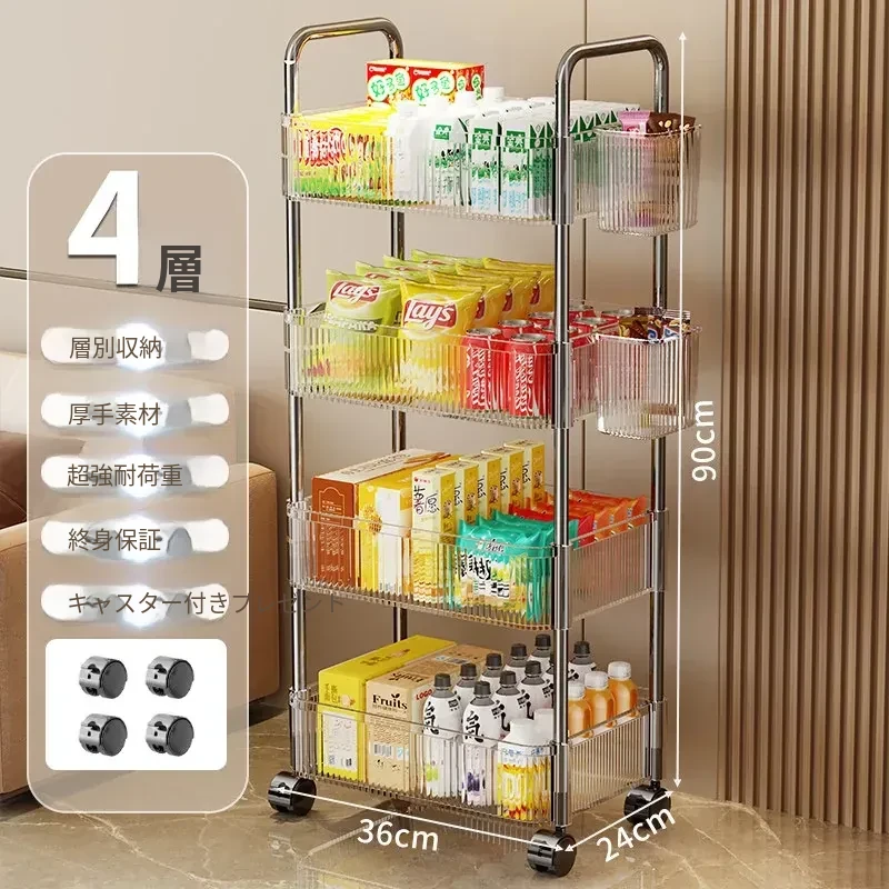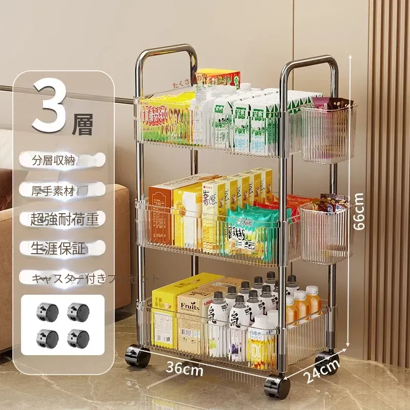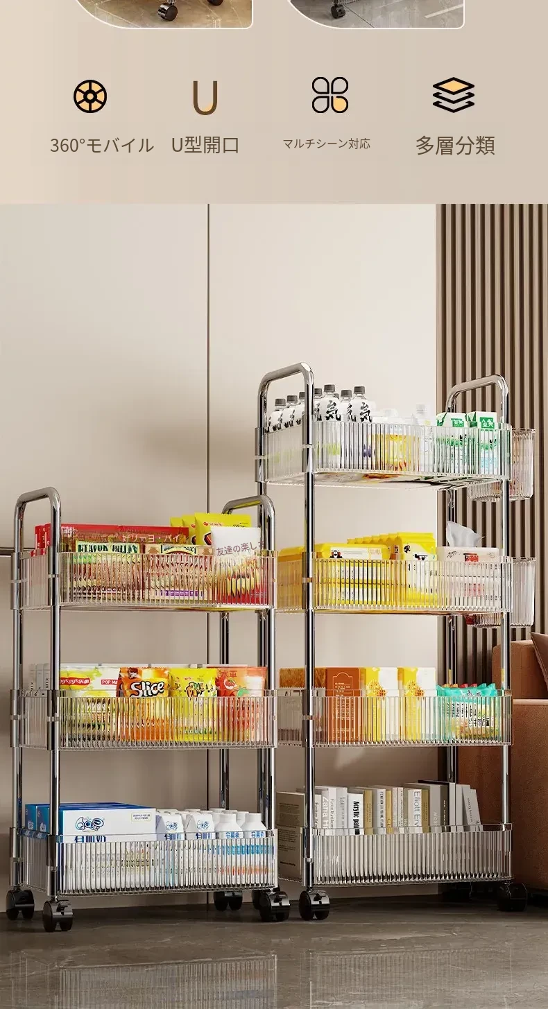 アクリル製スナック収納ラック - 移動可能な多層小型キャリー、化粧品や小物をすっきり収納!リビングや寝室にぴったりの収納棚。