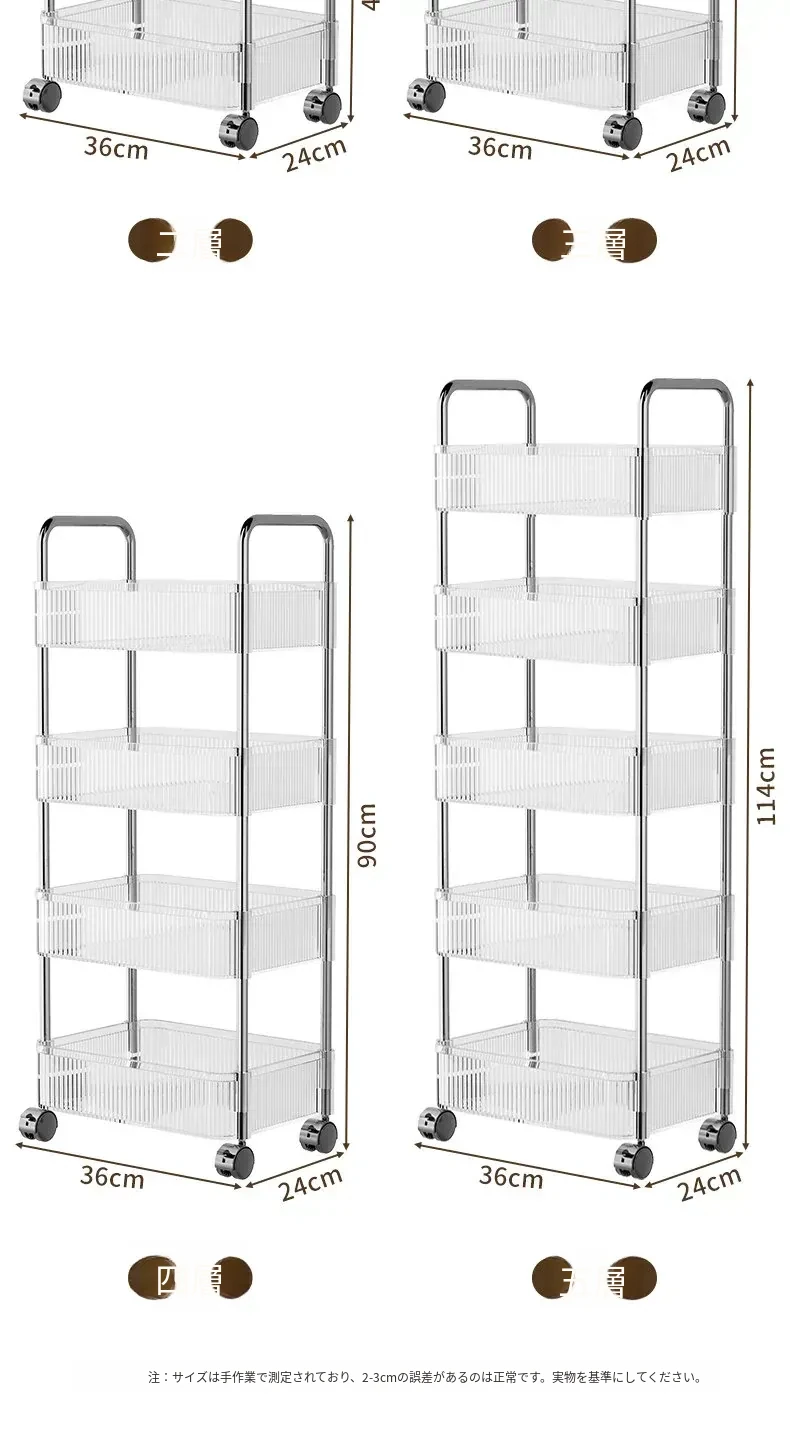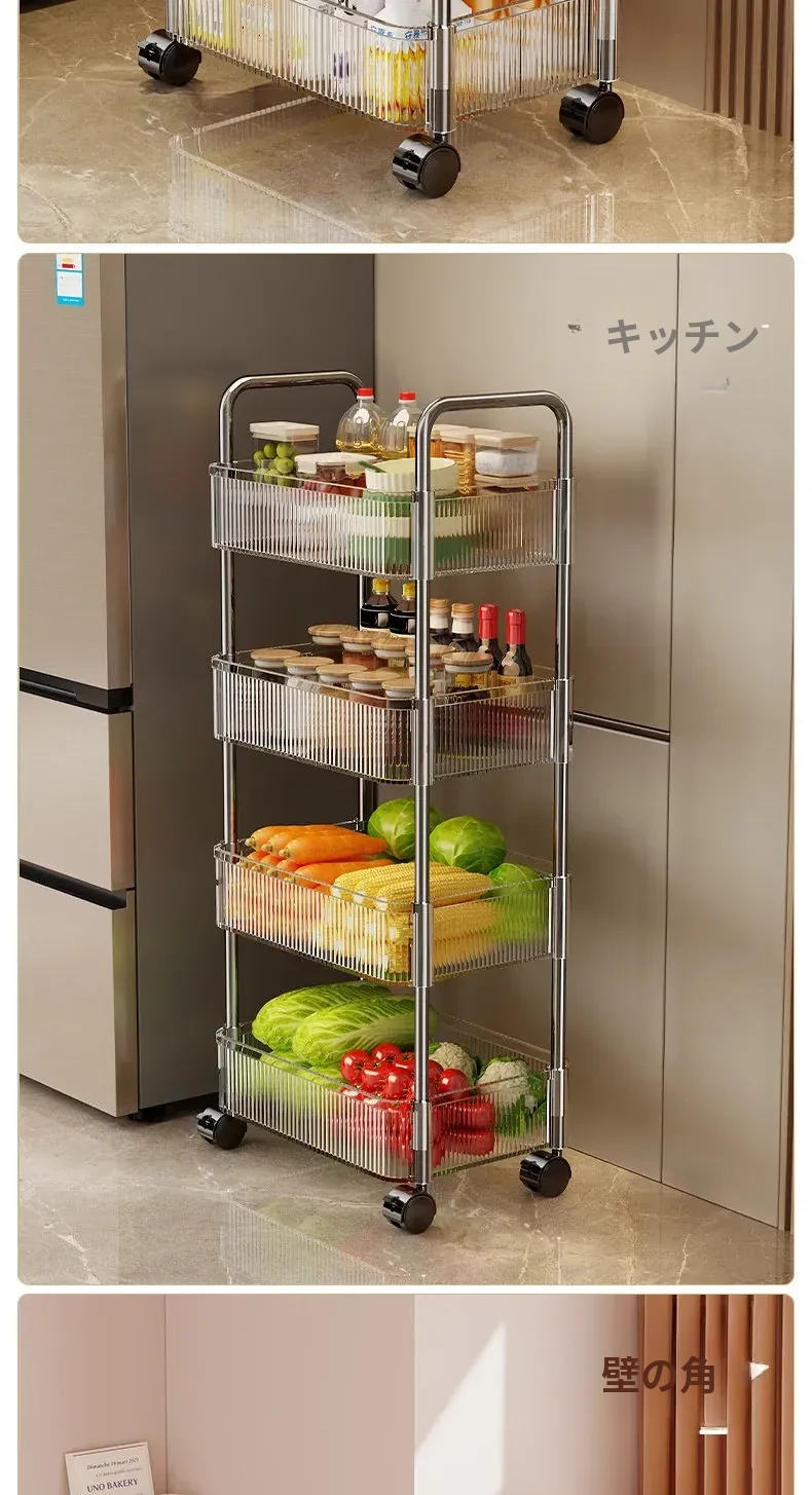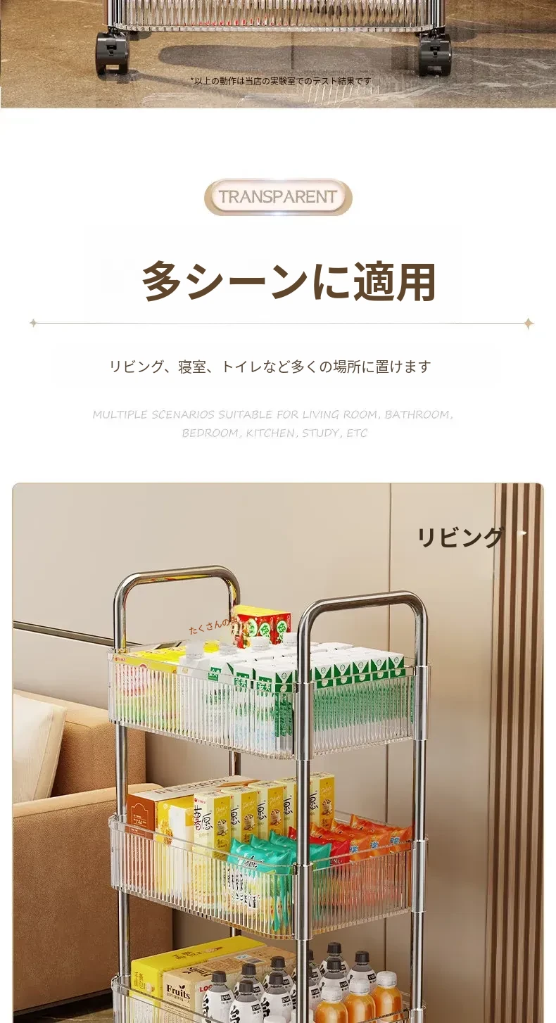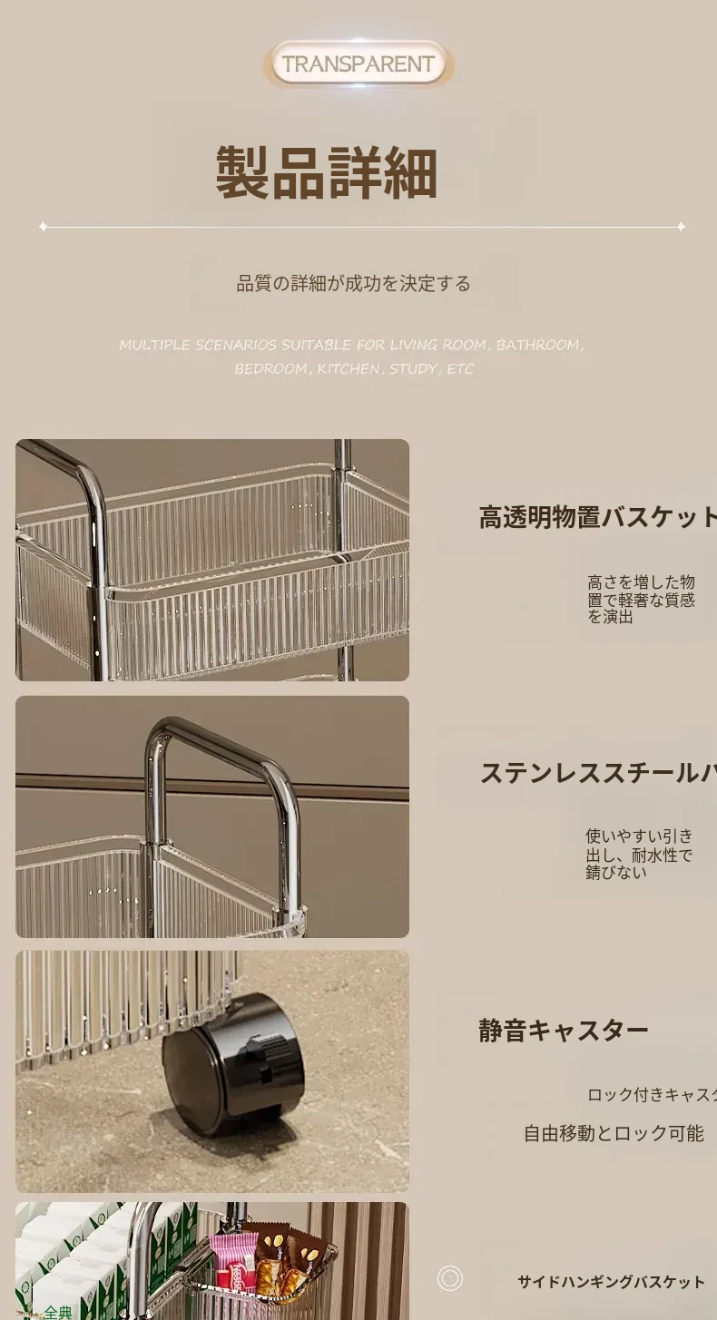 アクリル製スナック収納ラック - 移動可能な多層小型キャリー、化粧品や小物をすっきり収納!リビングや寝室にぴったりの収納棚。