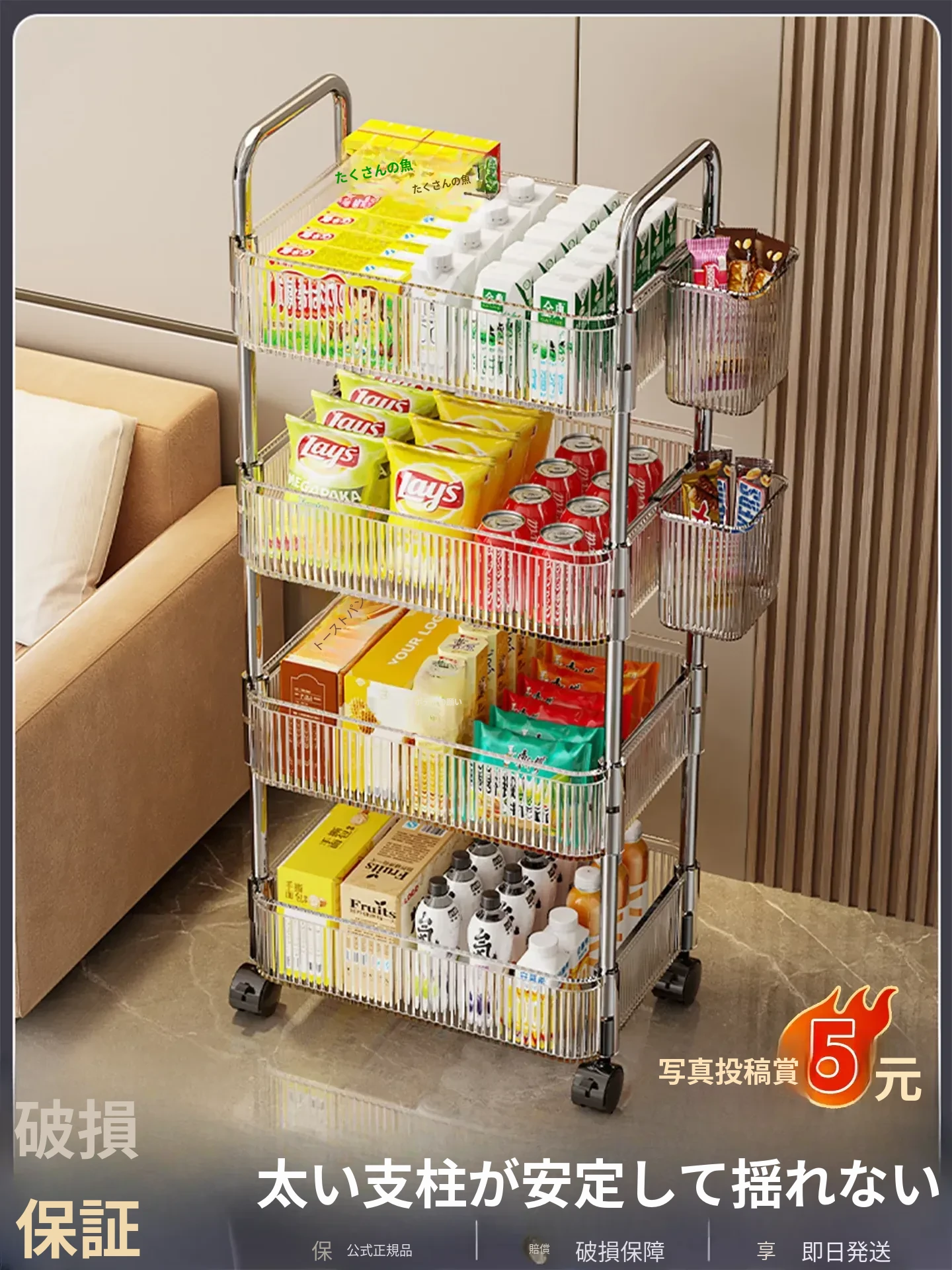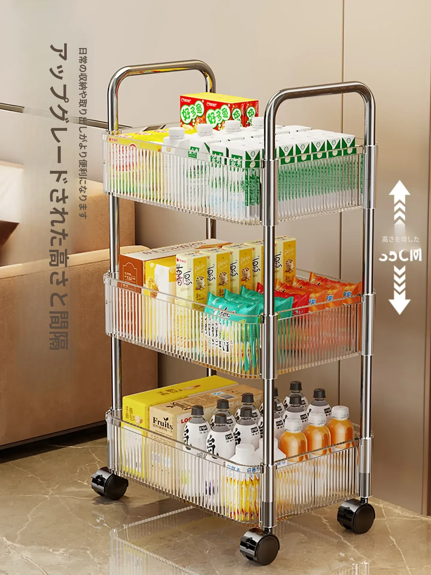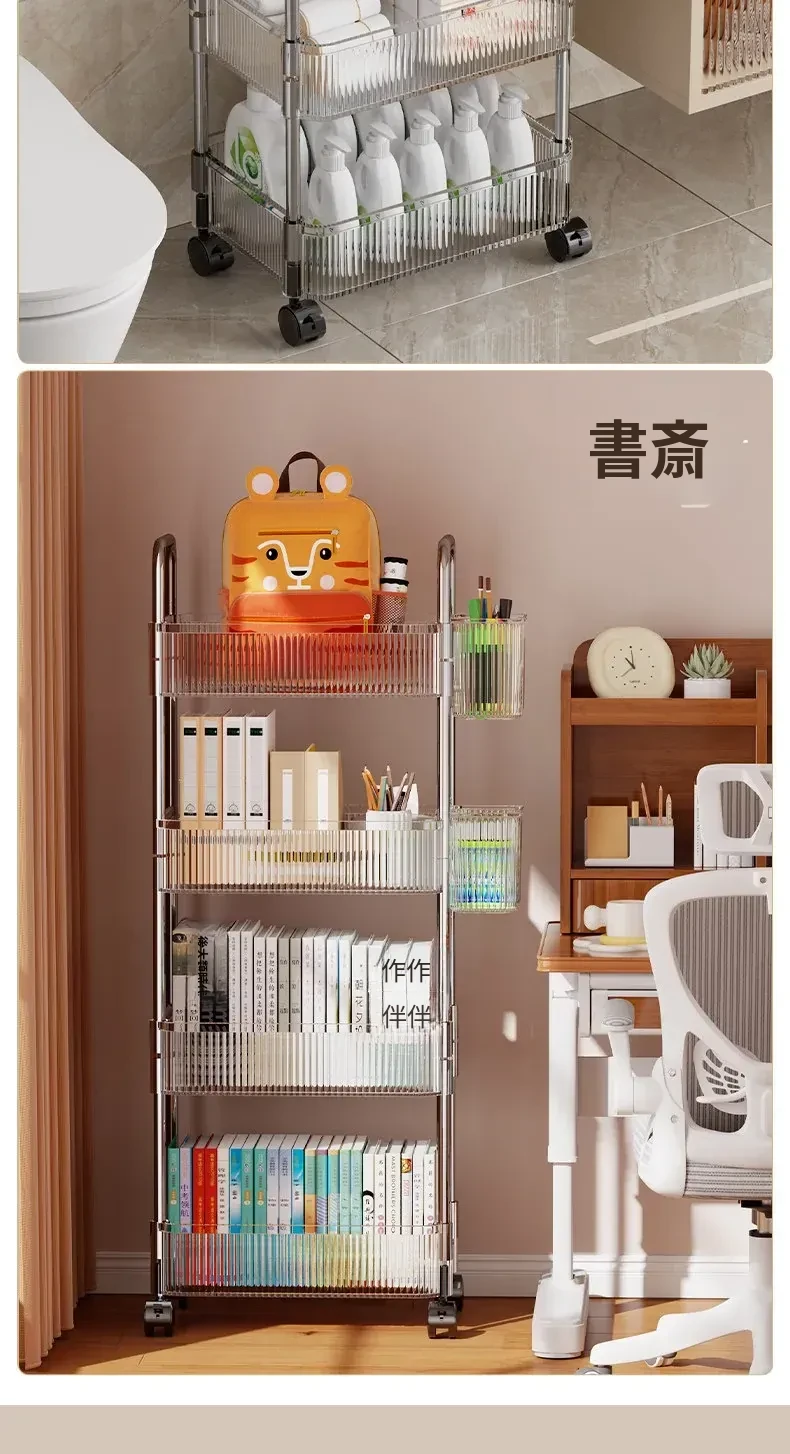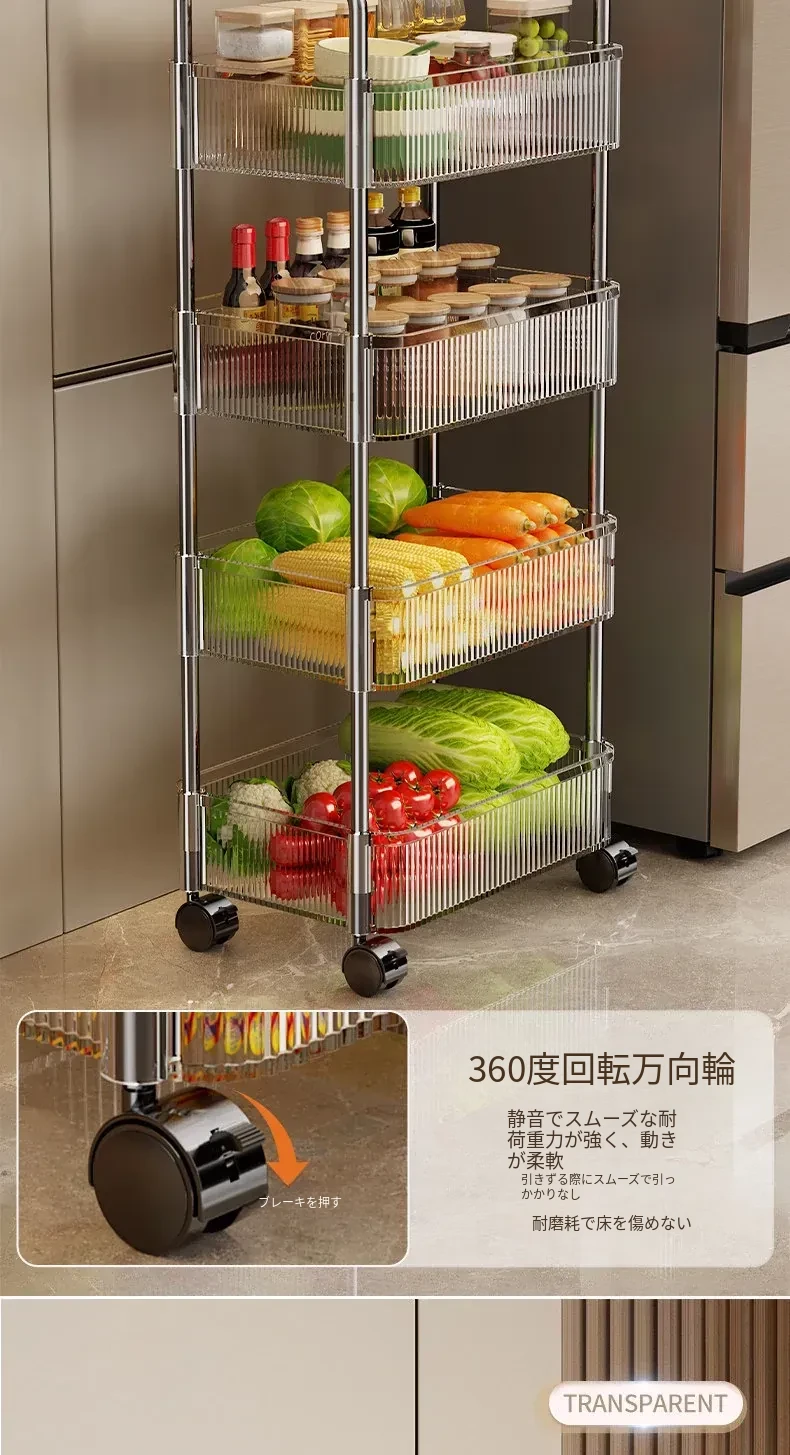 アクリル製スナック収納ラック - 移動可能な多層小型キャリー、化粧品や小物をすっきり収納!リビングや寝室にぴったりの収納棚。