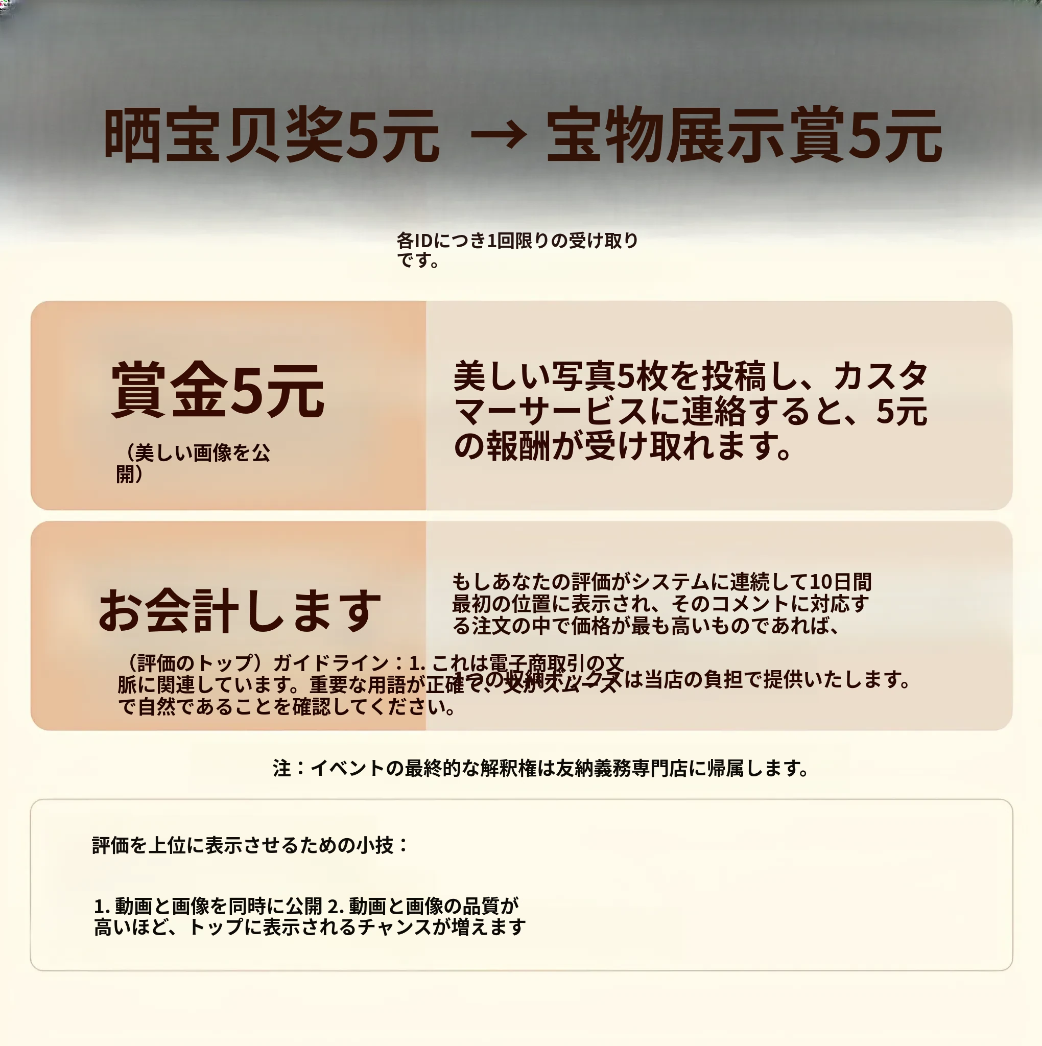 ✅【今日の特典】到着後に5元をゲット!✅