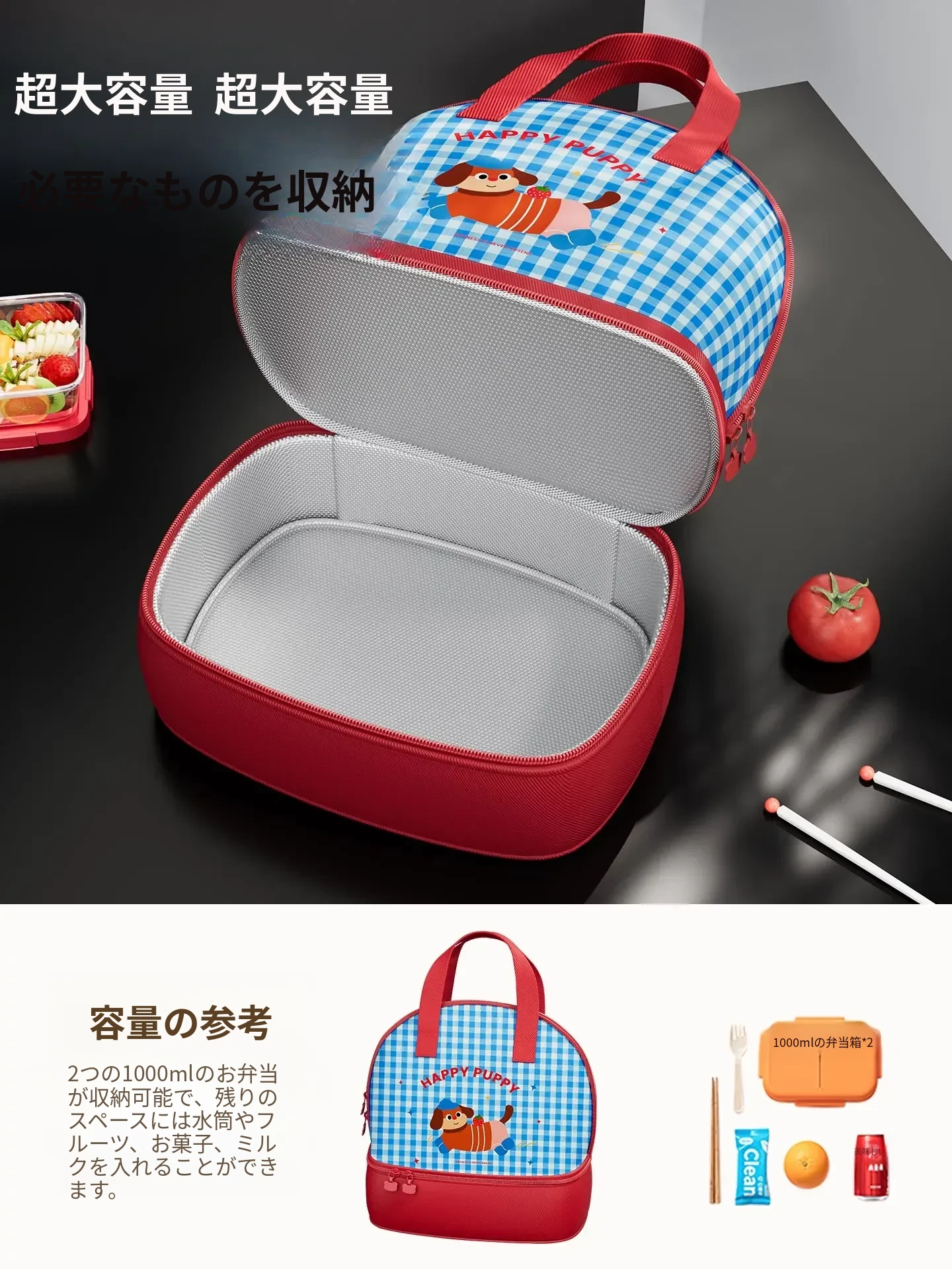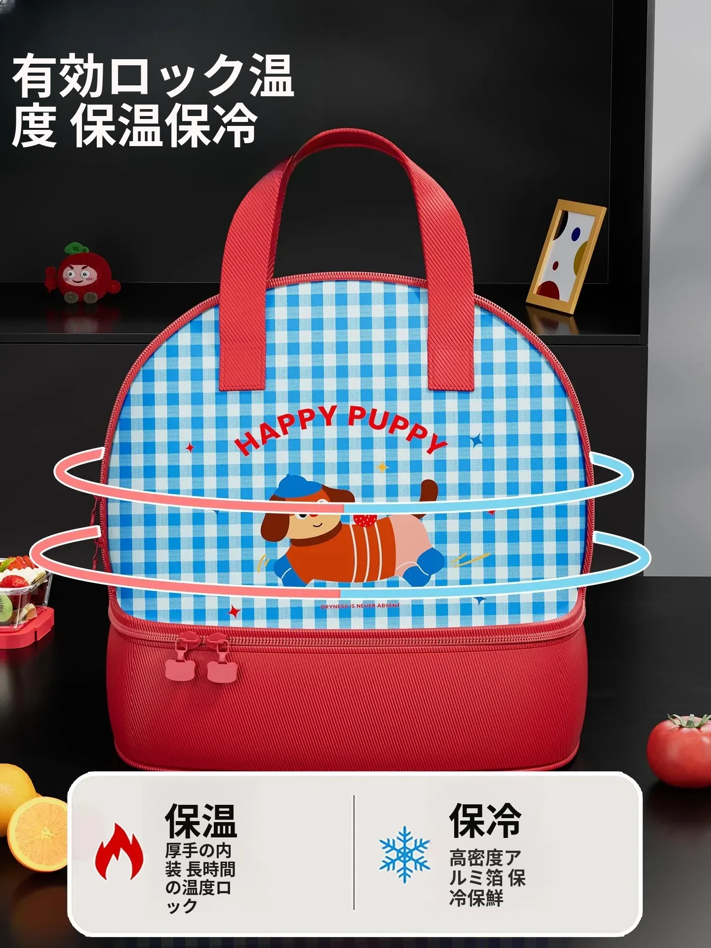 可愛い保温ランチボックスバッグ!学生やビジネスマンに最適な持ち運び便利な弁当袋。厚手アルミフォイル採用で保温効果抜群!手提げタイプで使いやすさも抜群!