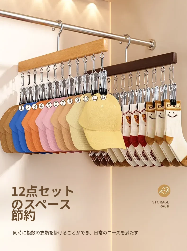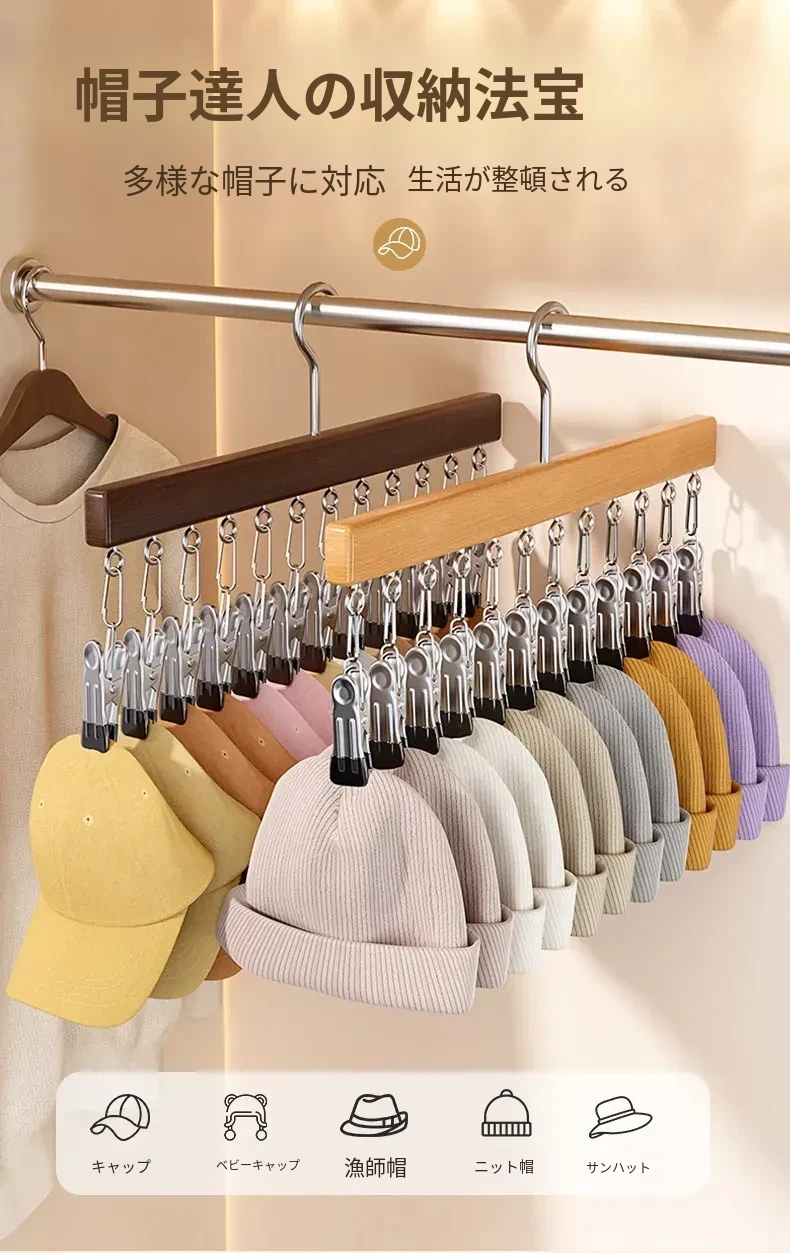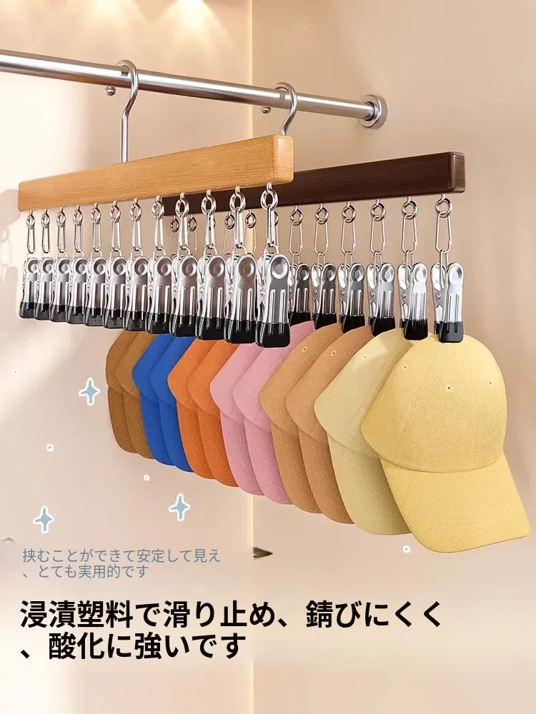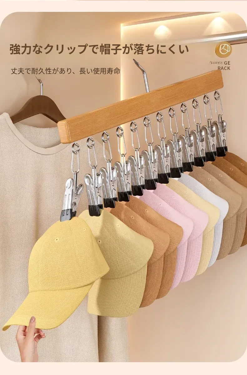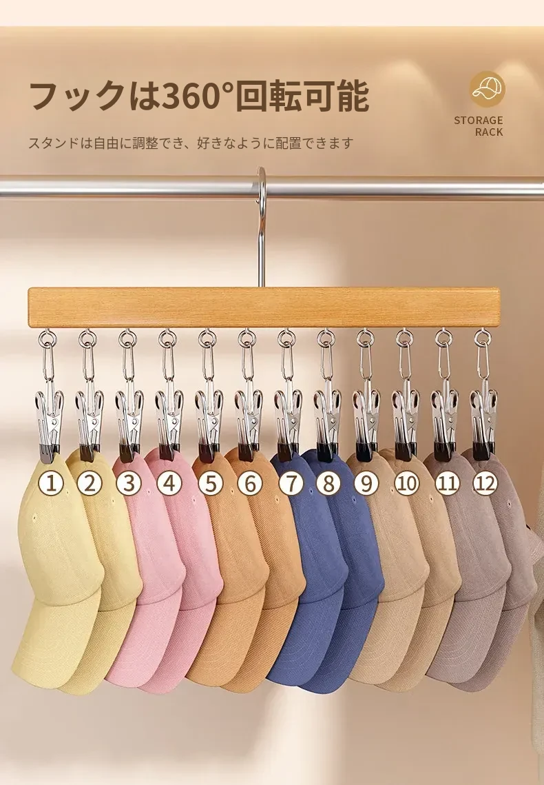 帽子収納の魔法!家庭用マルチクリップ付きダックビルキャップ・野球帽フック、クローゼット用多機能整理ラックでスペースを有効活用!