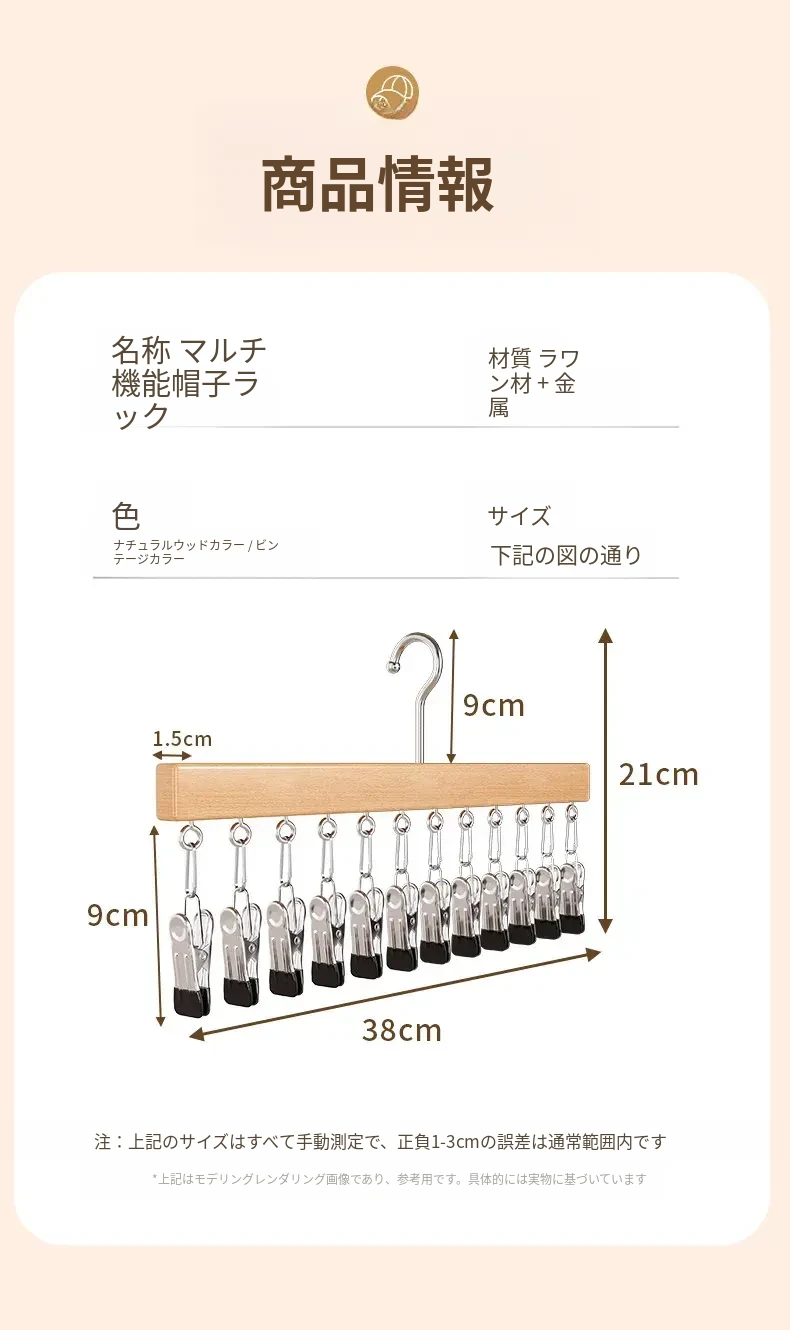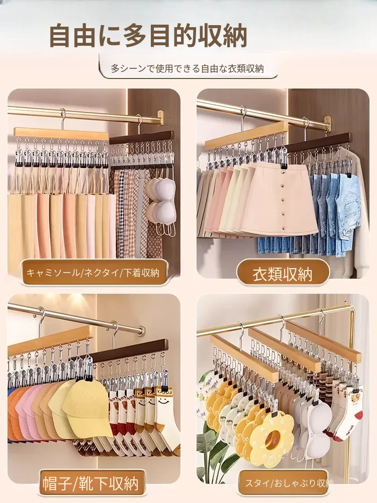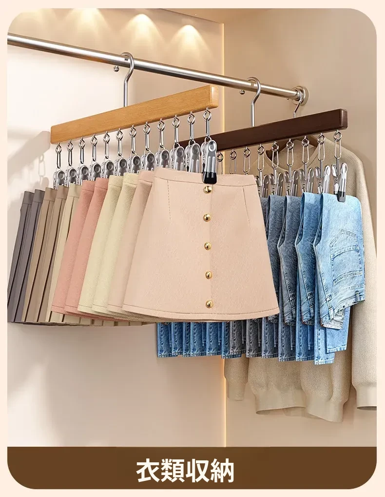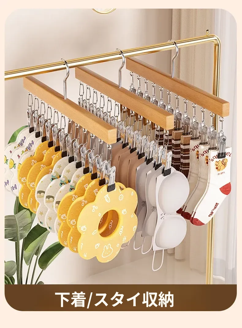 セット商品✅無垢材12クリップハンガー【ナチュラルカラー+レトロカラー】⭐五星おすすめ