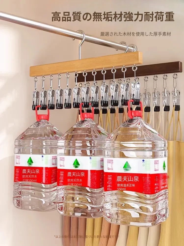 ナチュラルカラー·❤️·無垢材12クリップハンガー【痕がつかないパンツハンガー/強力クリップ/ステンレス製】3個セット