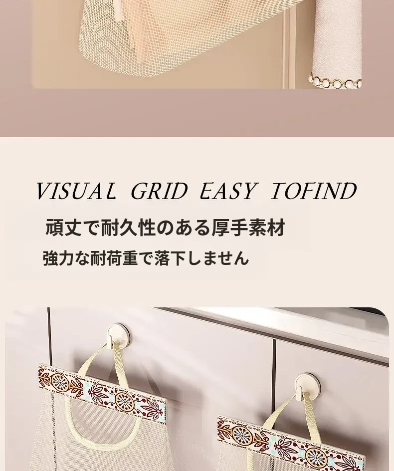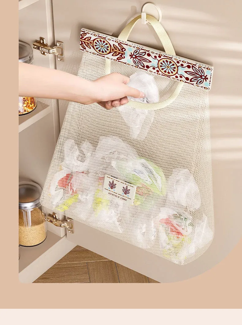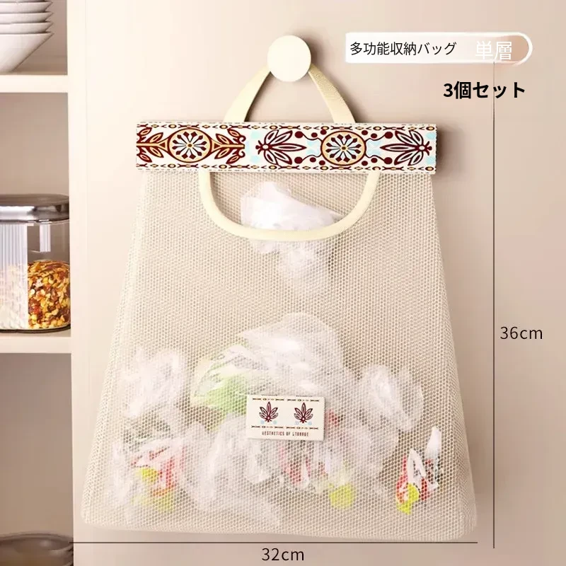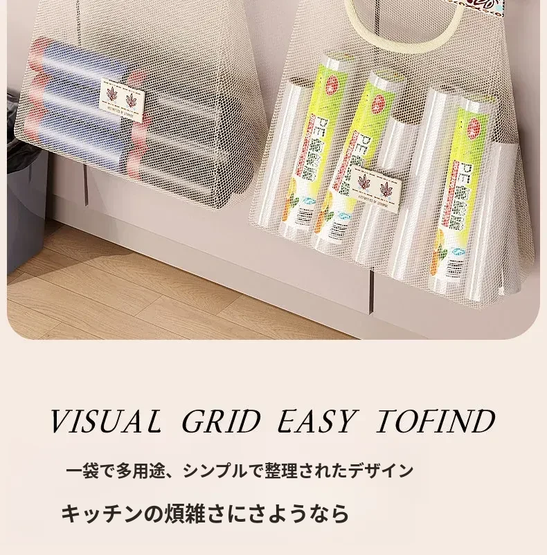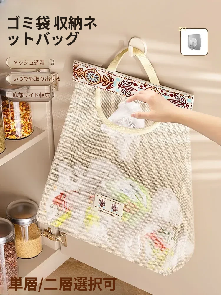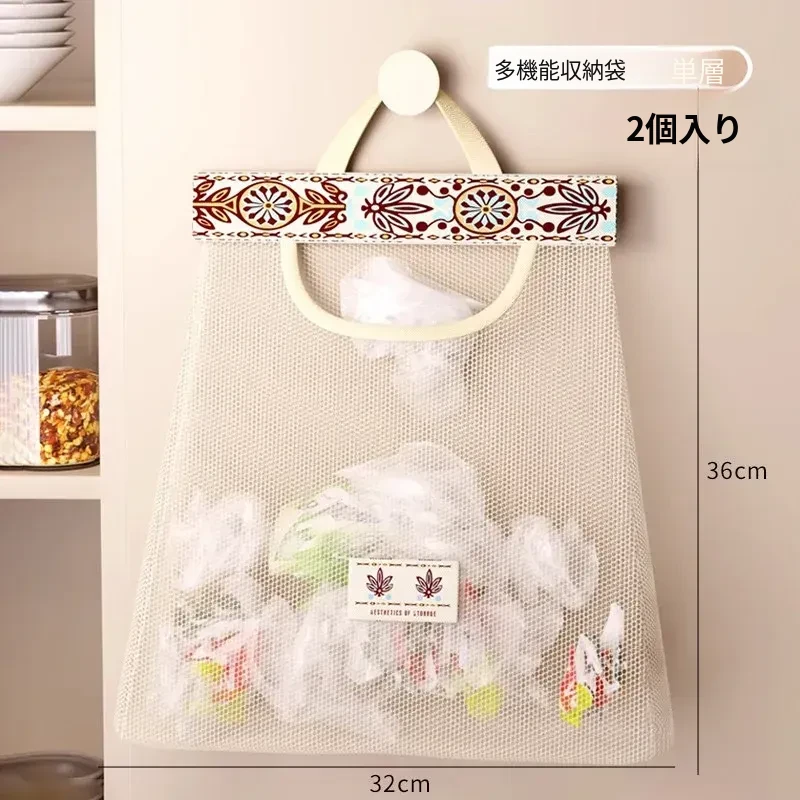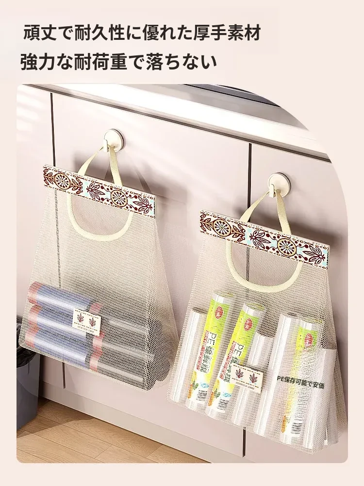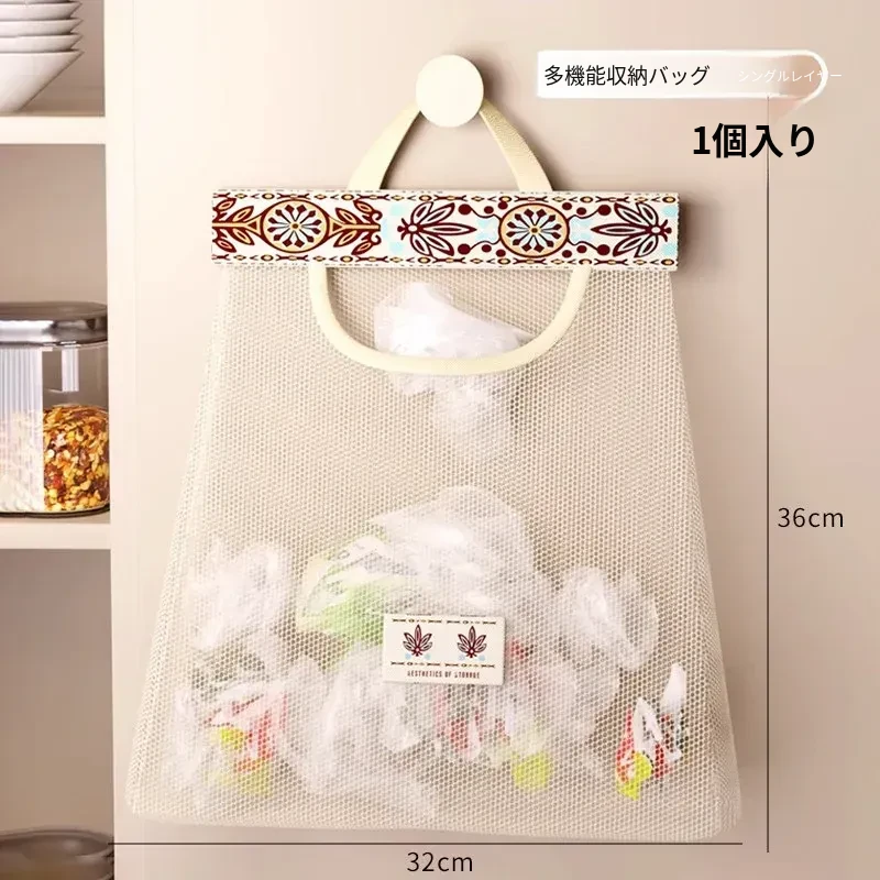キッチンゴミ袋収納の必需品!壁掛け式クローゼットドア後ろの収納ポケットで、プラスチックバッグをすっきり整理。スペースを有効活用し、使いやすさ抜群のネットポーチ!