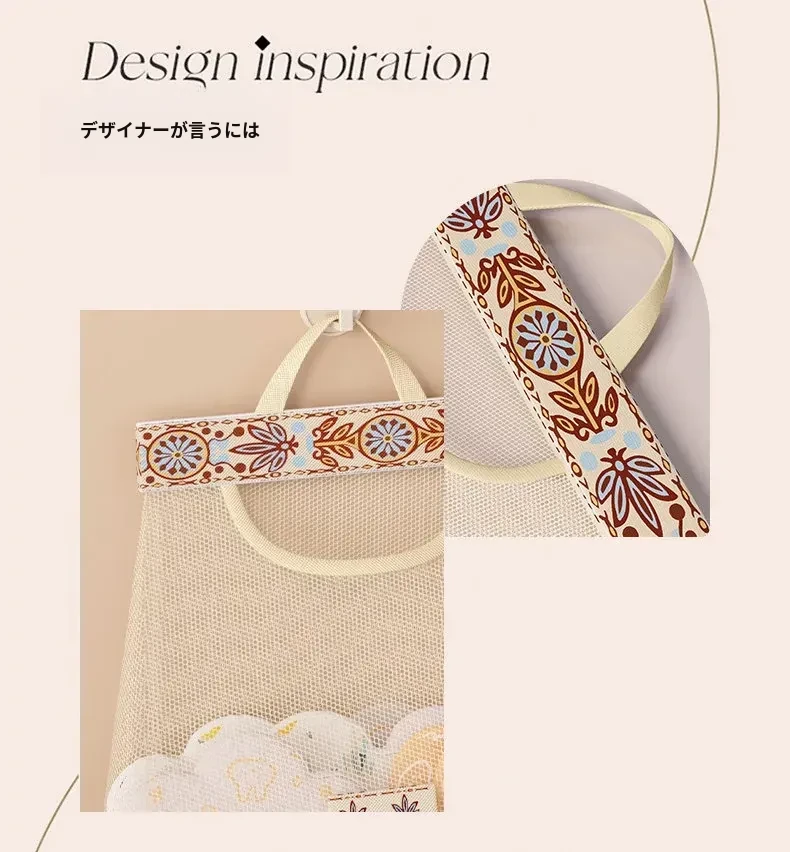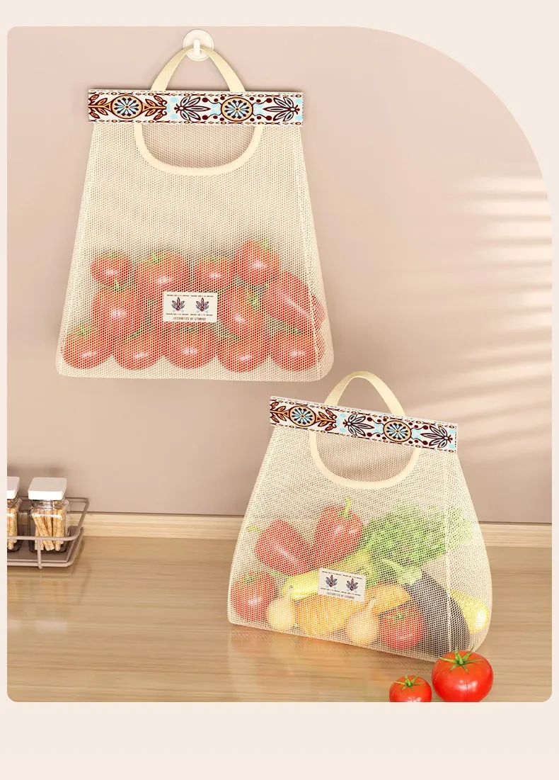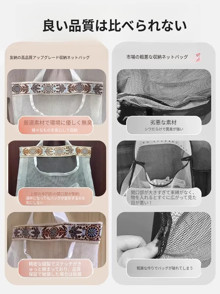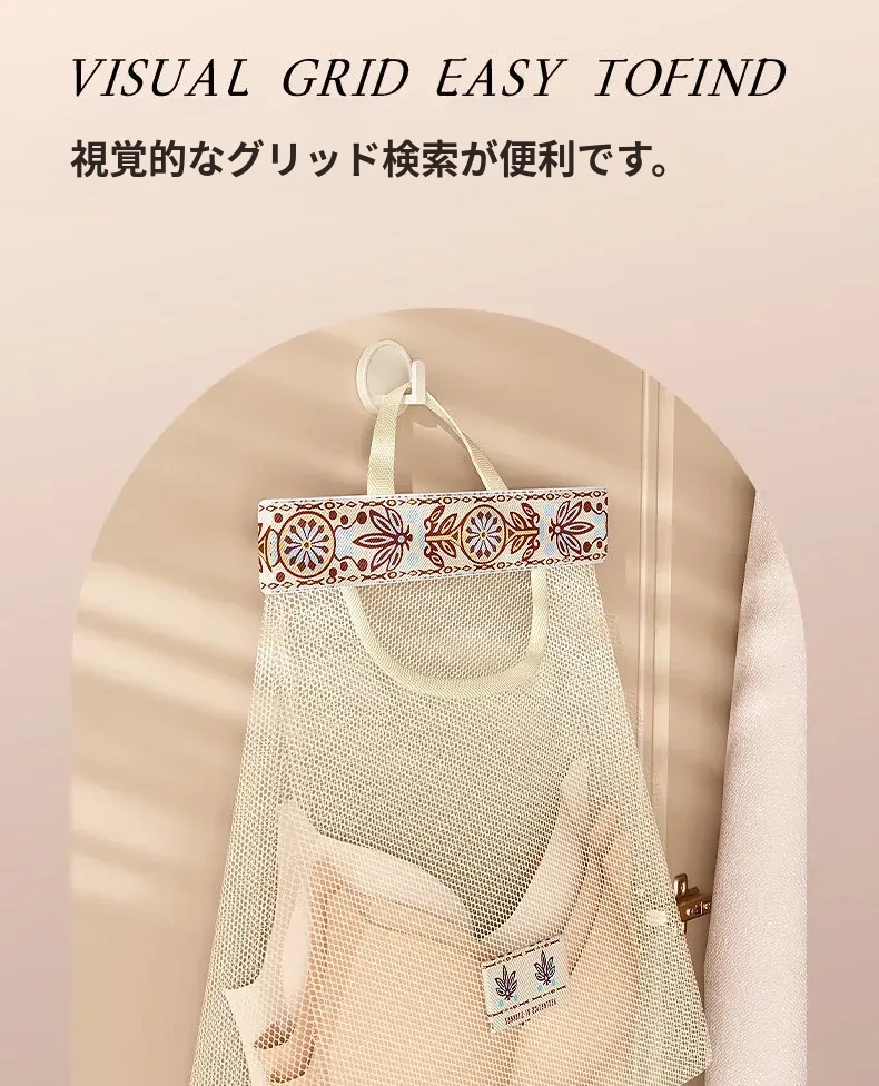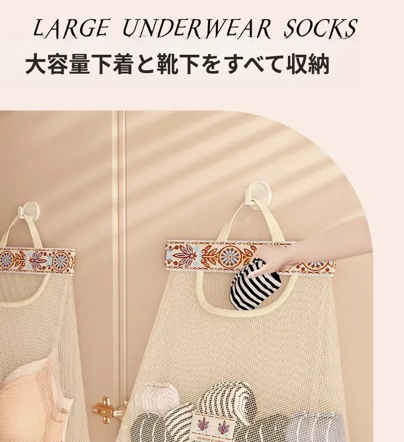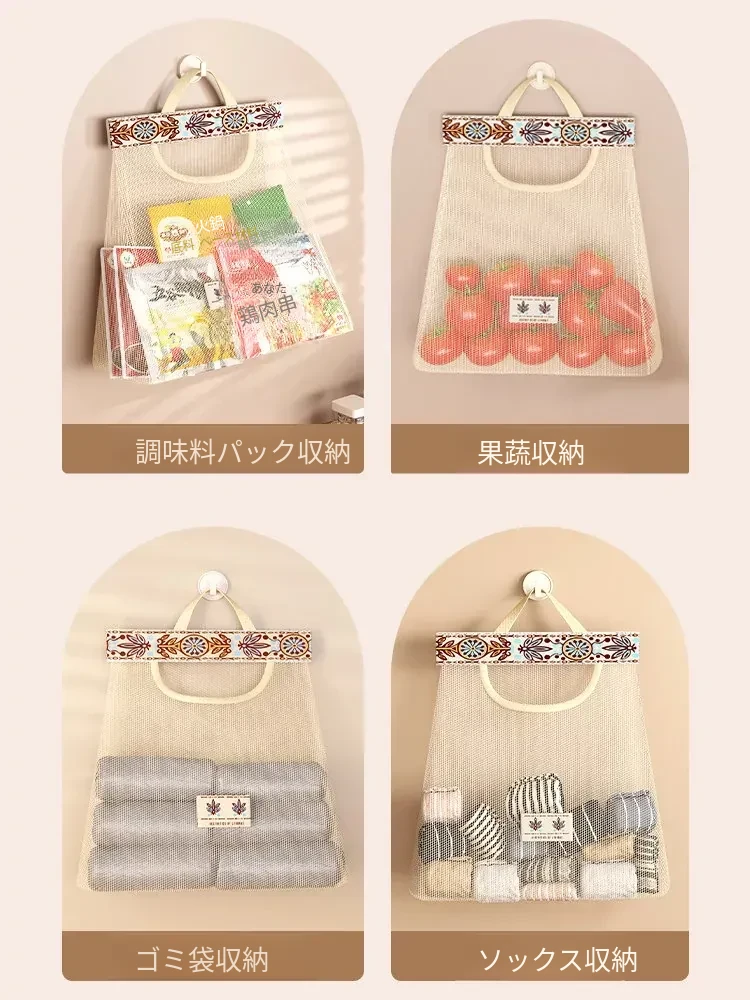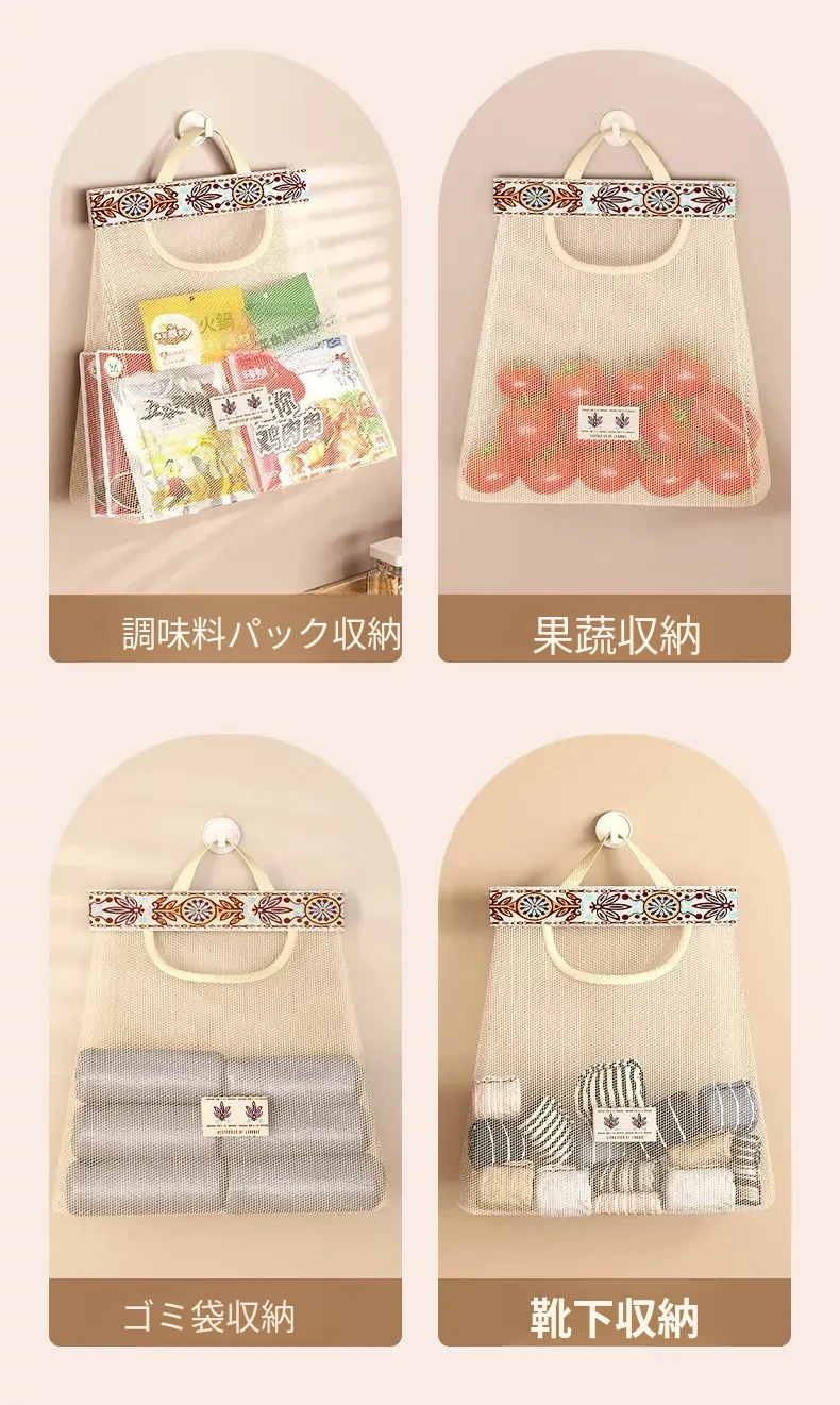 キッチンゴミ袋収納の必需品!壁掛け式クローゼットドア後ろの収納ポケットで、プラスチックバッグをすっきり整理。スペースを有効活用し、使いやすさ抜群のネットポーチ!