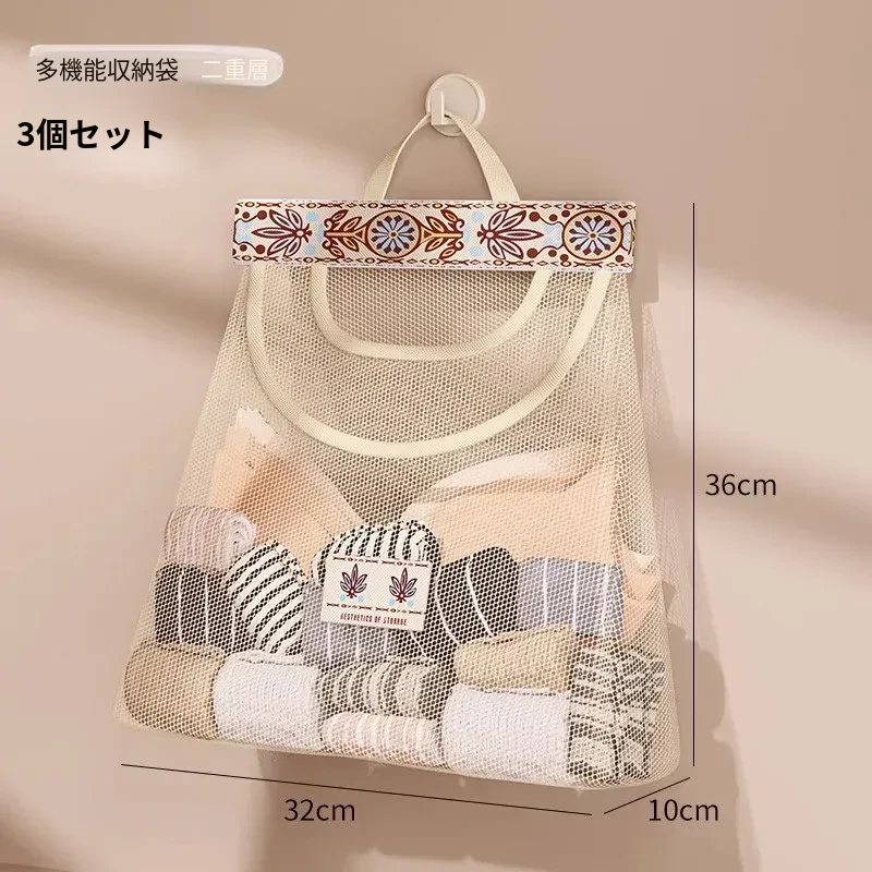 ダブルレイヤー⭐3個入り【視覚的メッシュ/通気性・カビ防止】フック付き