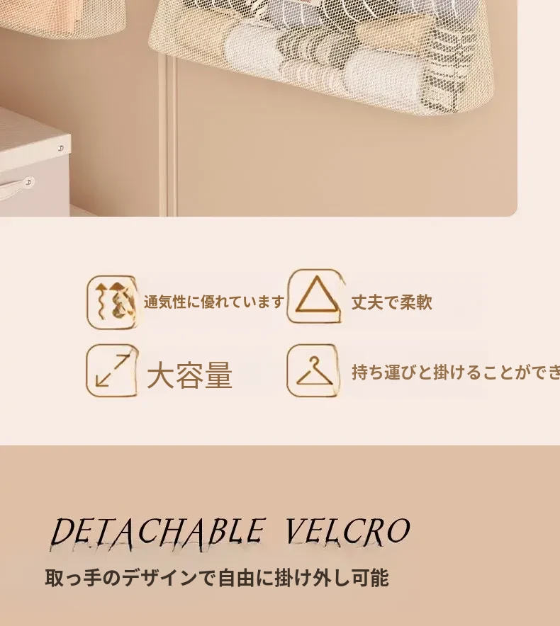 シングルレイヤー⭐1個入り【視覚的メッシュ/通気性・カビ防止】フック付き