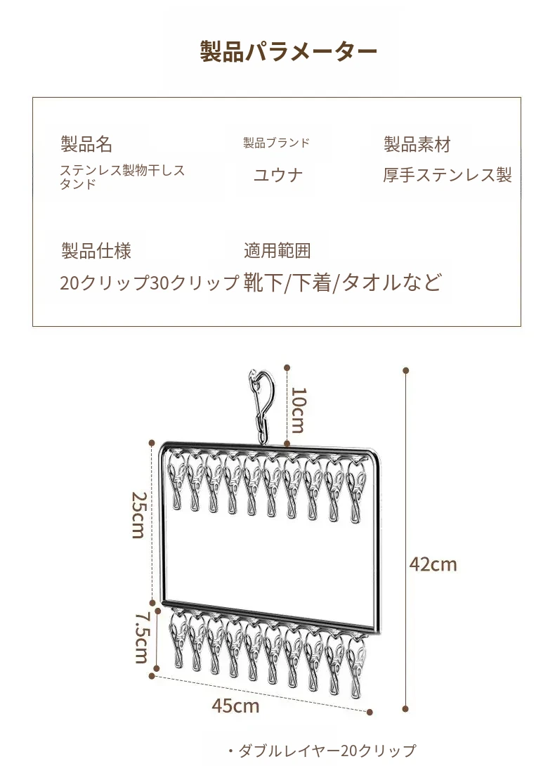 二重層20クリップ【1つ購入で2つプレゼント】実芯太型/防風防錆/省スペース