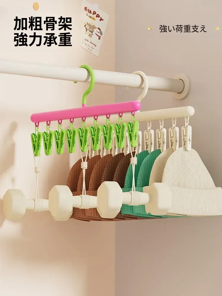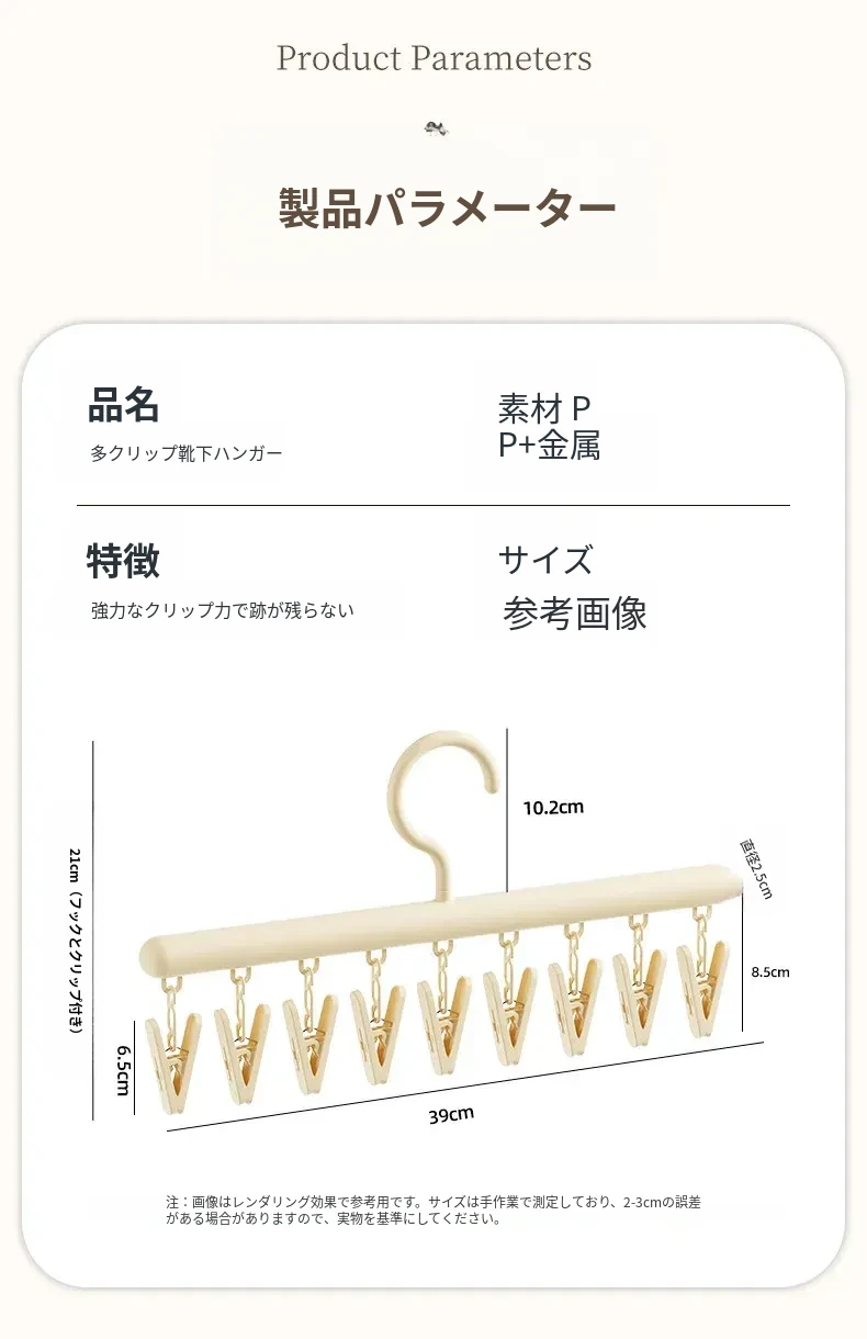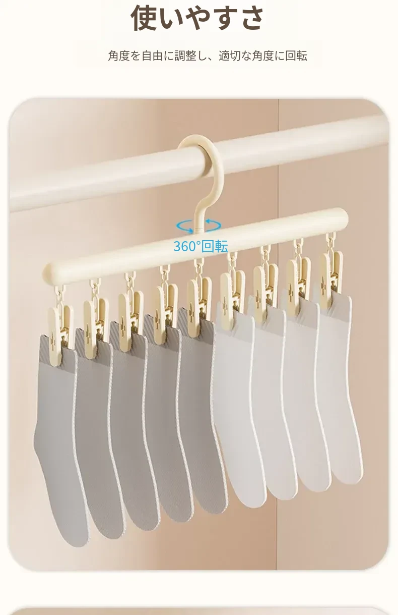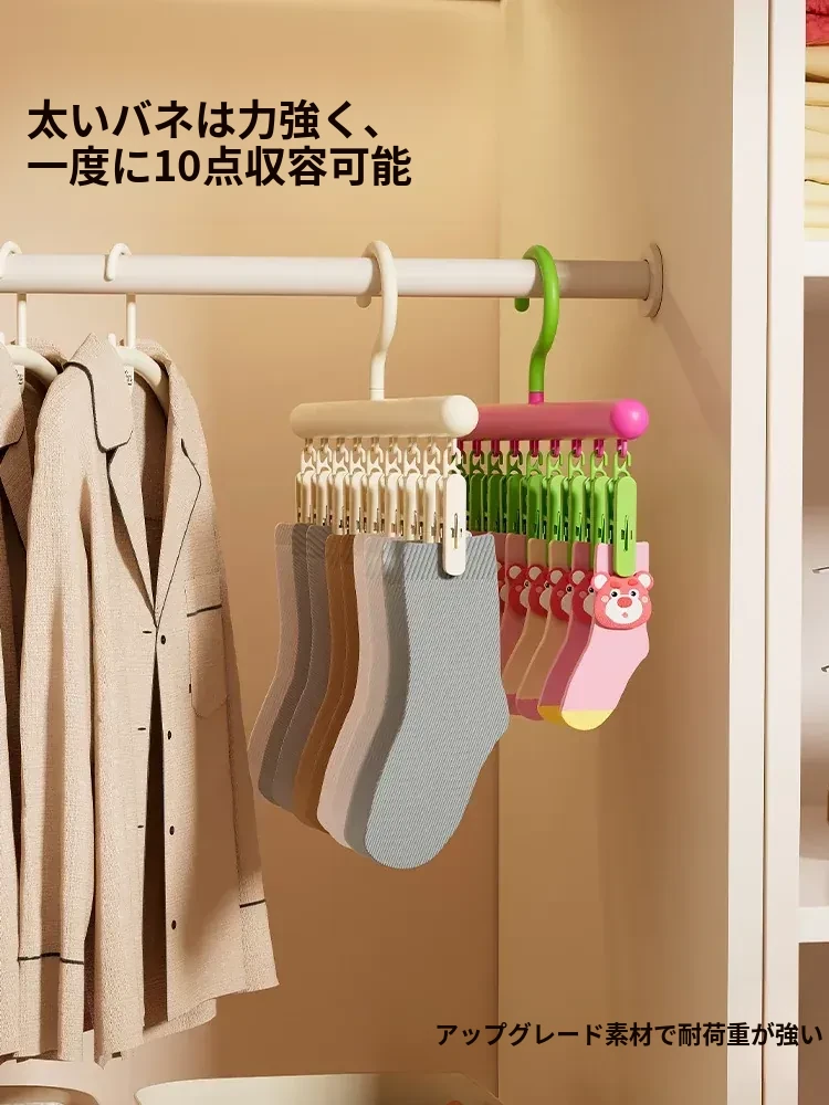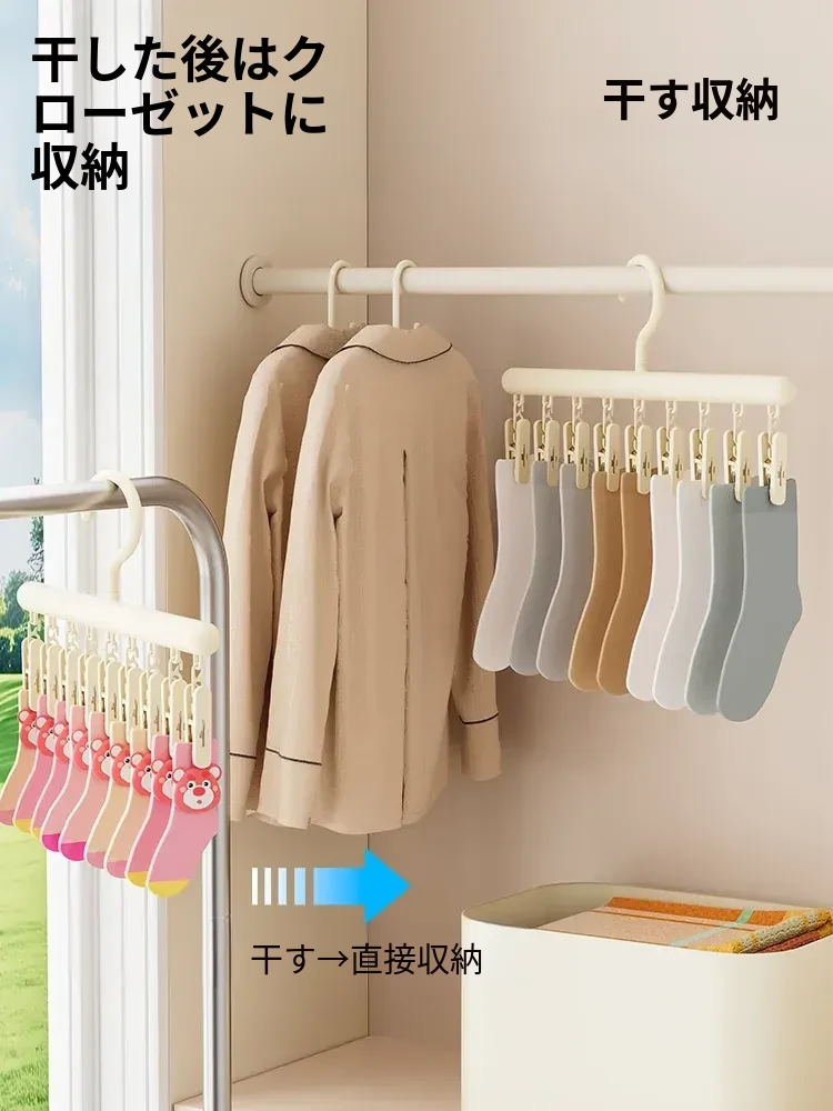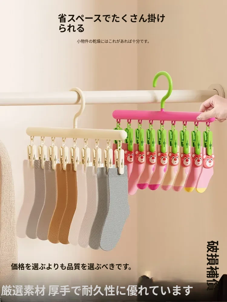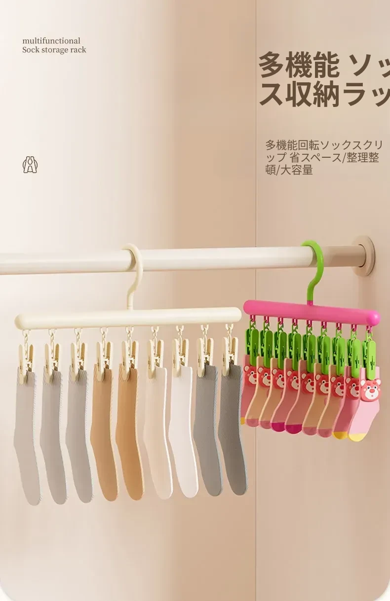 多機能防風クリップ付き靴下干しラック|バルコニー用|下着やパンツも楽々乾燥!収納も便利なアイデア商品!