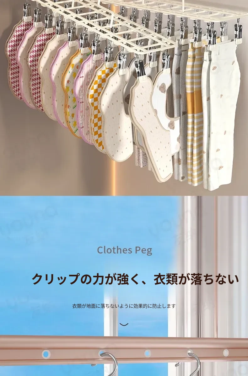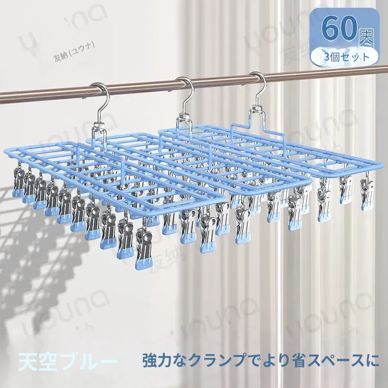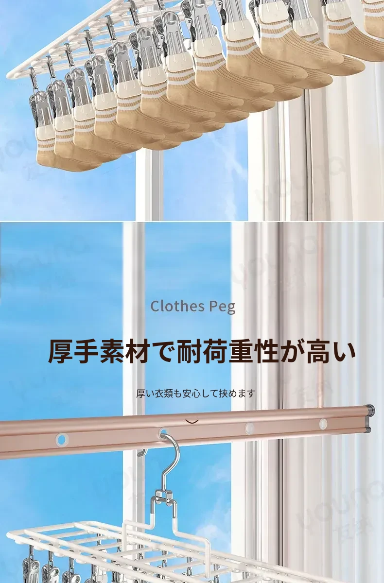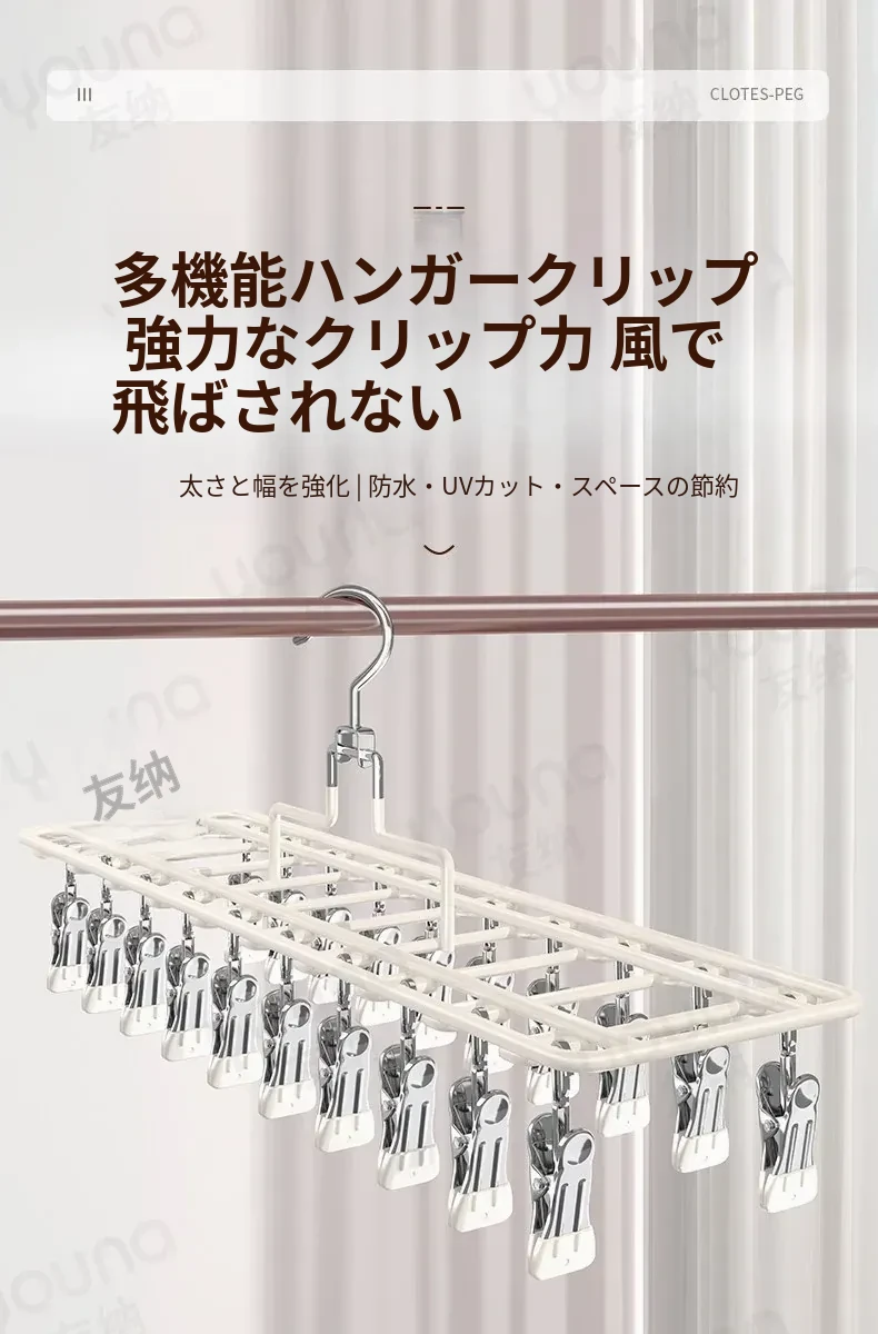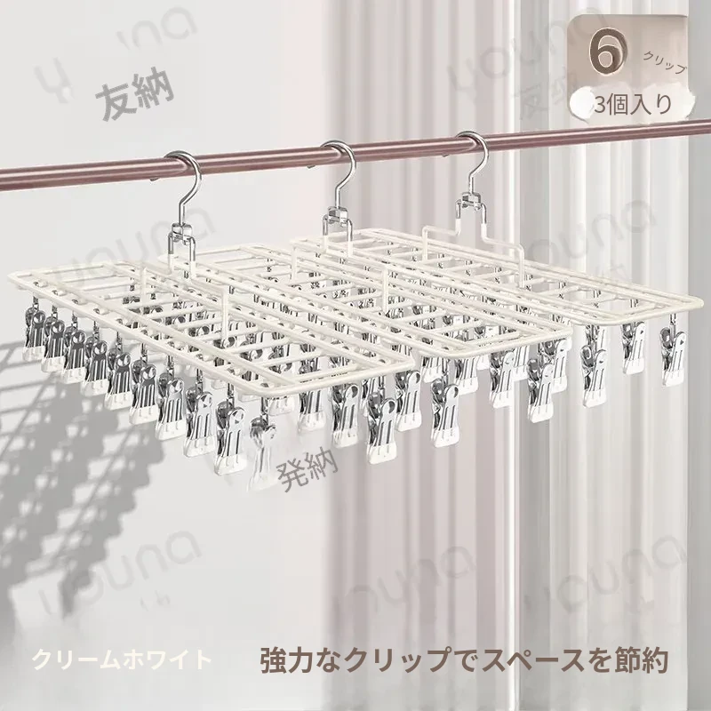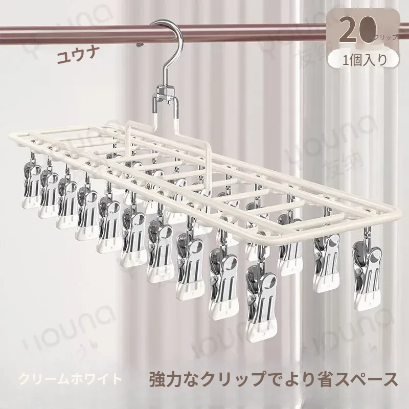 ステンレス製多機能クリップハンガー|家庭用・風に強い・痕跡なし|バルコニーでの洗濯に最適!下着・靴下も安心して干せる便利なアイテム!