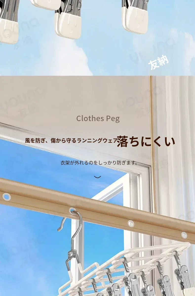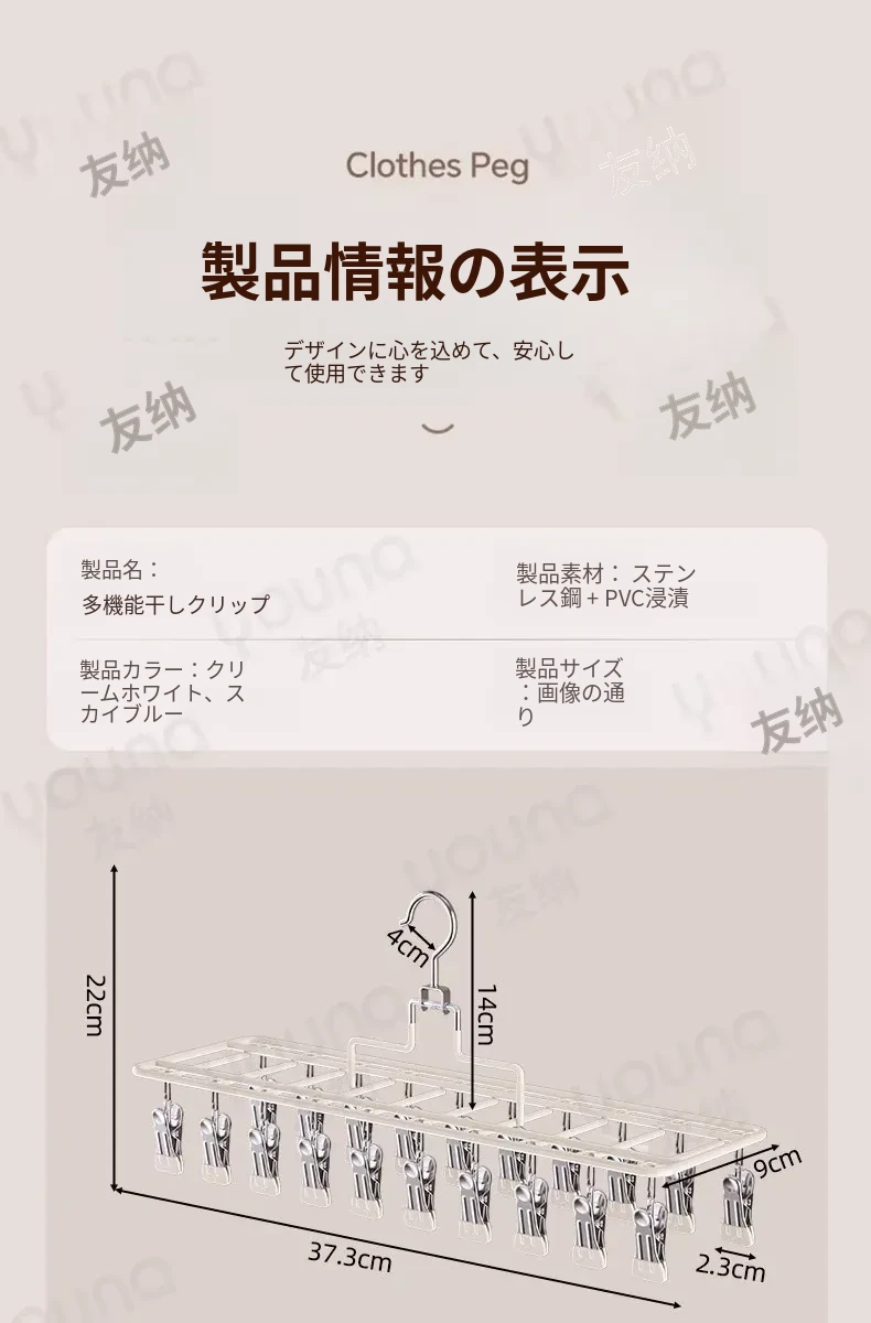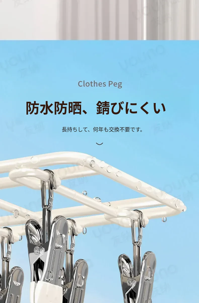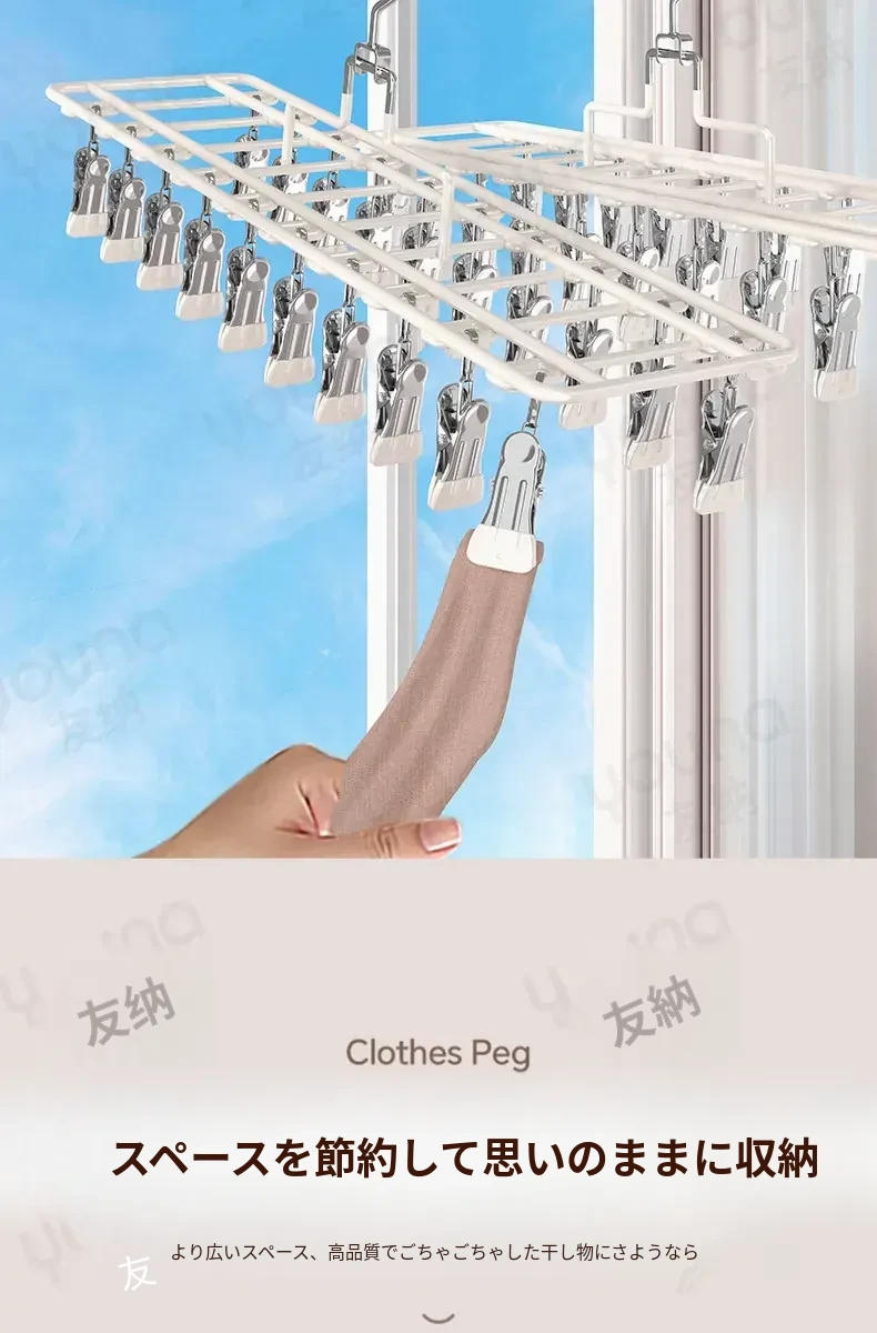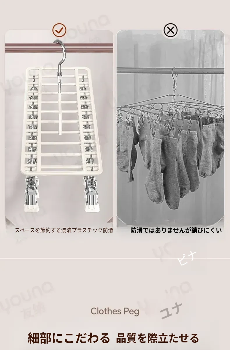 ステンレス製多機能クリップハンガー|家庭用・風に強い・痕跡なし|バルコニーでの洗濯に最適!下着・靴下も安心して干せる便利なアイテム!