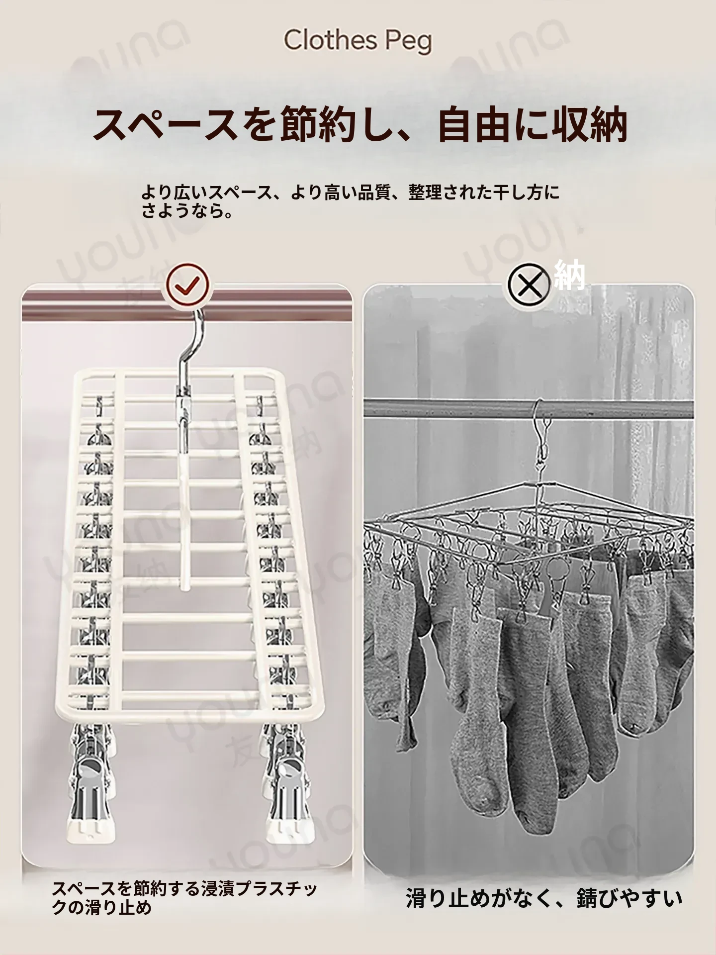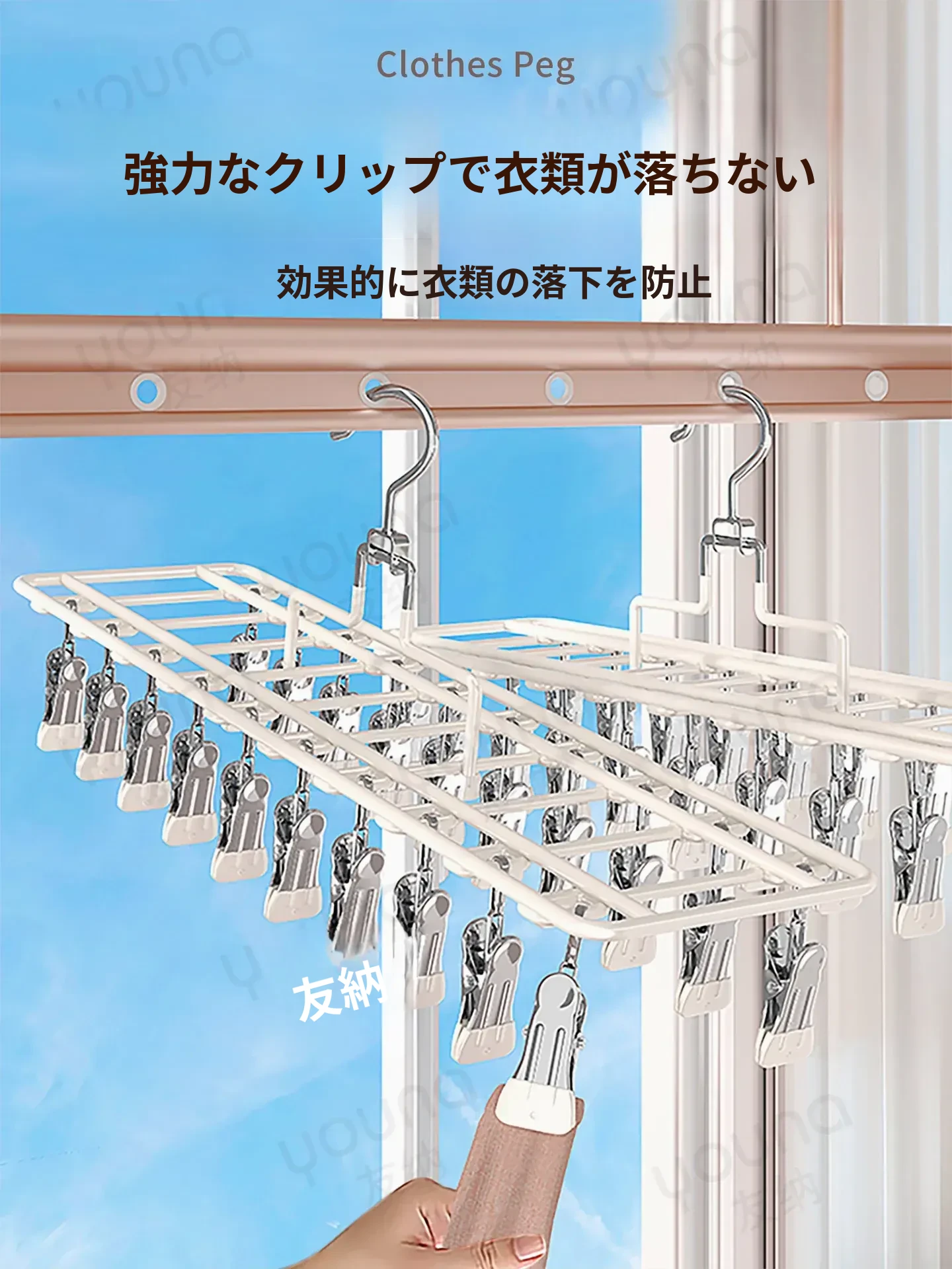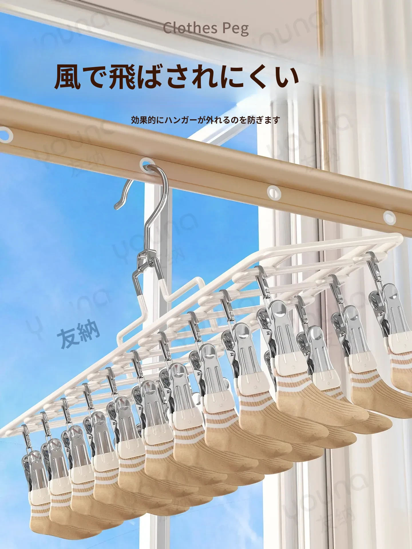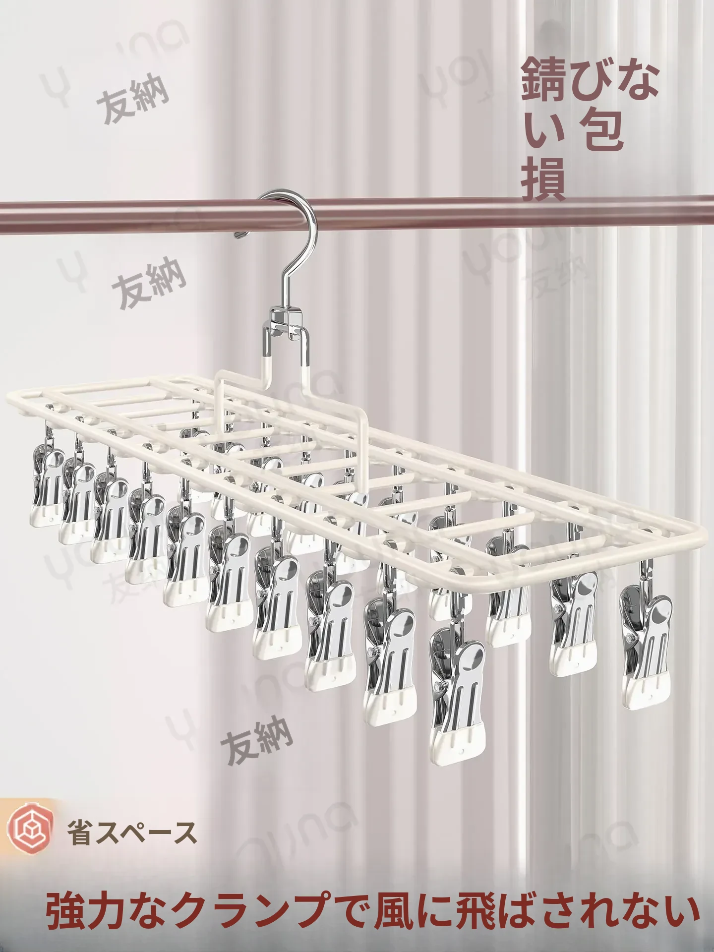 ステンレス製多機能クリップハンガー|家庭用・風に強い・痕跡なし|バルコニーでの洗濯に最適!下着・靴下も安心して干せる便利なアイテム!