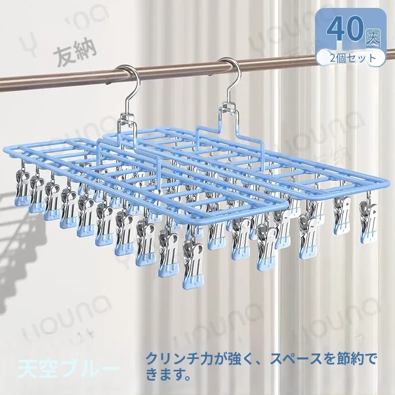 天ブルーのダブルライン【2個40クリップ】強力なクリッピング力⭐錆びた場合は補償⭐厚手で幅広