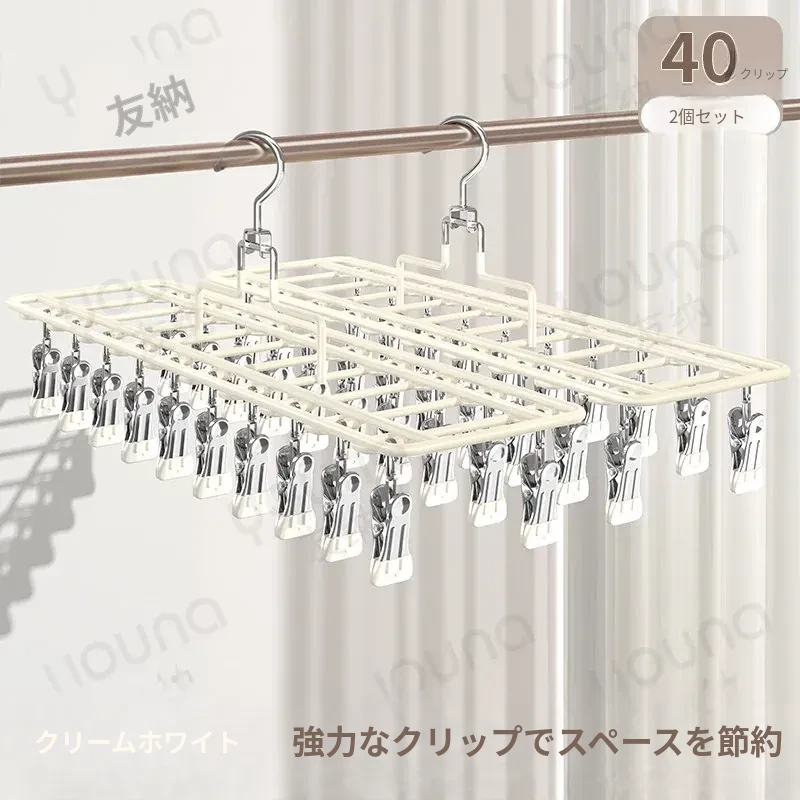 クリームホワイトのダブルライン【2個40クリップ】強力なクリッピング力⭐錆びた場合は補償⭐厚手で幅広
