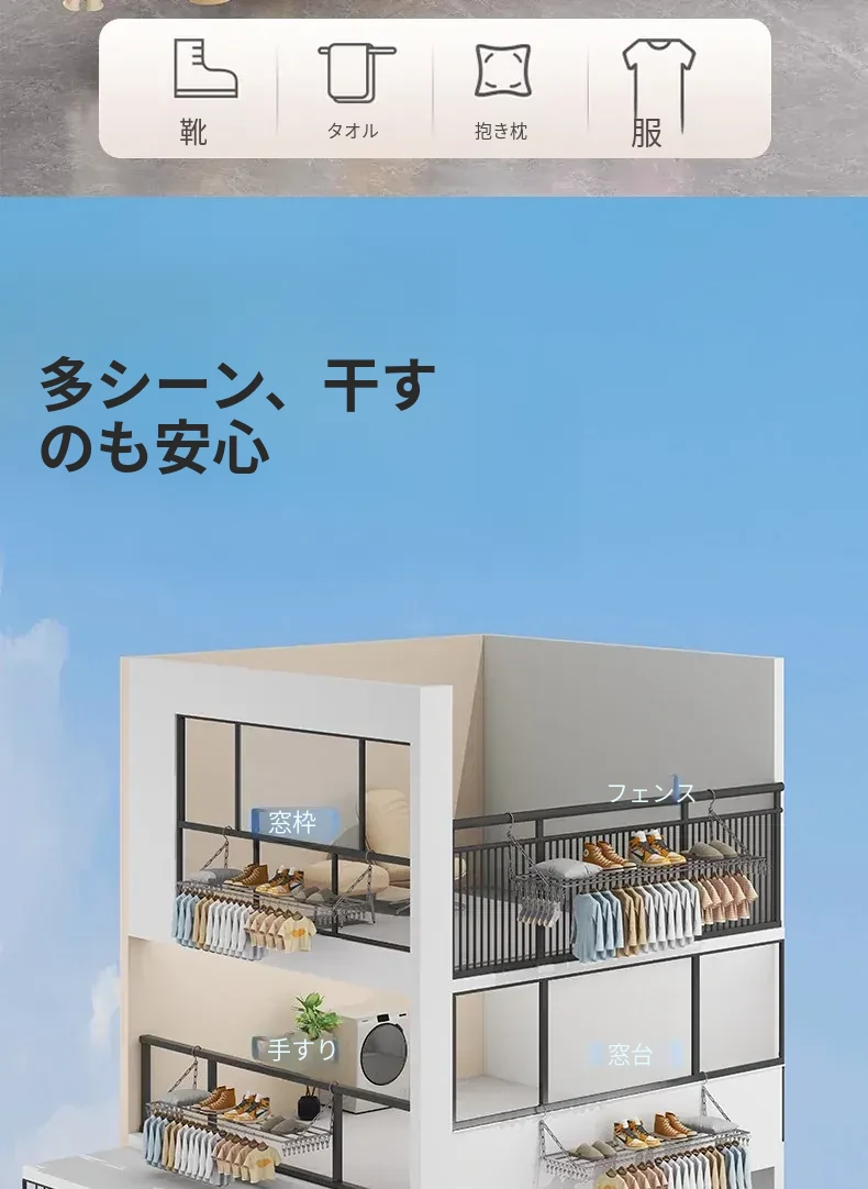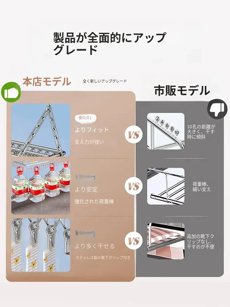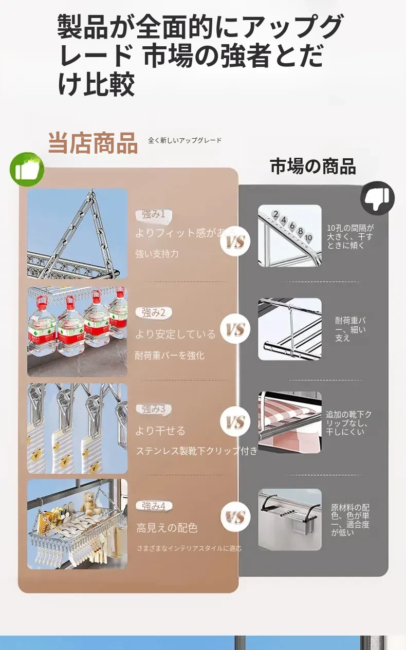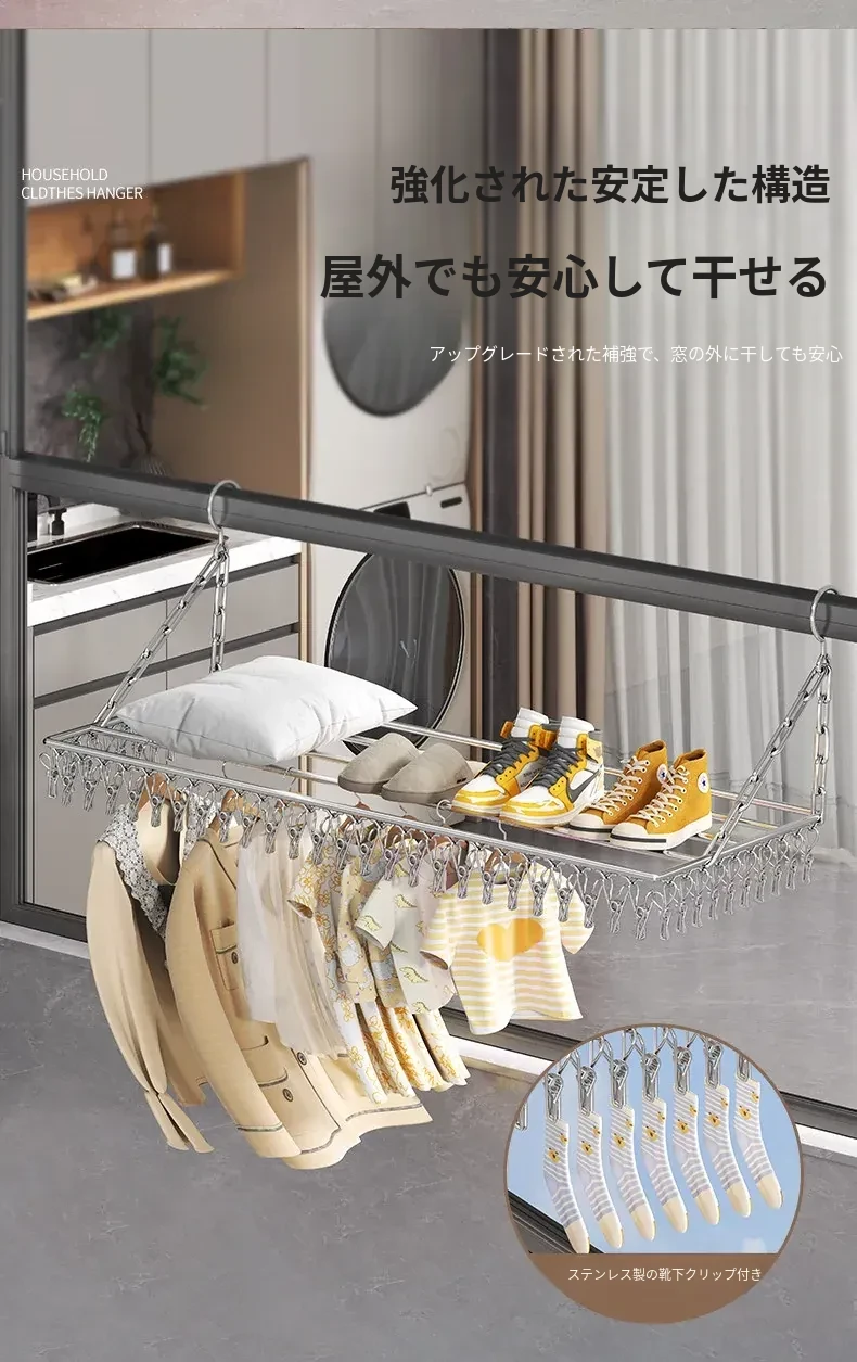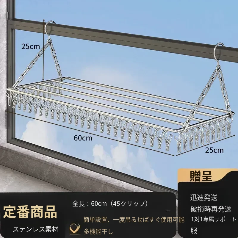 アップグレードモデル【60クリップ40cm】安定して揺れず/錆びた場合は保証