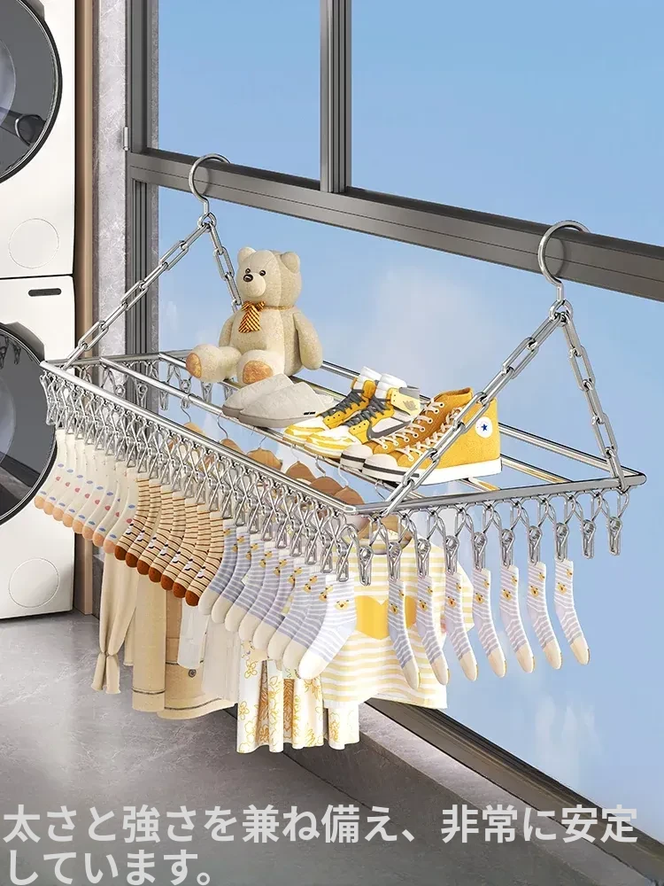 ステンレス製ソックス干しラック - 風に強く、跡が残らない!靴下や下着専用の多機能クリップ式ハンガー。家庭での洗濯がもっと便利に、快適に!