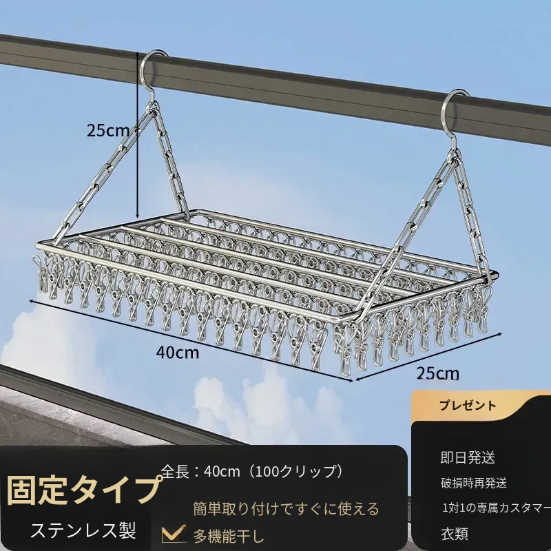 豪華モデル【100クリップ40cm】安定して揺れず/錆びた場合は保証