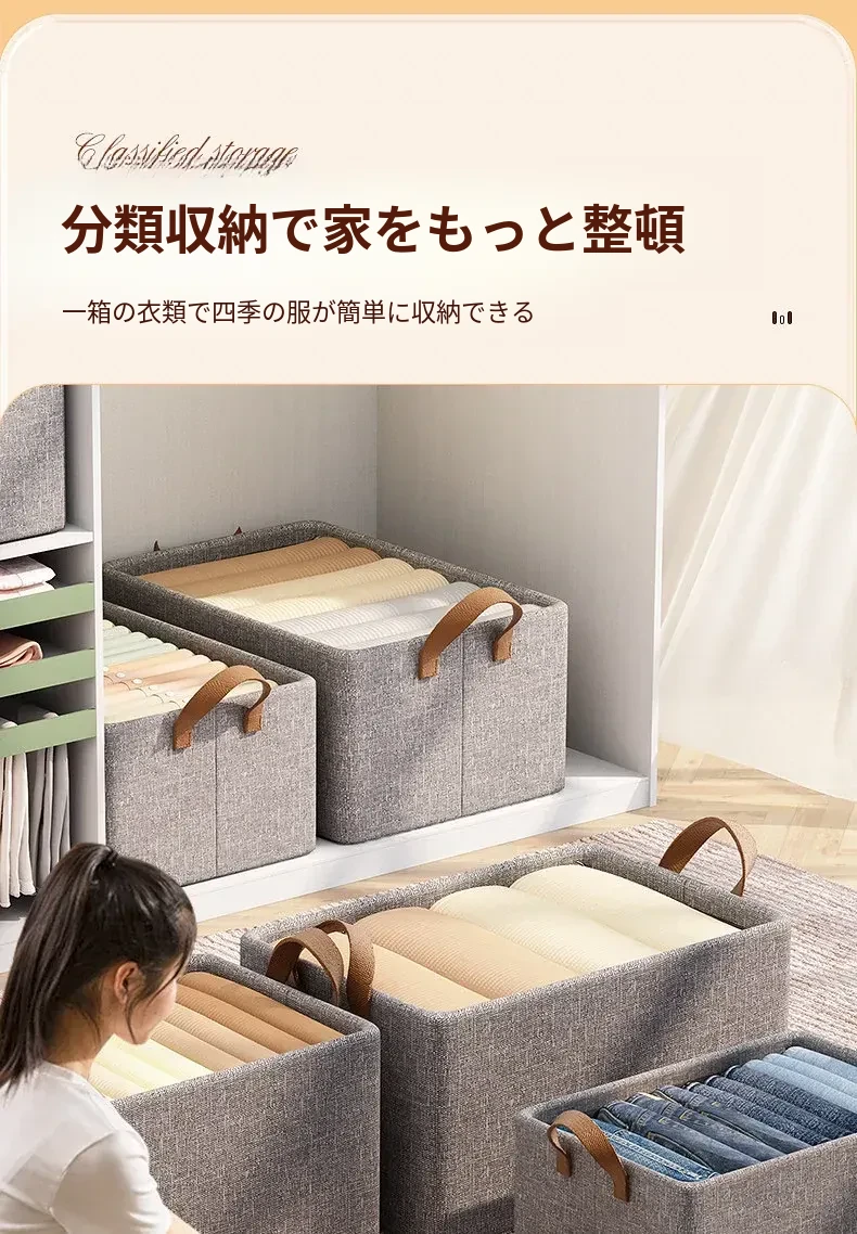 衣類収納の悩みを解消!多機能引き出し式棉麻収納ボックス - 衣服やパンツをすっきり整理!家のクローゼットにぴったりの分層収納キット!