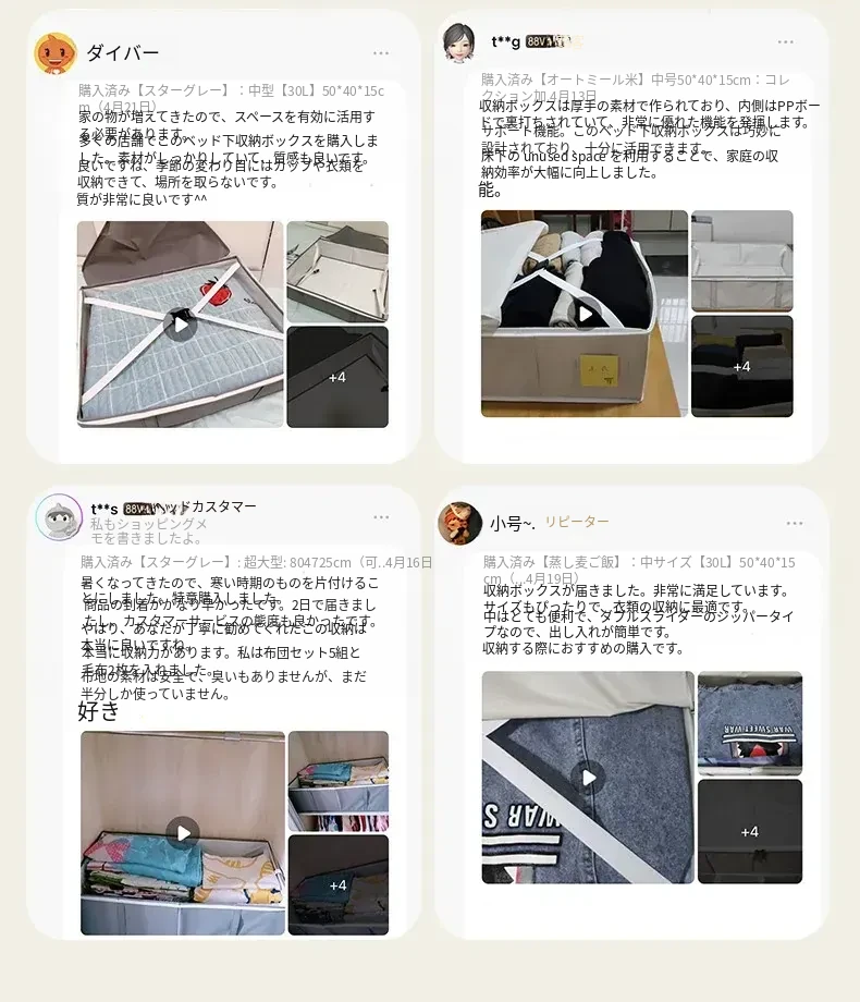 【中サイズ】50*40*15cm(夏服約60着または冬の毛布5枚収納可能)