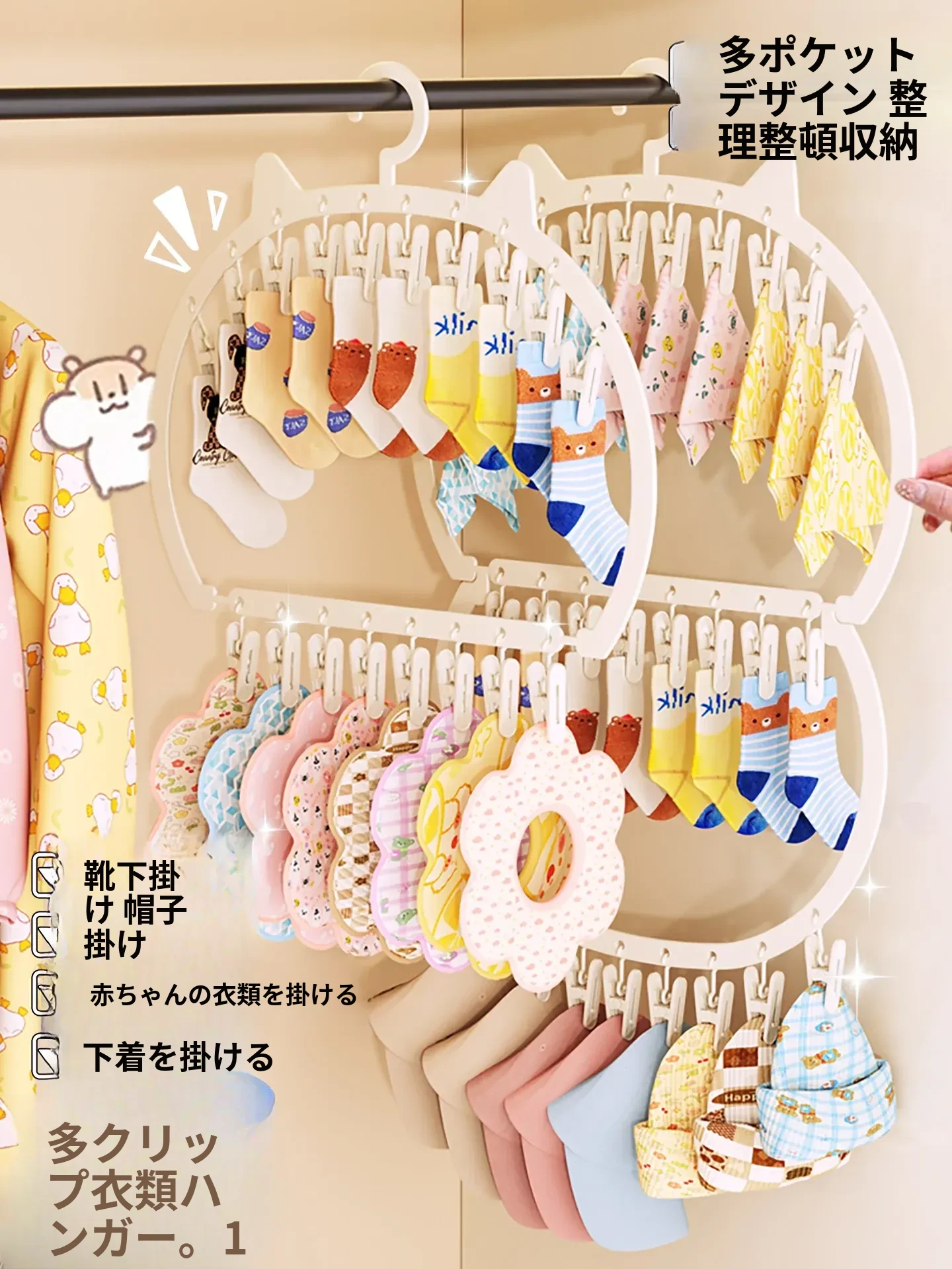 多機能キッズハンガー!赤ちゃんや子供のための衣類や靴下をすっきり収納。家での衣類管理が簡単に!おしゃれで便利な収納ツールで、家族みんなの衣類を整頓しましょう!