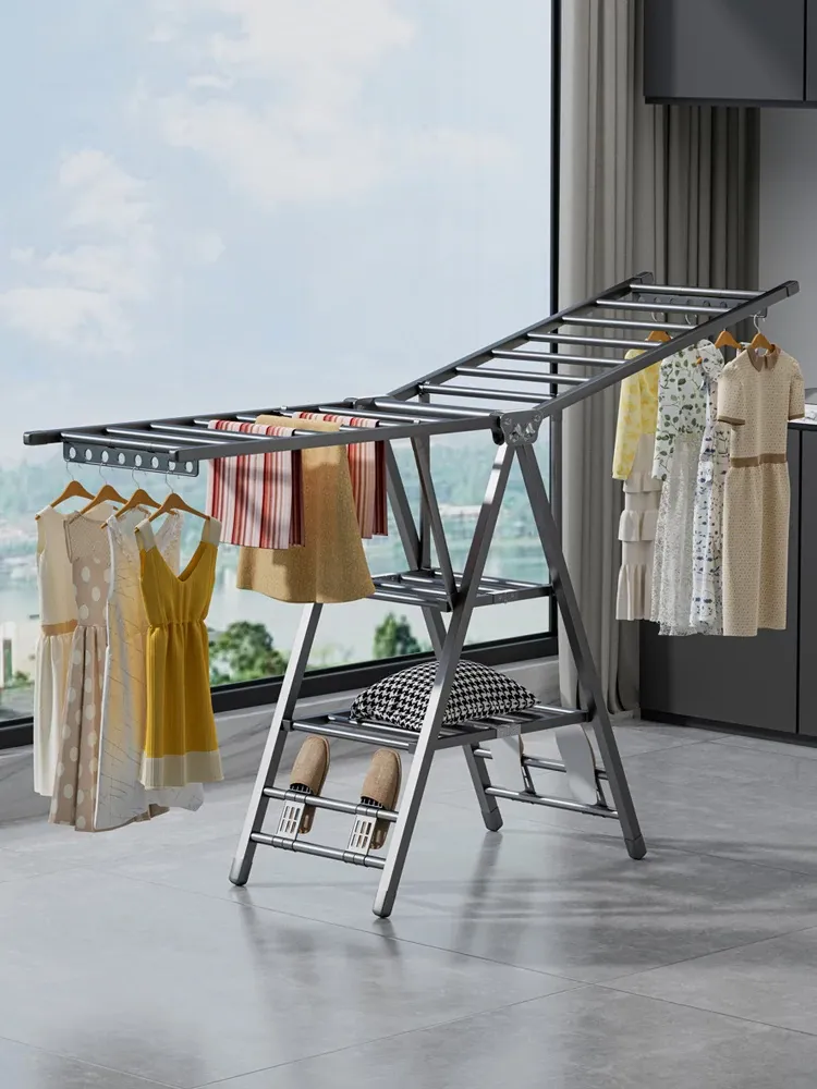 室内外兼用!折りたたみ式衣類干しスタンド - 寝室やバルコニーに最適な便利アイテム!洗濯物も布団も簡単に干せる!おしゃれで実用的なデザインで、あなたの生活をより快適にします。