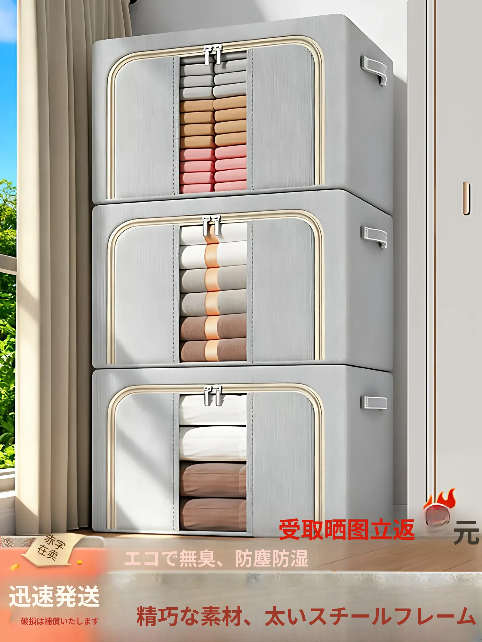 大容量衣類収納ボックス|布製・透明窓付き|衣類や布団をスッキリ整理!家庭用に最適なクローゼット専用収納箱で、スペースを有効活用し、すっきりとしたお部屋を実現します!