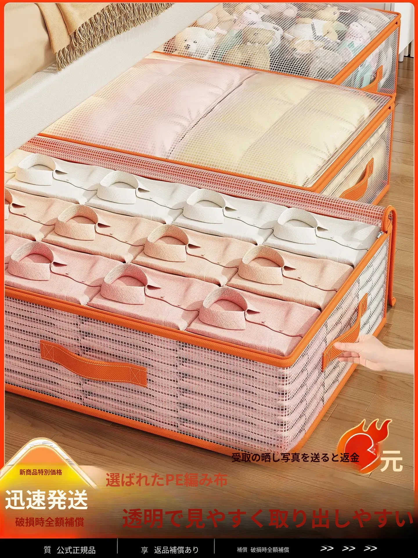 透明なベッド下収納ボックス|引き出し式フラットデザイン|衣類や布団をスッキリ整理|家庭用収納アイテムの決定版!スペースを有効活用して、スッキリしたお部屋を実現!