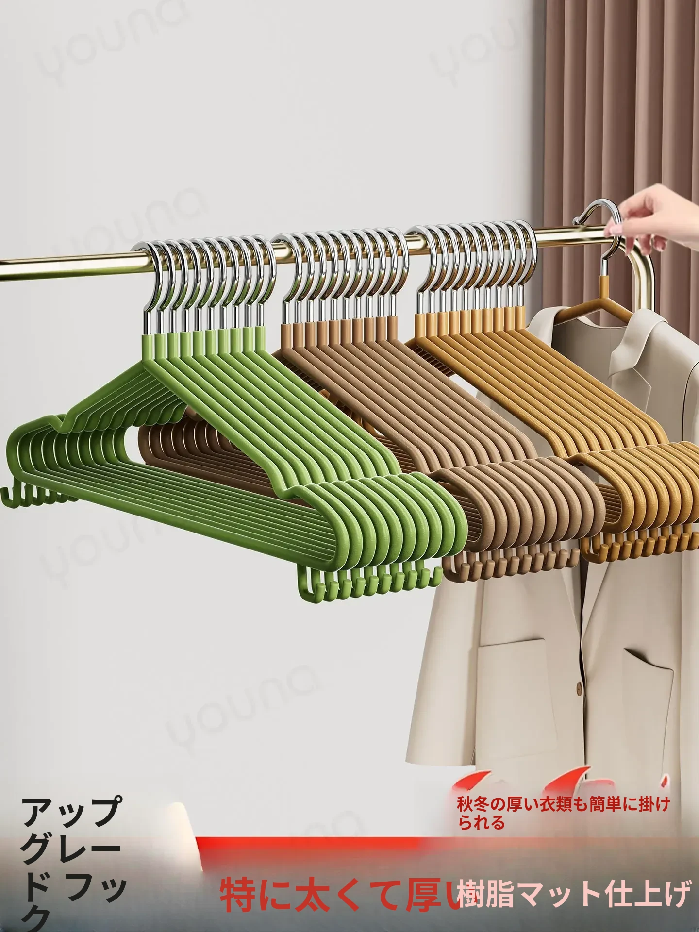 厚手でしっかりした滑り止めハンガー|家庭用・学生寮にも最適|衣類をしっかり支える無痕タイプ|便利で使いやすい衣服掛けラック