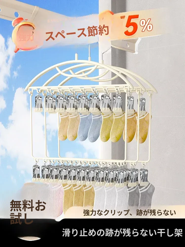 靴下干しラック|家庭用無痕・多機能靴下クリップ|パンツもOK!ステンレス製・多クリップのバルコニー用洗濯ハンガーの神アイテム!