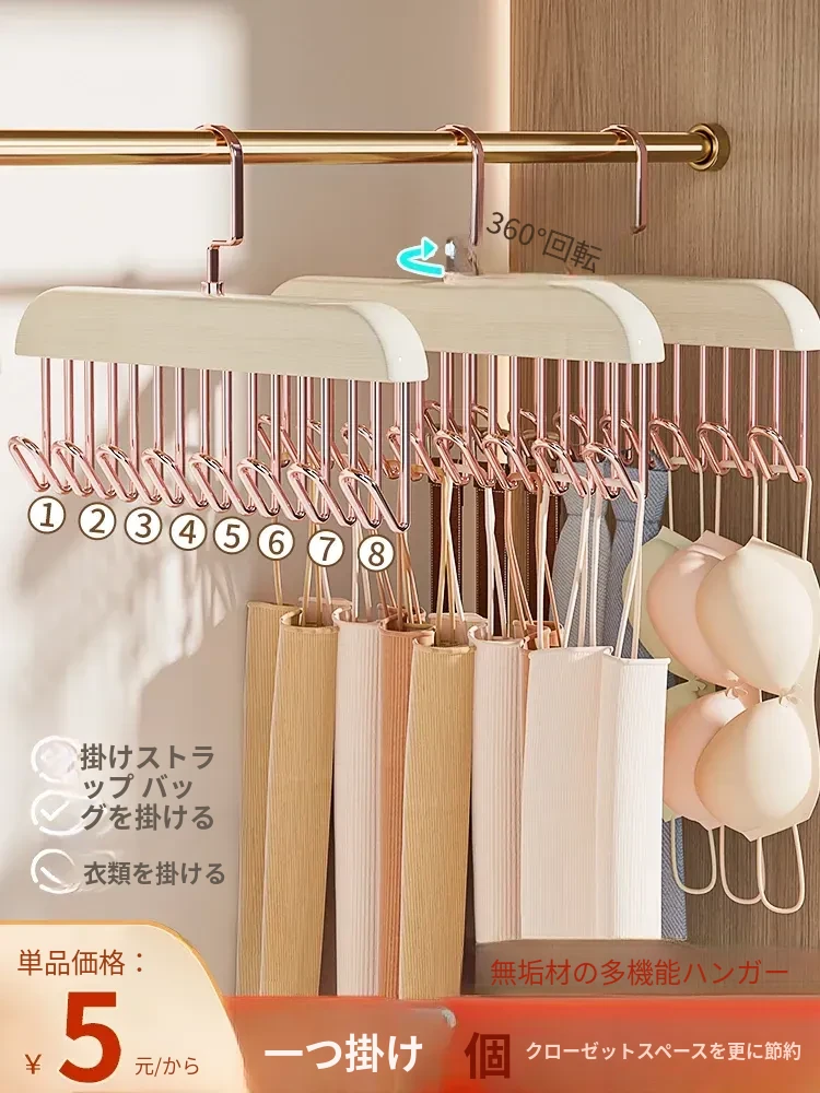 多機能木製ハンガー!下着、ストッキング、ベルト、スカーフもスッキリ整理。クローゼットを美しく保つ収納袋付き!あなたの衣類をスマートに収納する必需品!